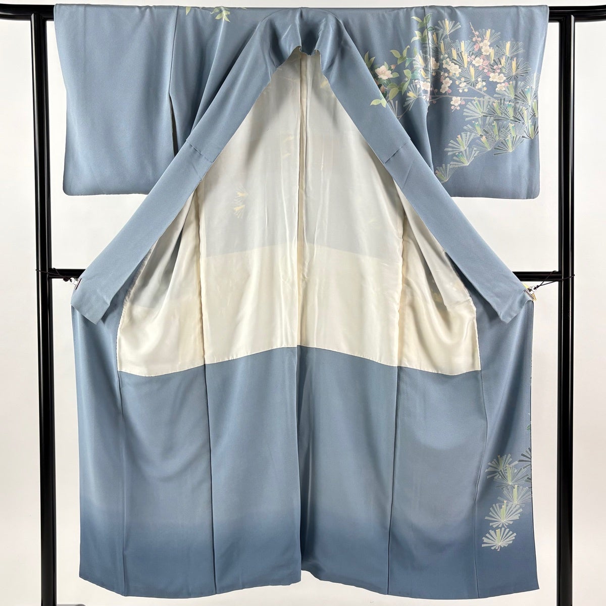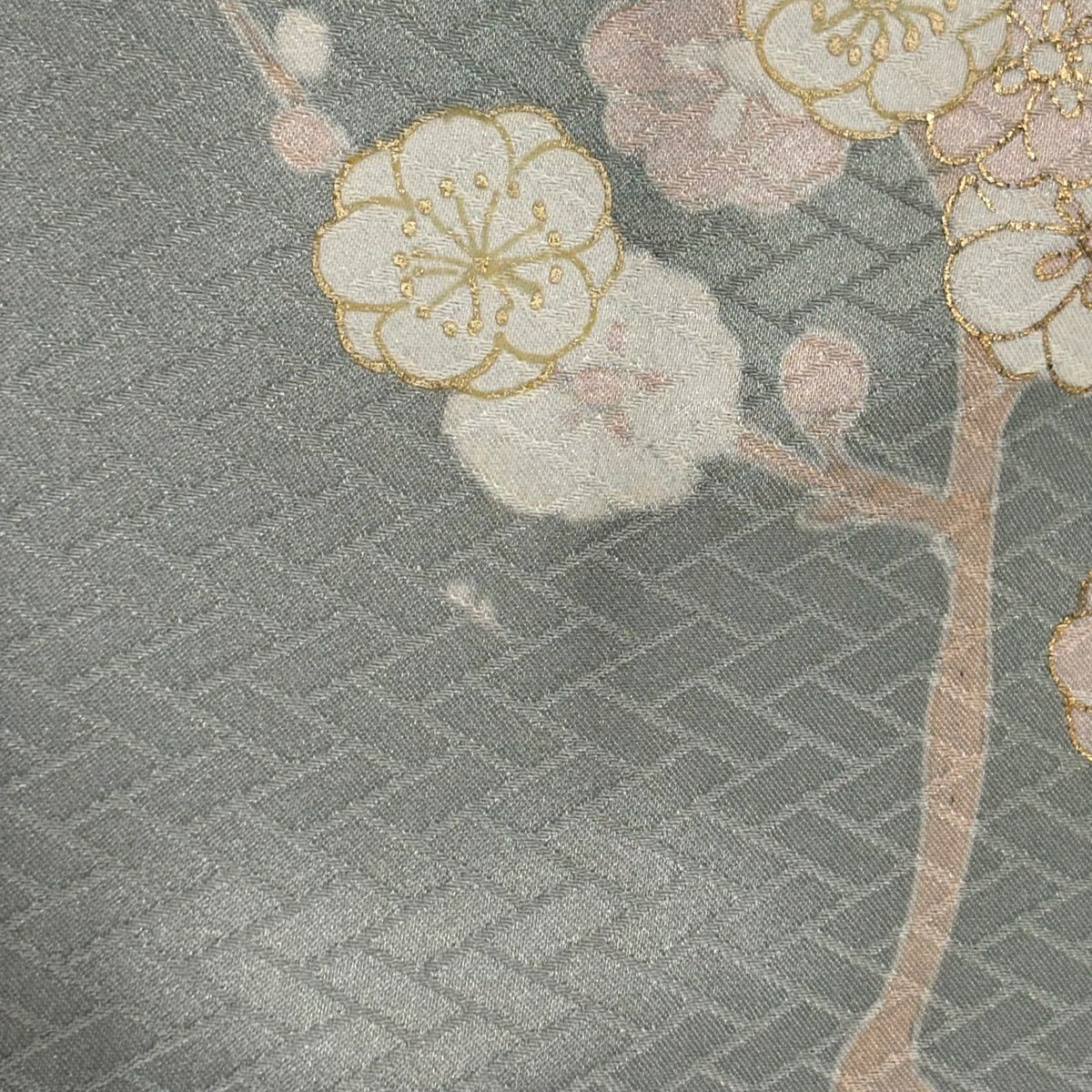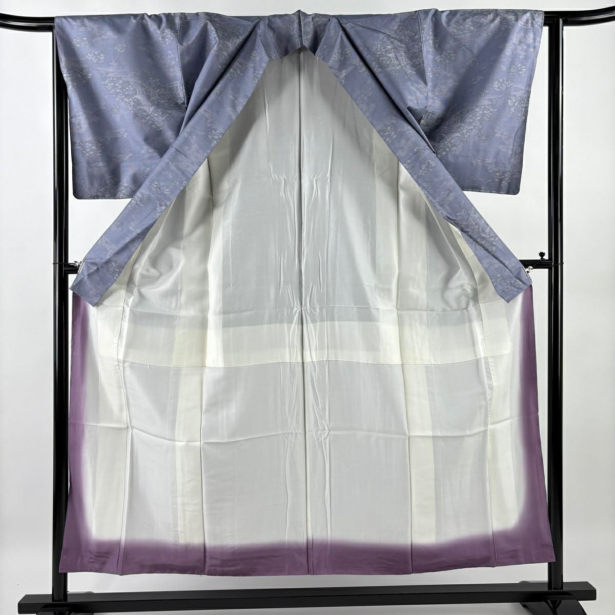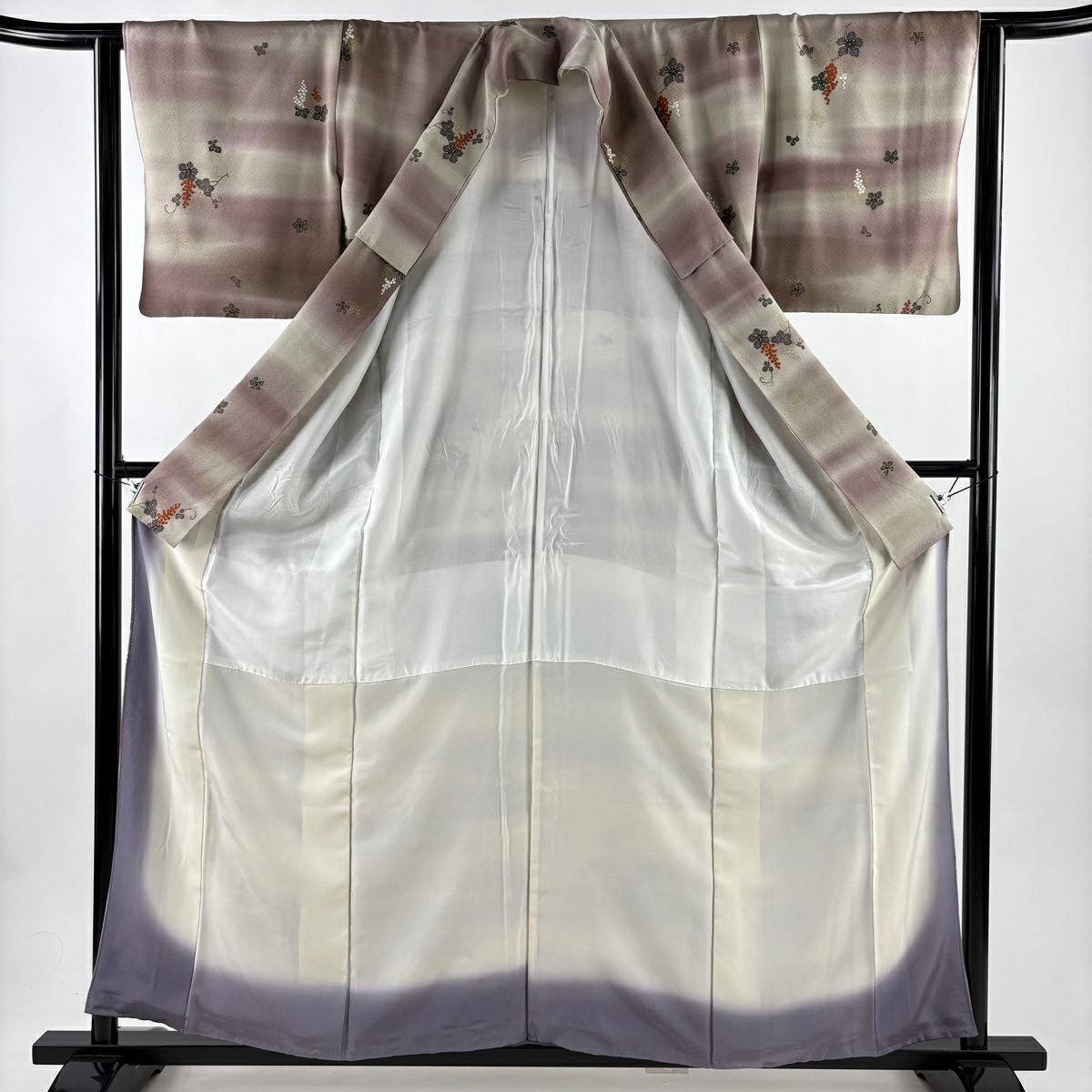 付下げ 身丈162.5cm 裄丈63.5cm S 袷 紬地 草花 梅 刺繍 ぼかし 灰色 正絹 秀品 一つ紋