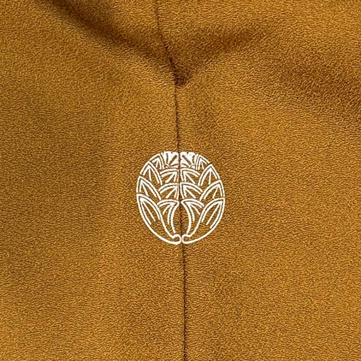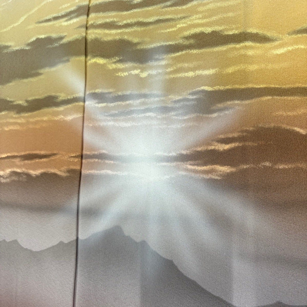 【美品】 付下げ 身丈157.5cm 裄丈64cm M 袷 矢羽 幾何学模様 ぼかし 黄土色 正絹 秀品