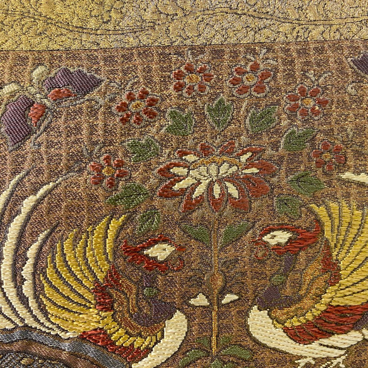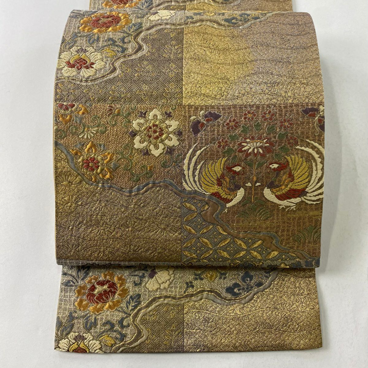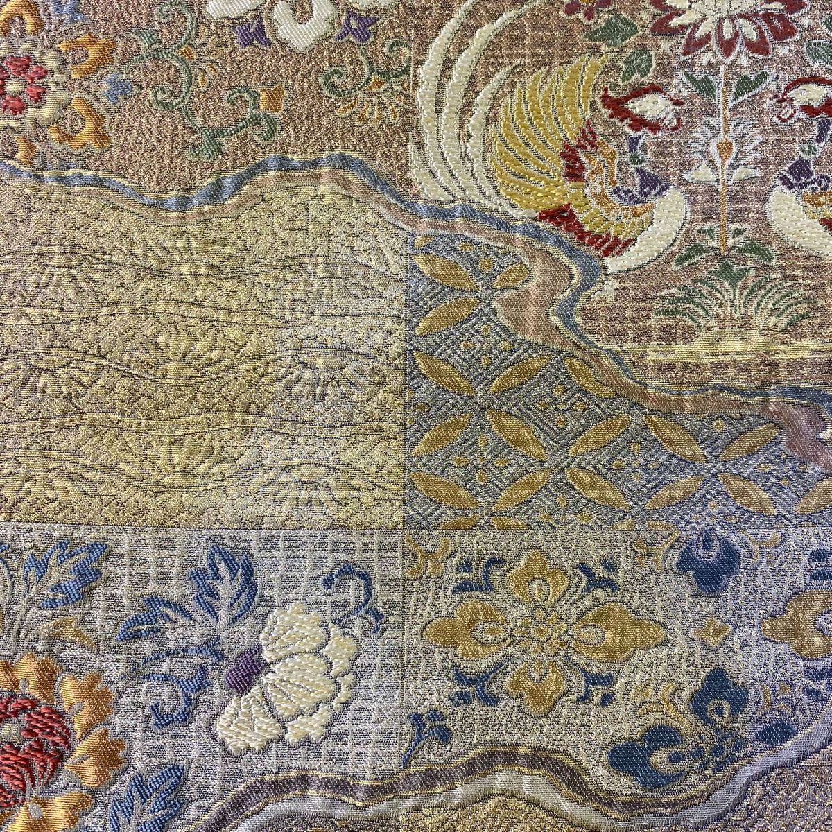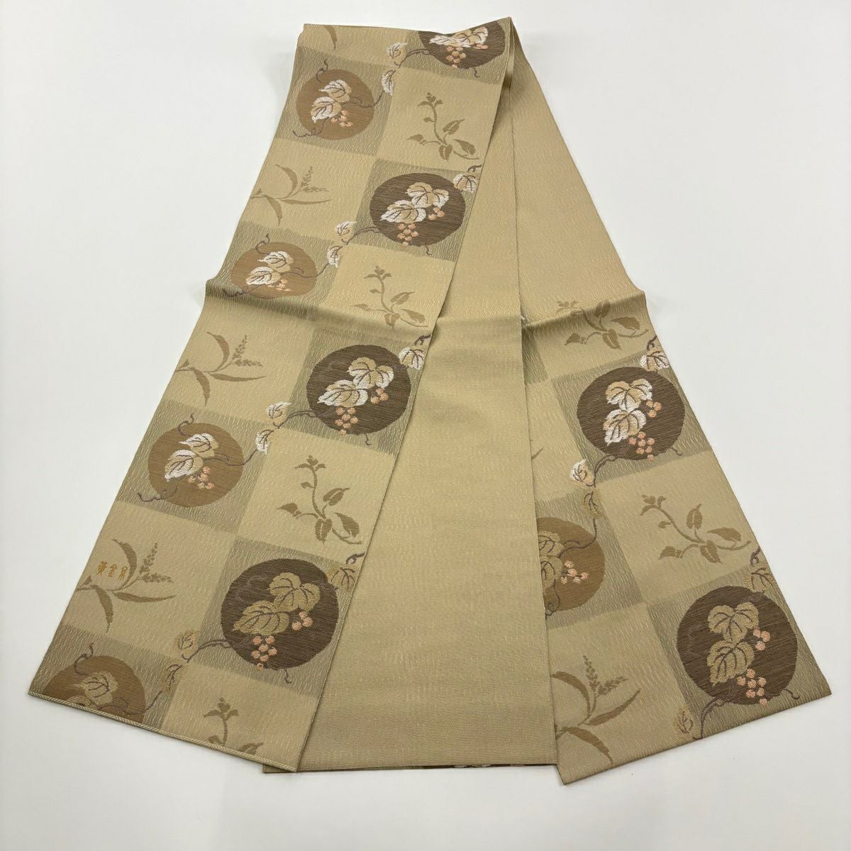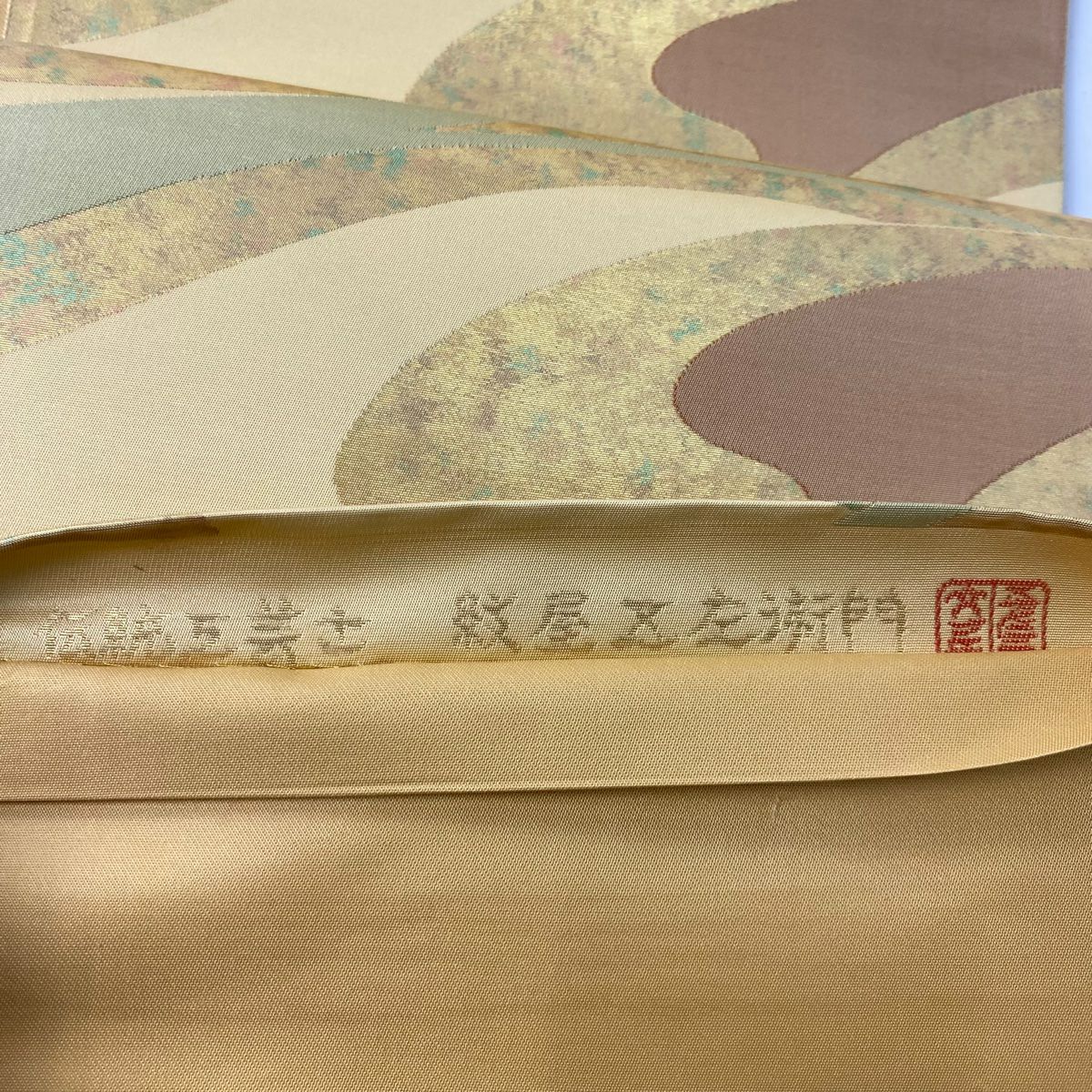 【美品】 袋帯 秀品 木屋太 落款あり 紬地 関西仕立て 短冊 果実 ピンクベージュ 六通 正絹