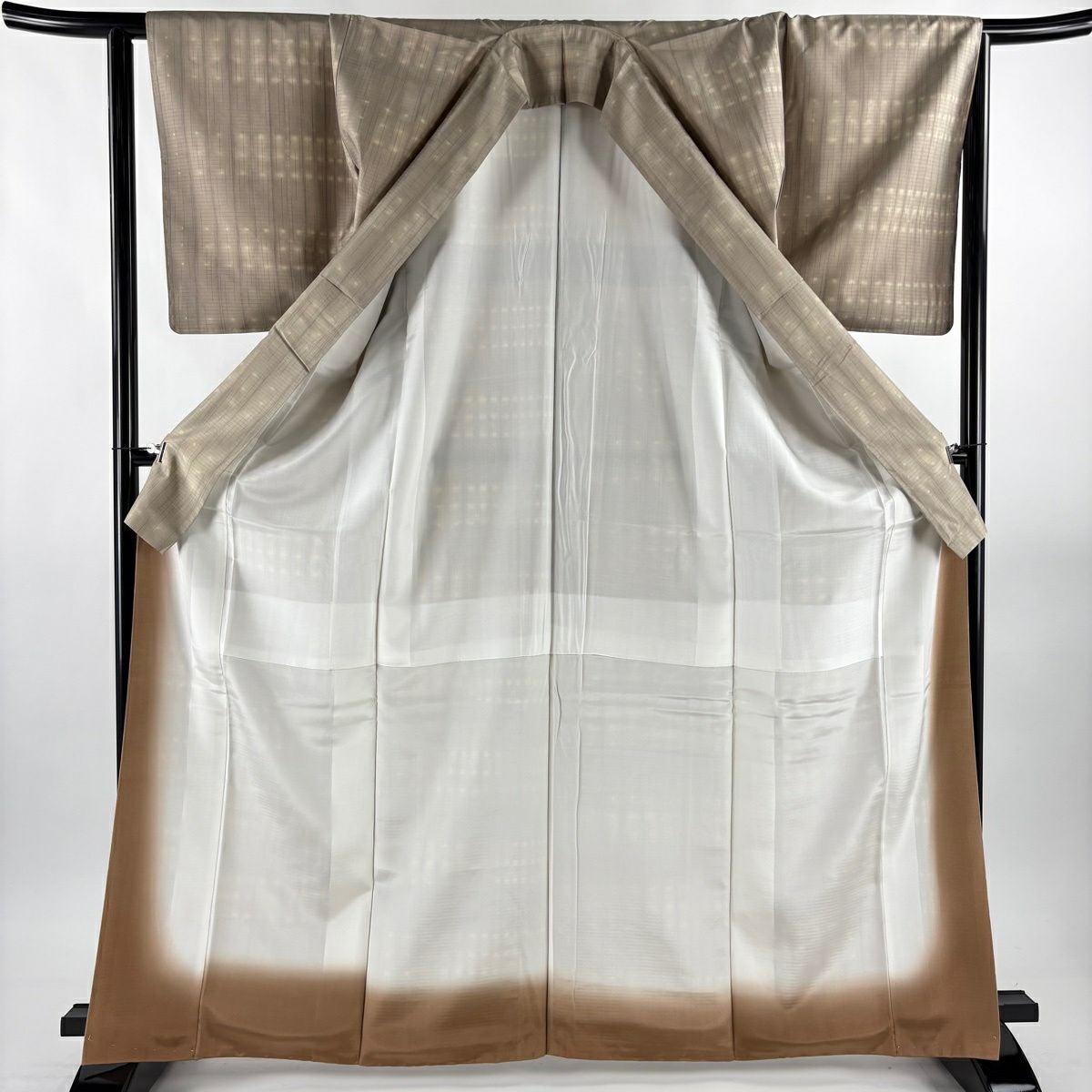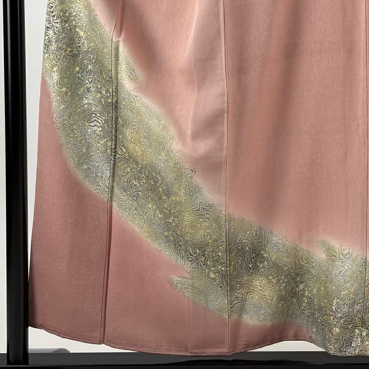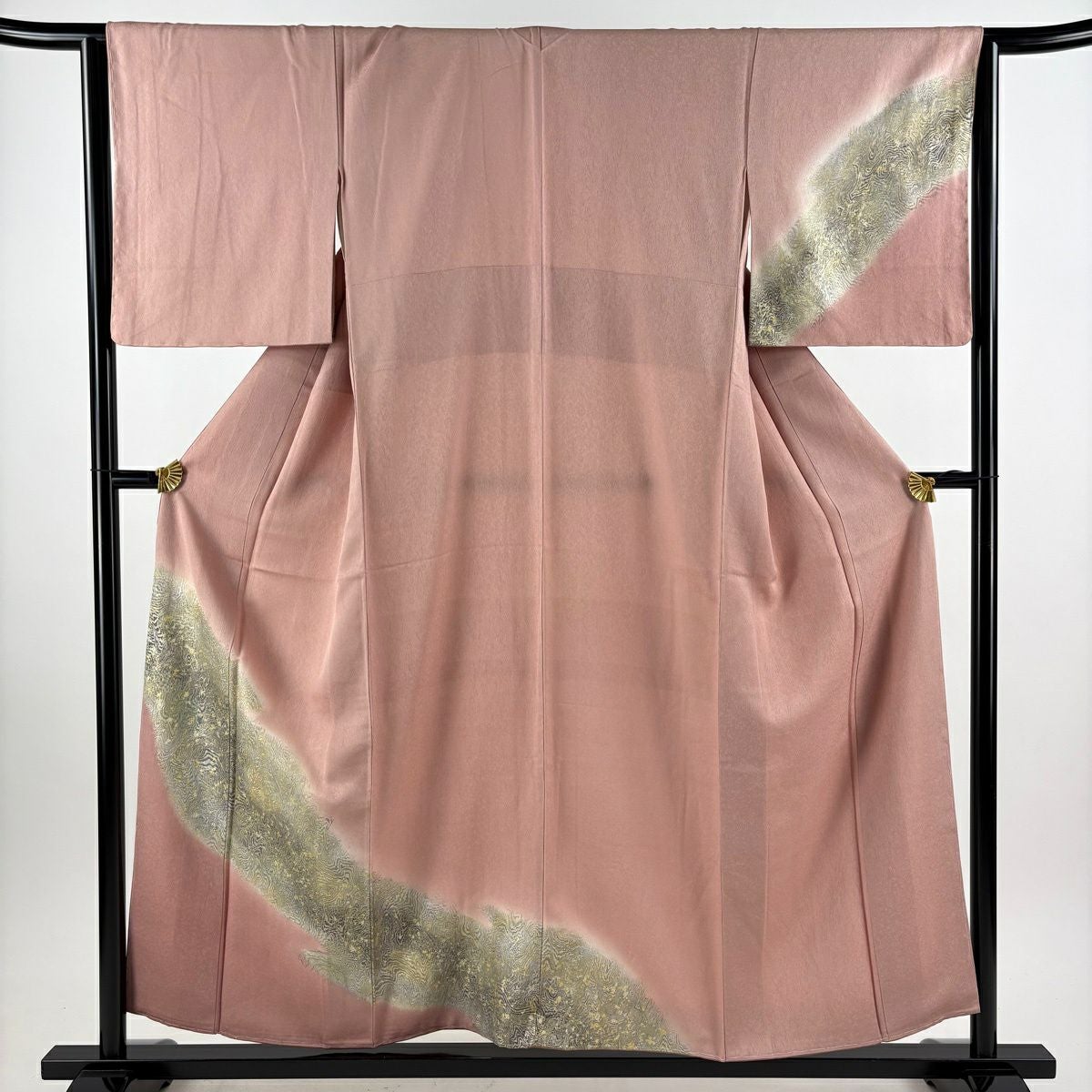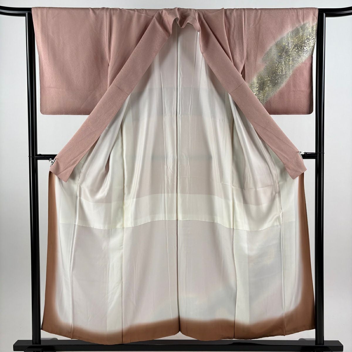 付下げ 身丈155.5cm 裄丈64cm M 袷 幾何学 金彩 ぼかし ピンクベージュ 正絹 秀品