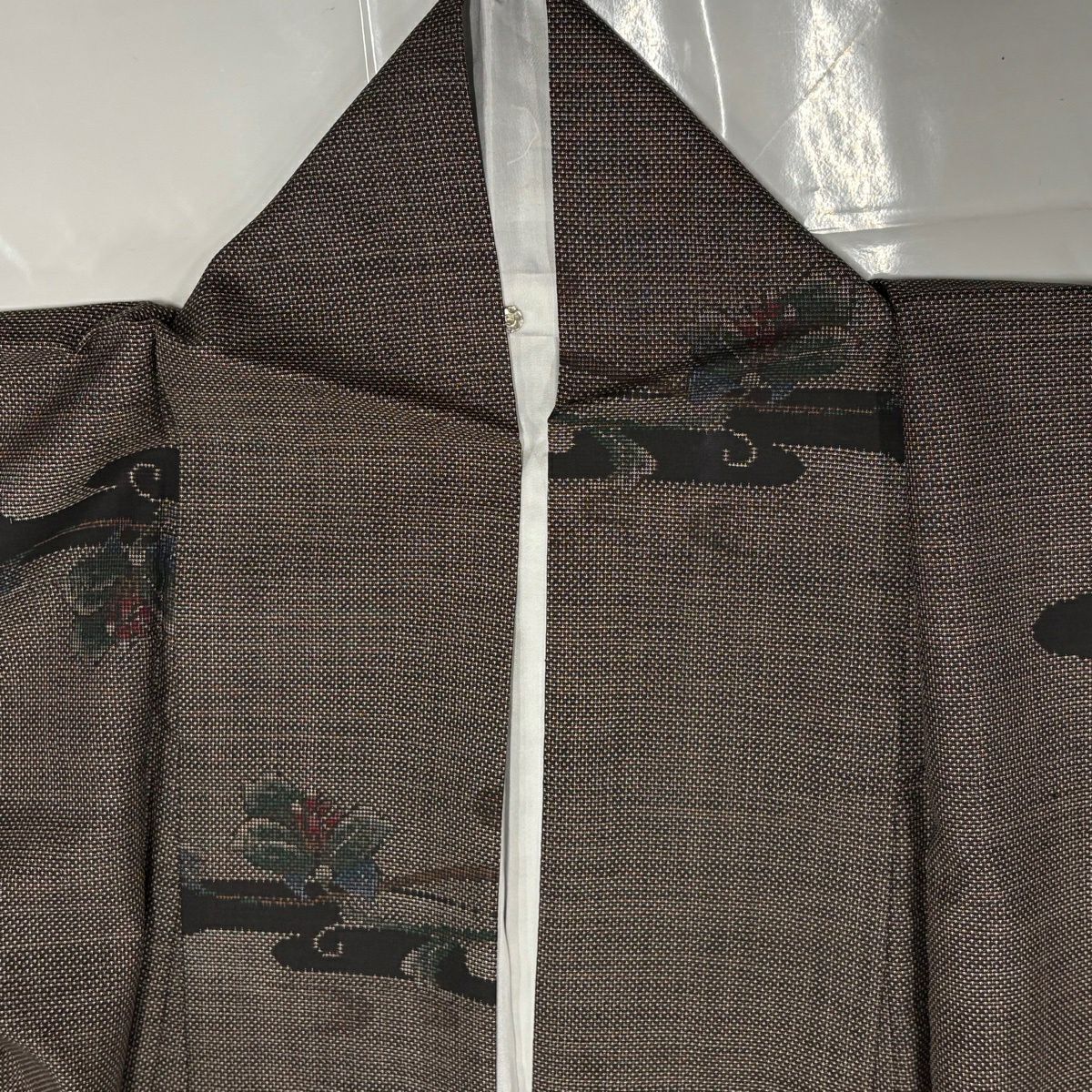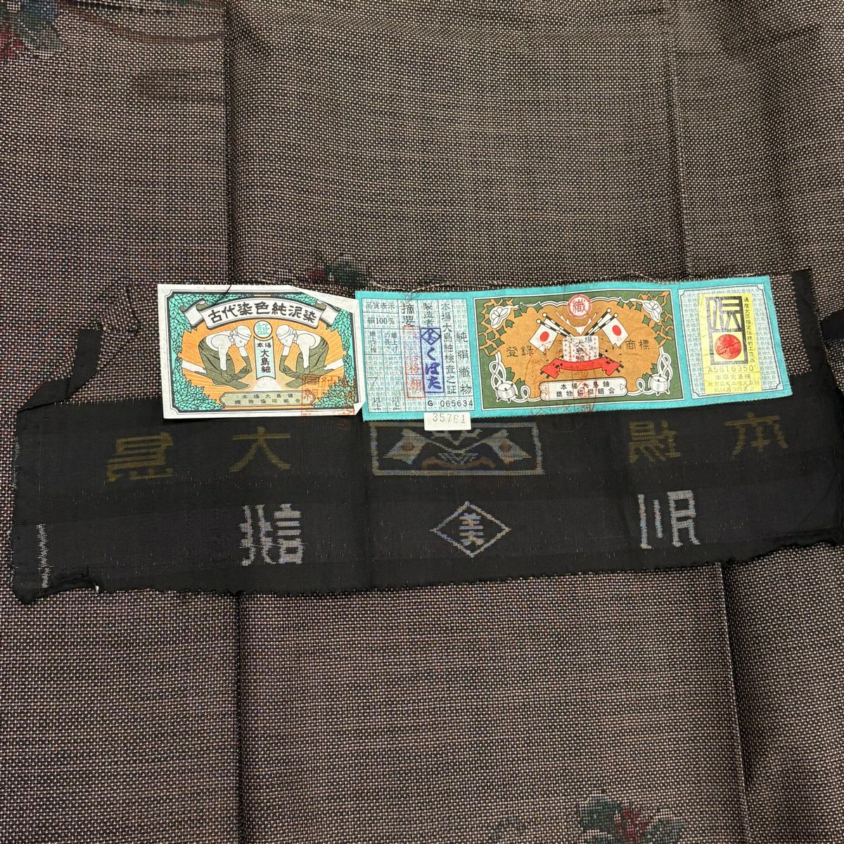 【美品】 大島紬 身丈165cm 裄丈63.5cm S 袷 純泥染 証紙あり 草花 霞 焦茶色 正絹 秀品