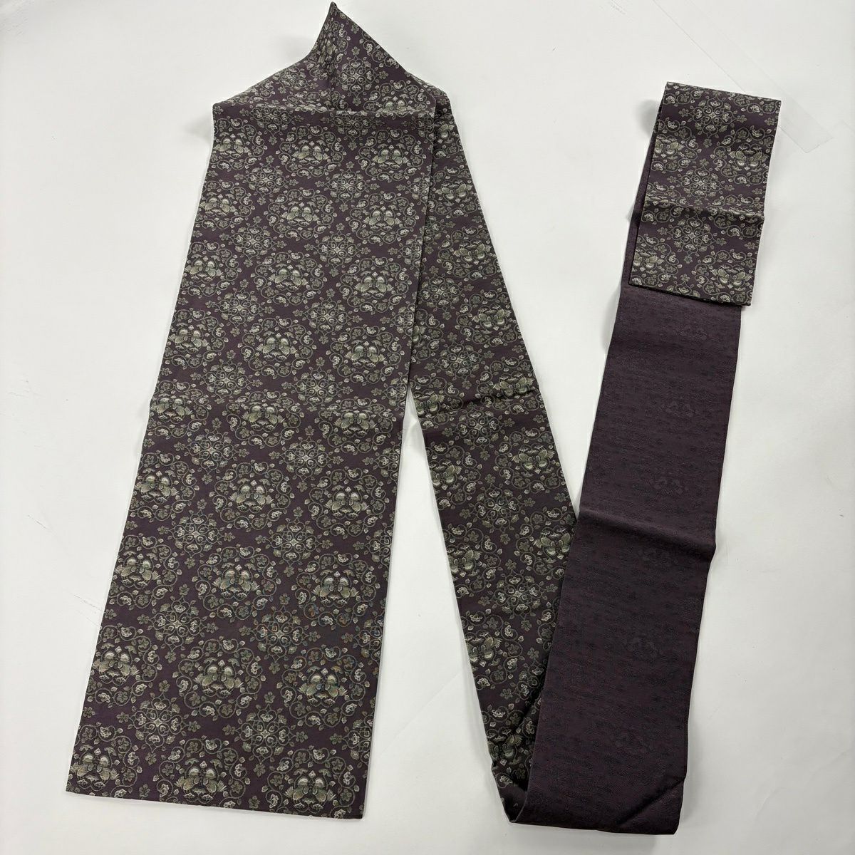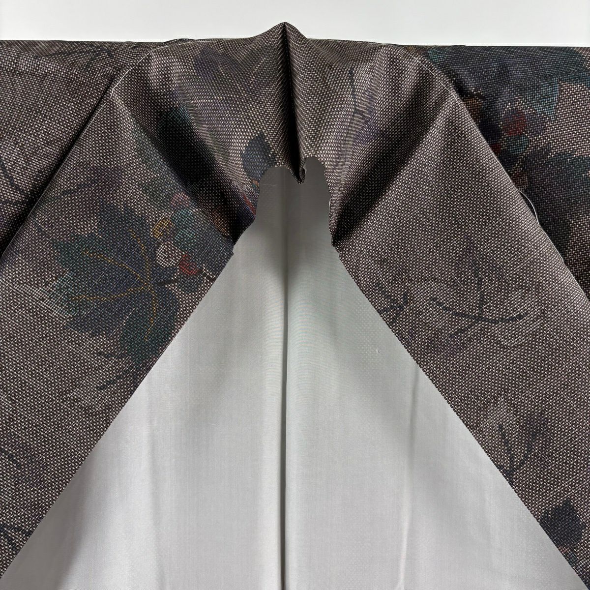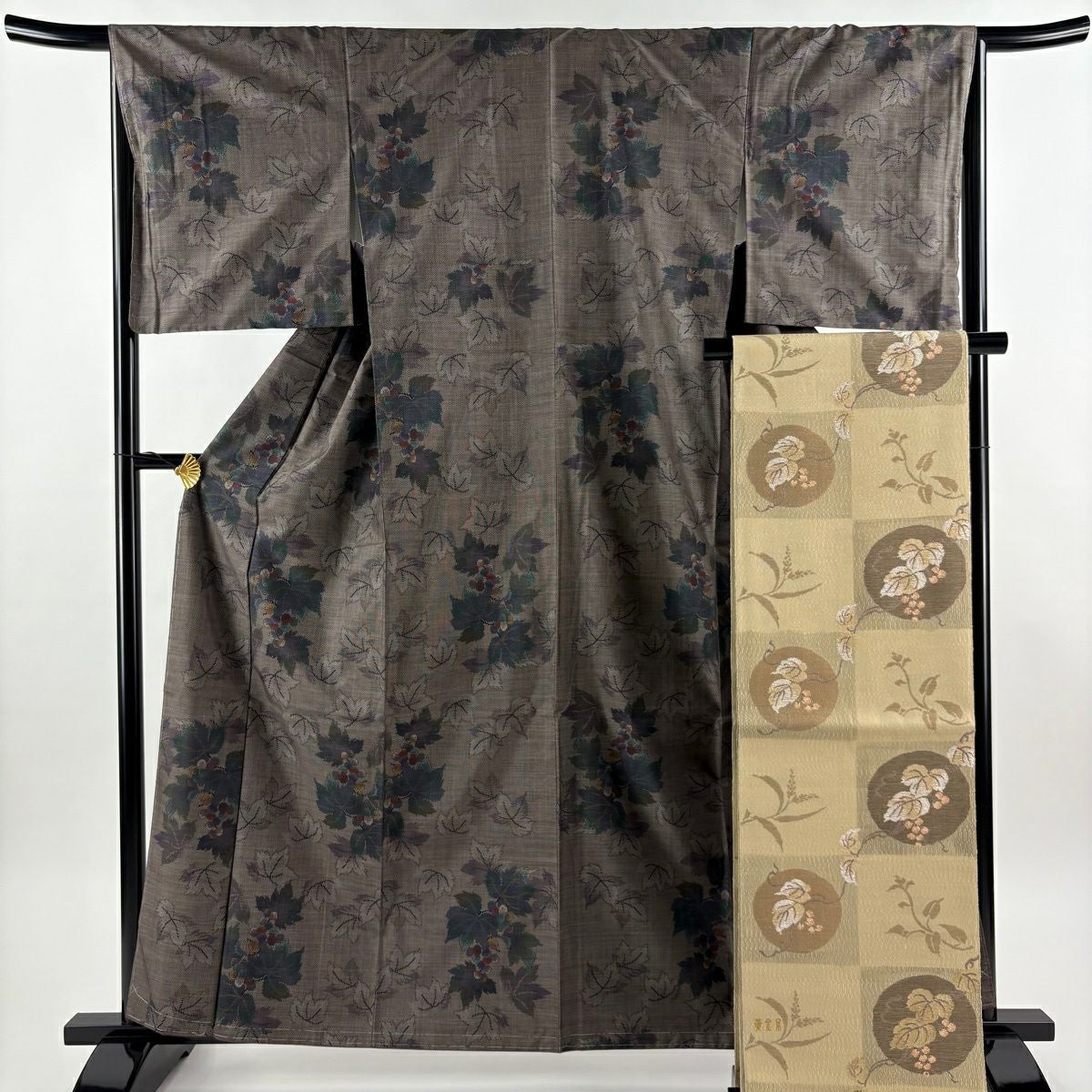 【美品】 紬 身丈160.5cm 裄丈65.5cm M 袷 袋帯セット ますいわ屋 葡萄 焦茶色 正絹 秀品