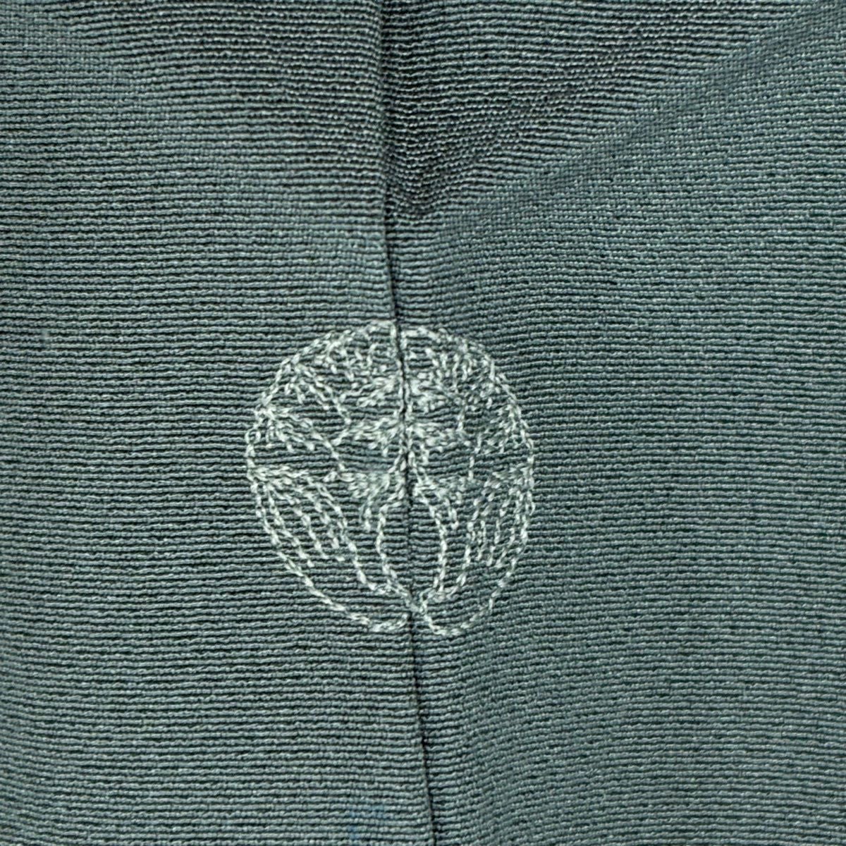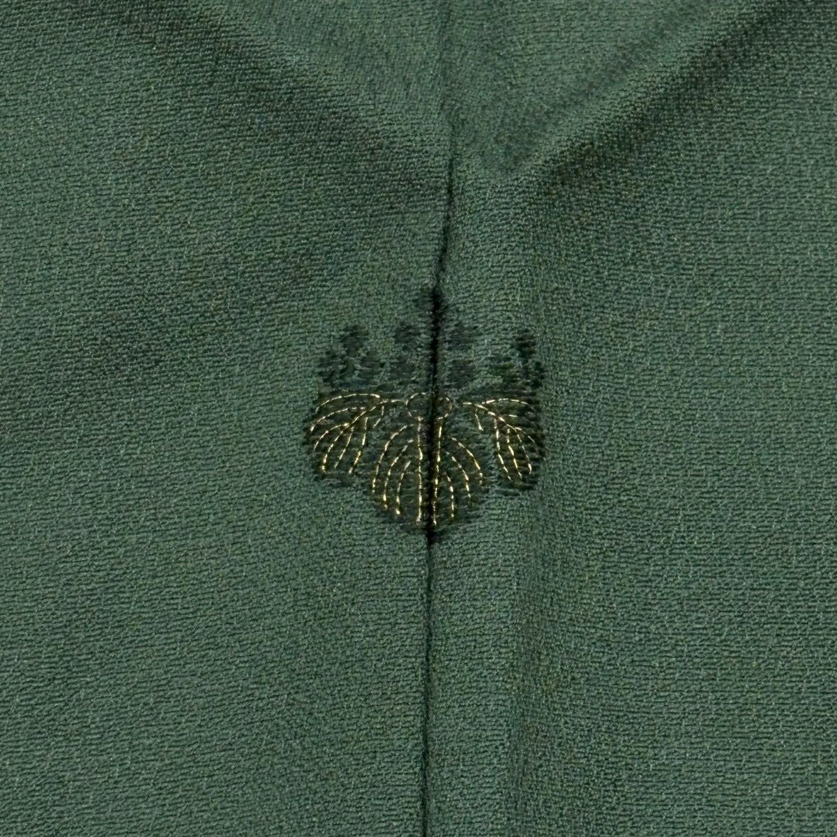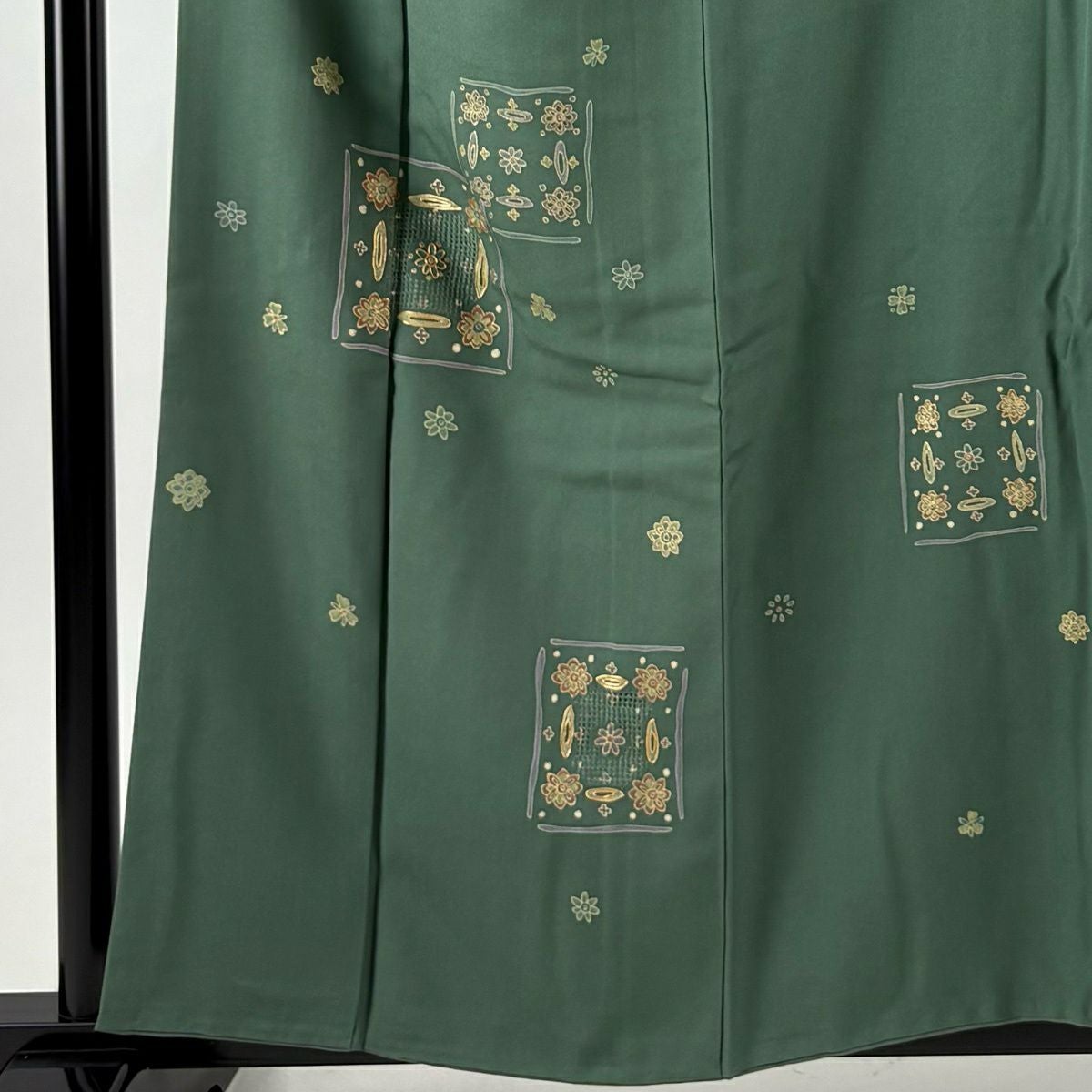 色留袖 身丈155.5cm 裄丈64cm M 袷 英 菊 宝尽くし 金糸 刺繍 灰緑 化繊 秀品 一つ紋