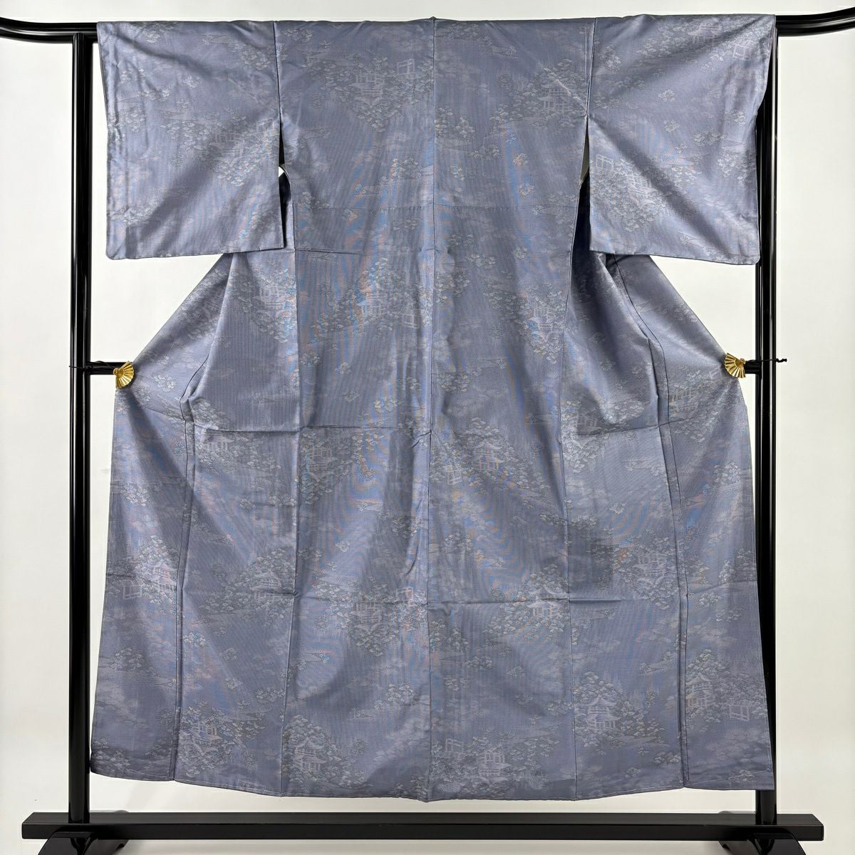 【美品】 訪問着 身丈156cm 裄丈64cm M 袷 落款あり 菊 流水 金糸 金彩 青灰色 正絹 秀品