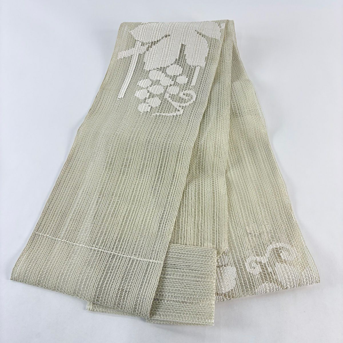 30%OFF 【美品】 名古屋帯 秀品 夏帯 松葉仕立て 八寸名古屋帯 トンネル仕立て 葡萄 灰緑 正絹 K30