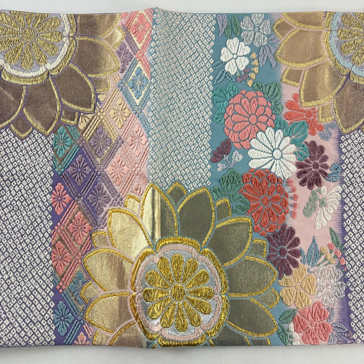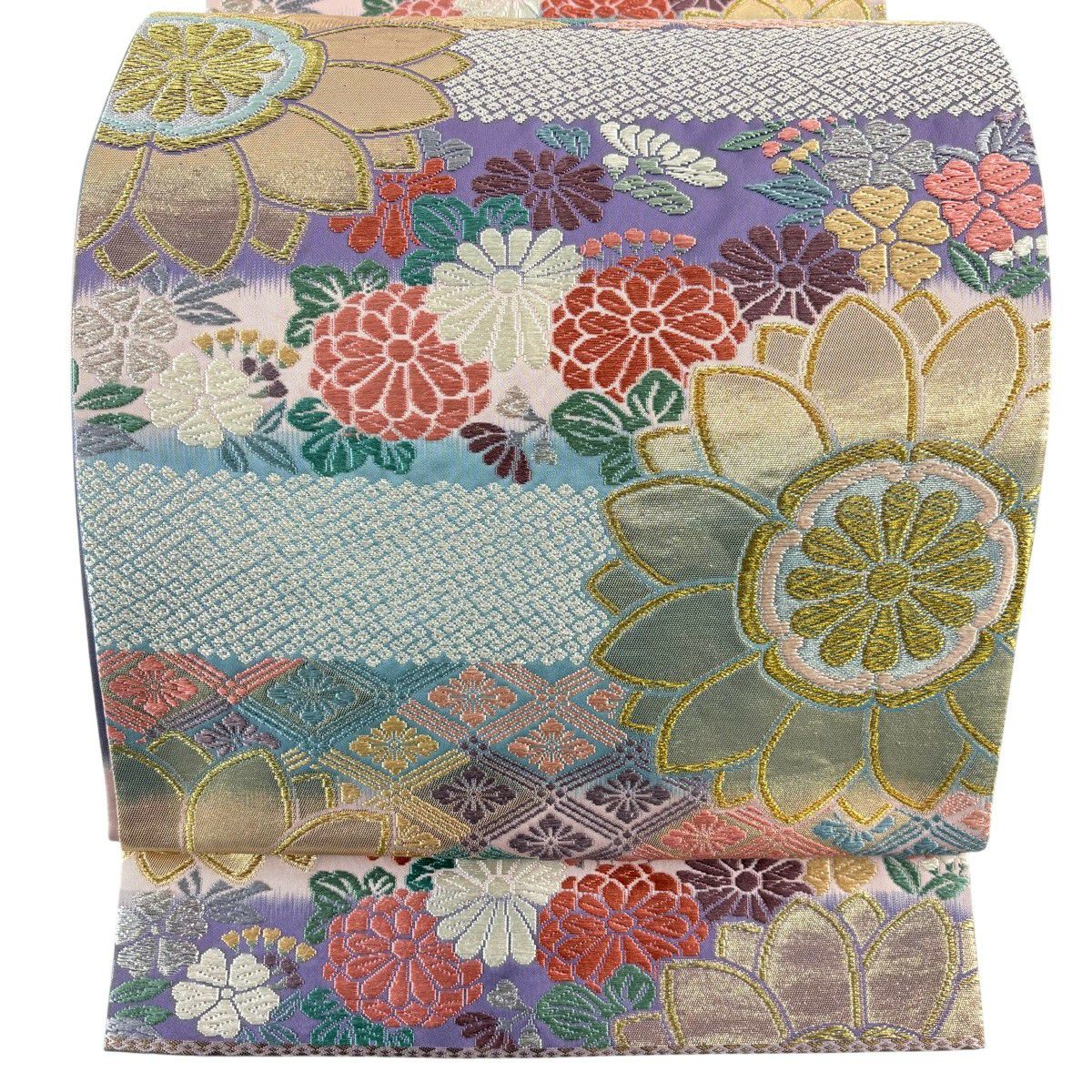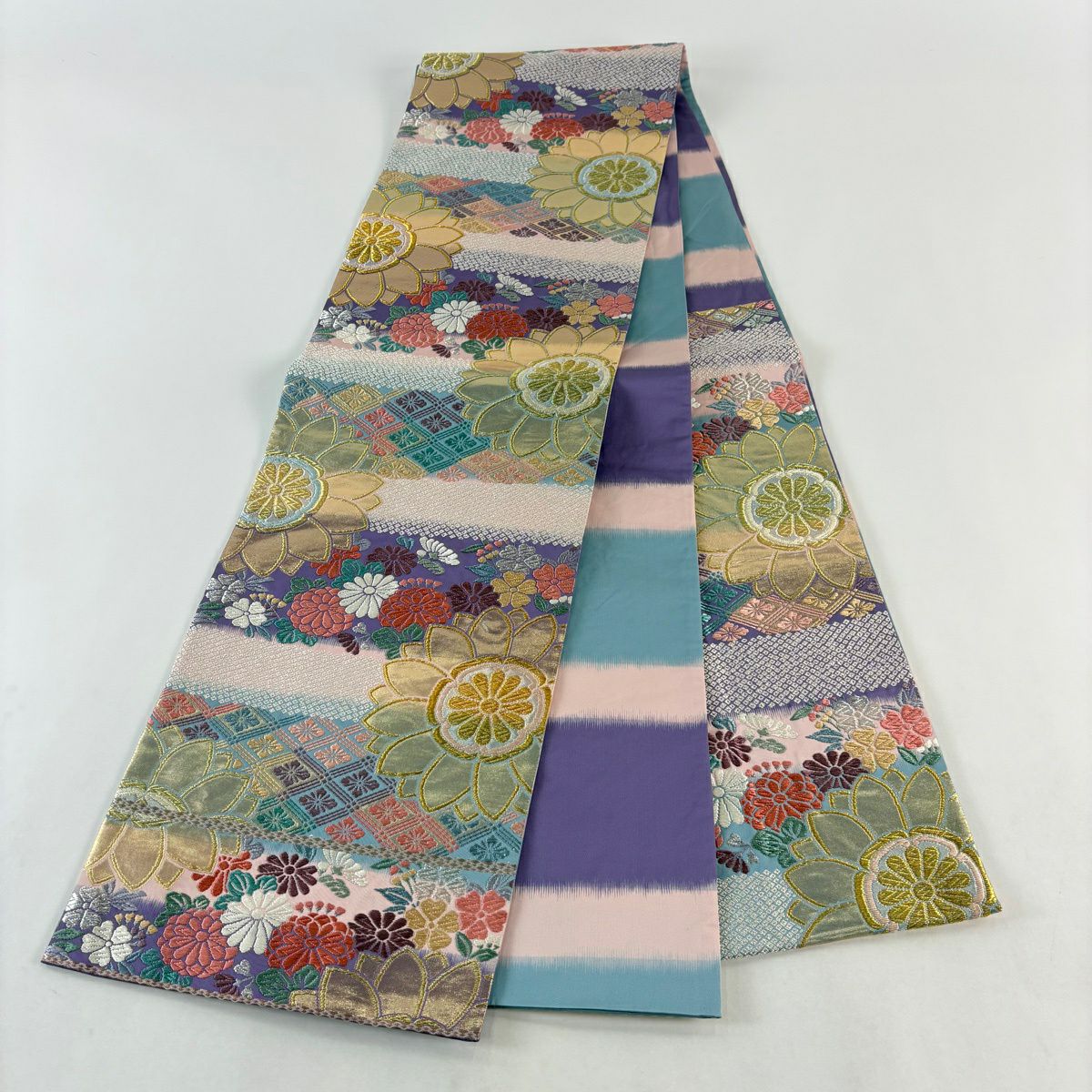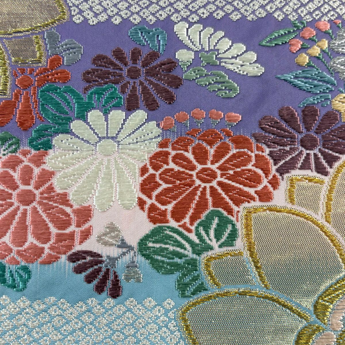 30%OFF 【美品】 袋帯 秀品 関西仕立て 振袖向き 菊 花菱 金銀糸 箔 紫 六通 正絹 K30