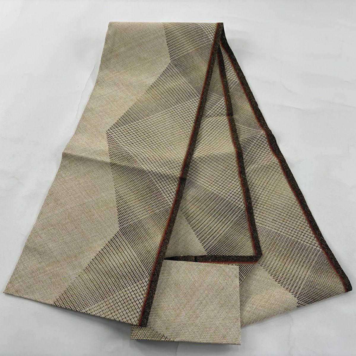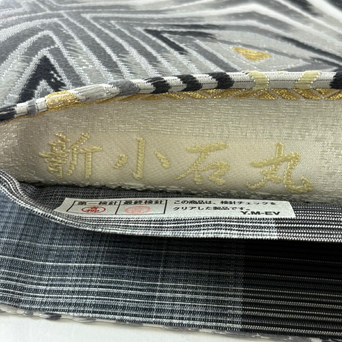 30%OFF 【美品】 袋帯 秀品 新小石丸 松煙染 幾何学模様 金糸 唐織 灰白 六通 正絹 K30
