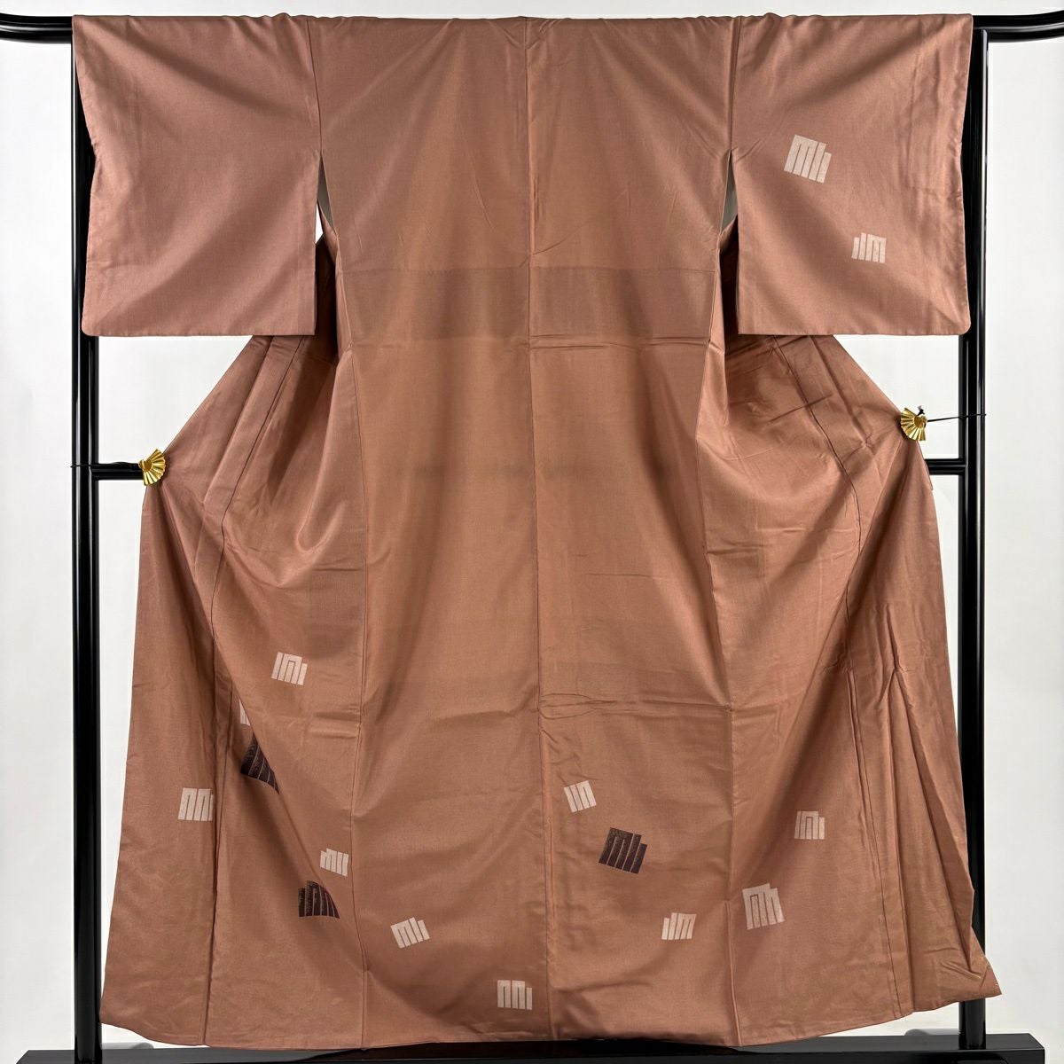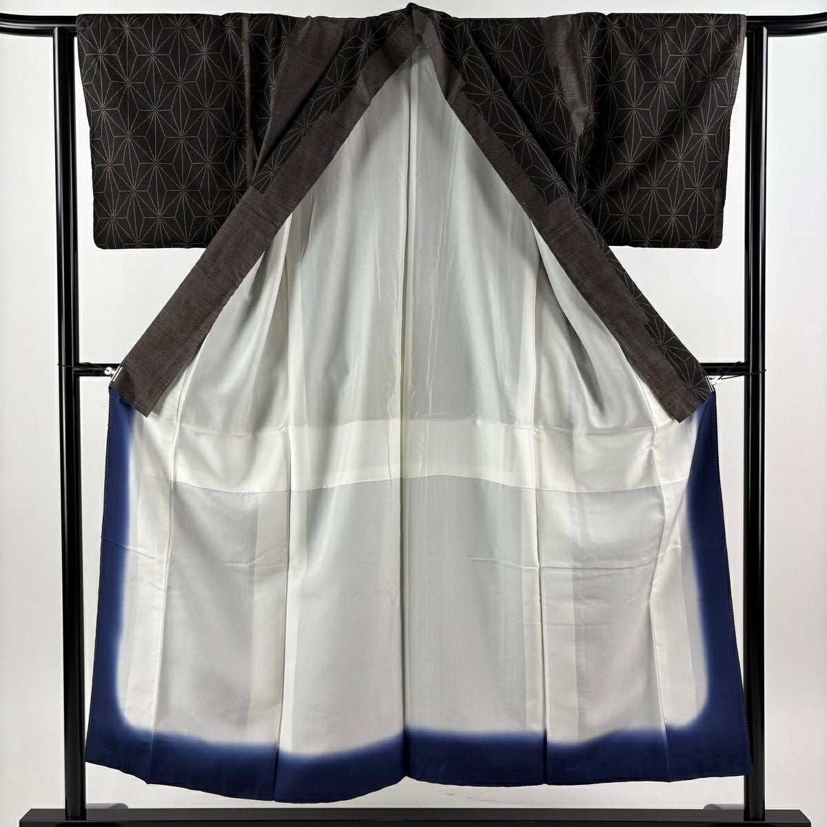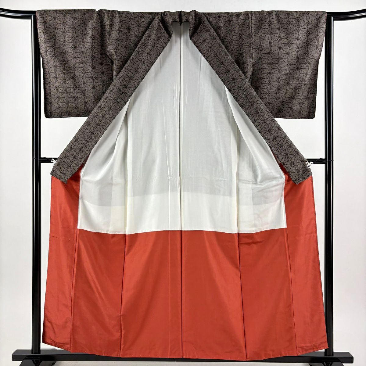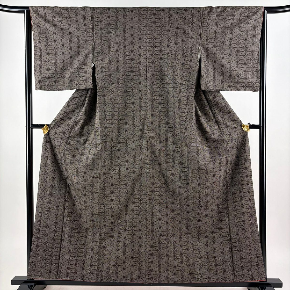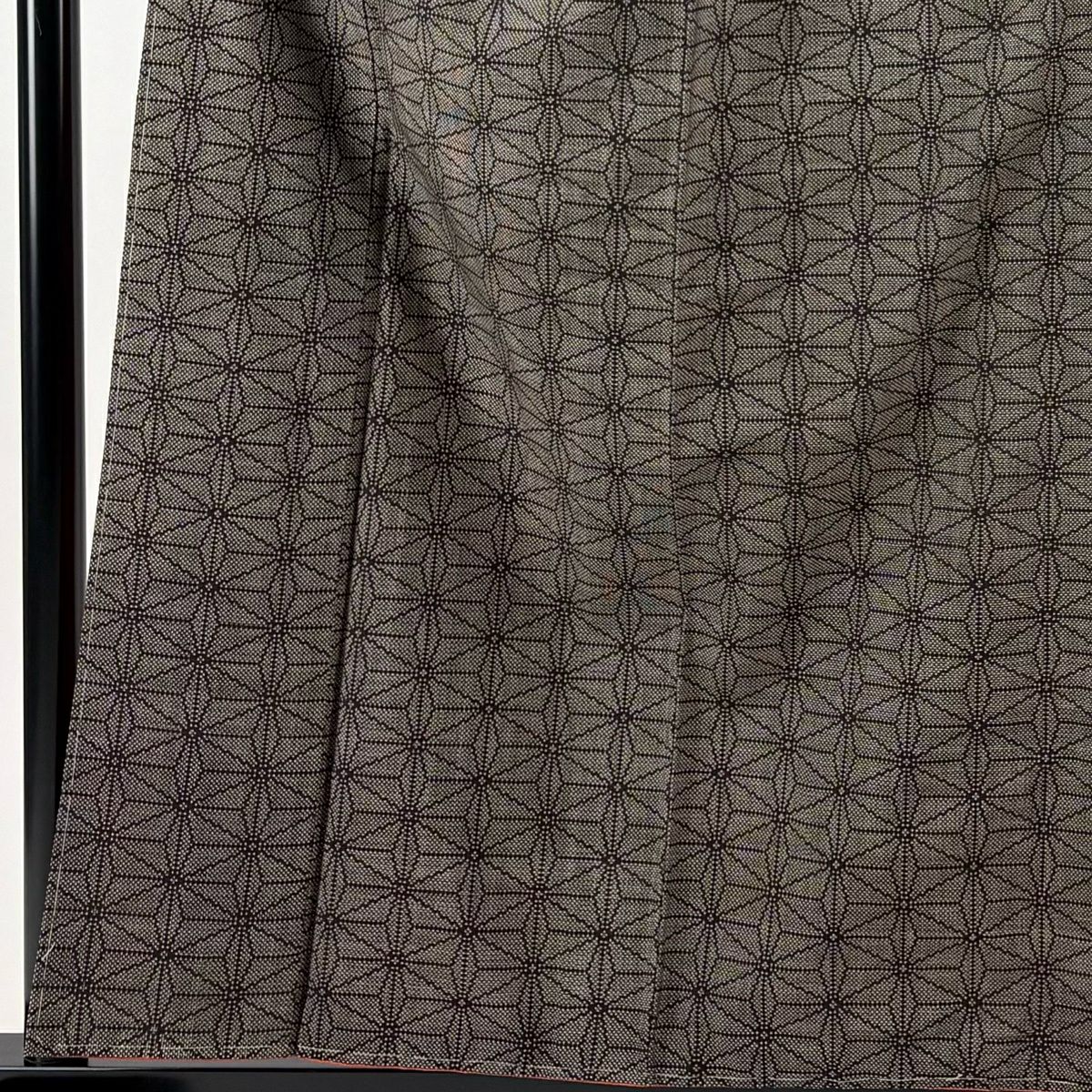 30%OFF 付下げ 身丈151cm 裄丈62.5cm S 袷 紬地 麻の葉 焦茶色 正絹 秀品 K30