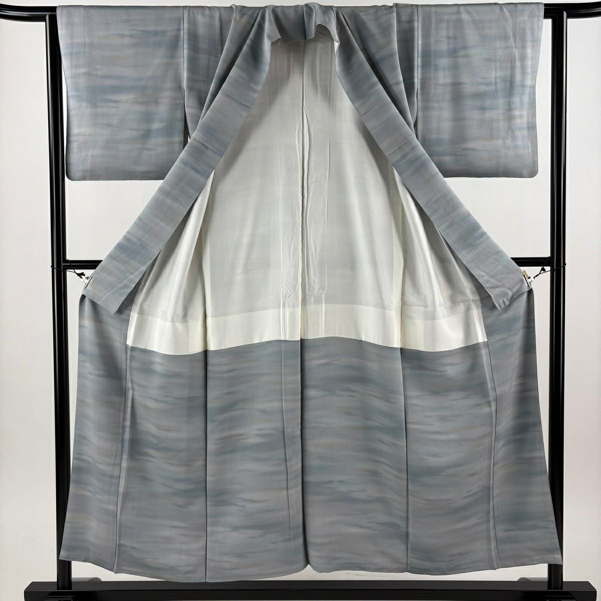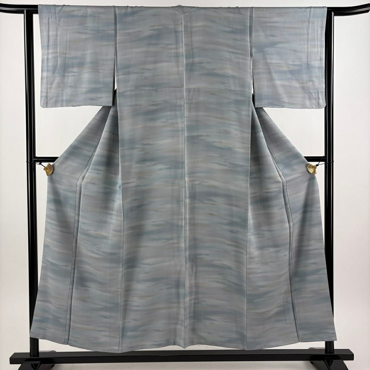 30%OFF 【美品】 小紋 身丈153cm 裄丈63cm S 袷 霞 ぼかし 青灰色 正絹 秀品 K30