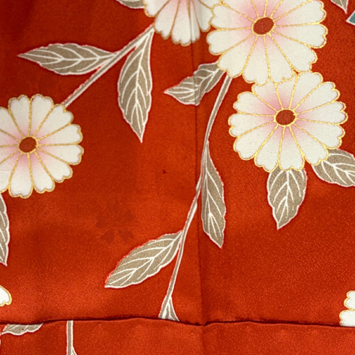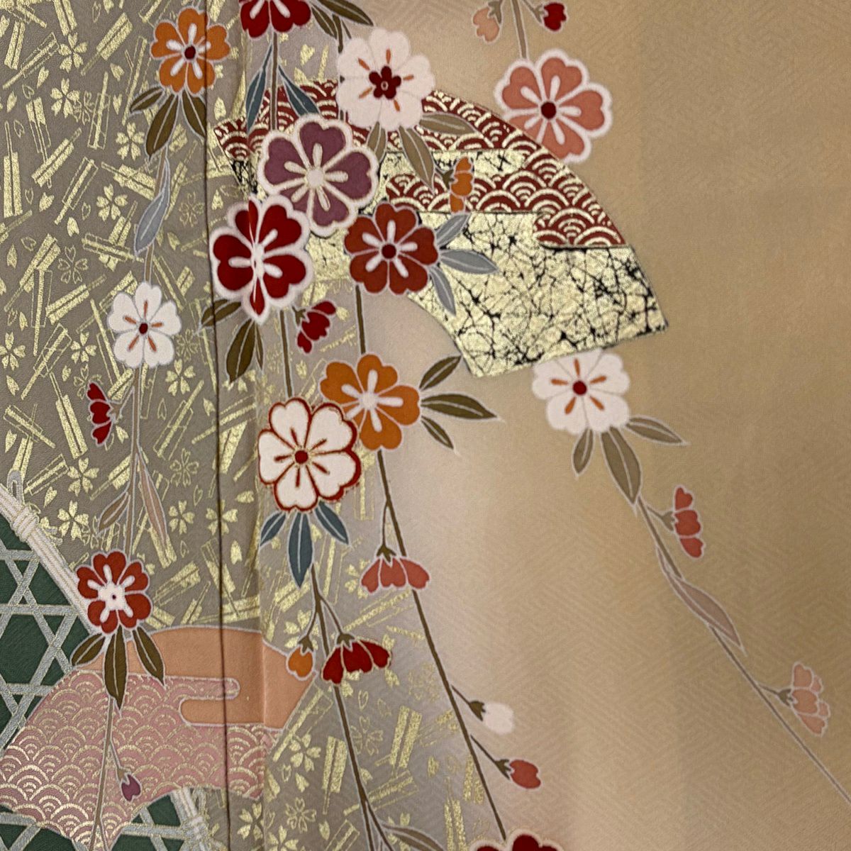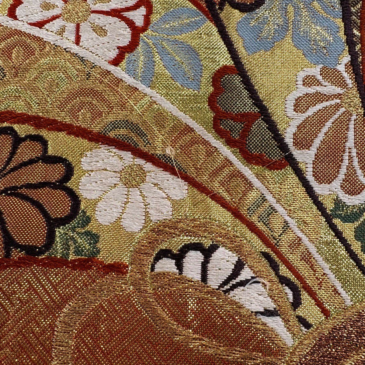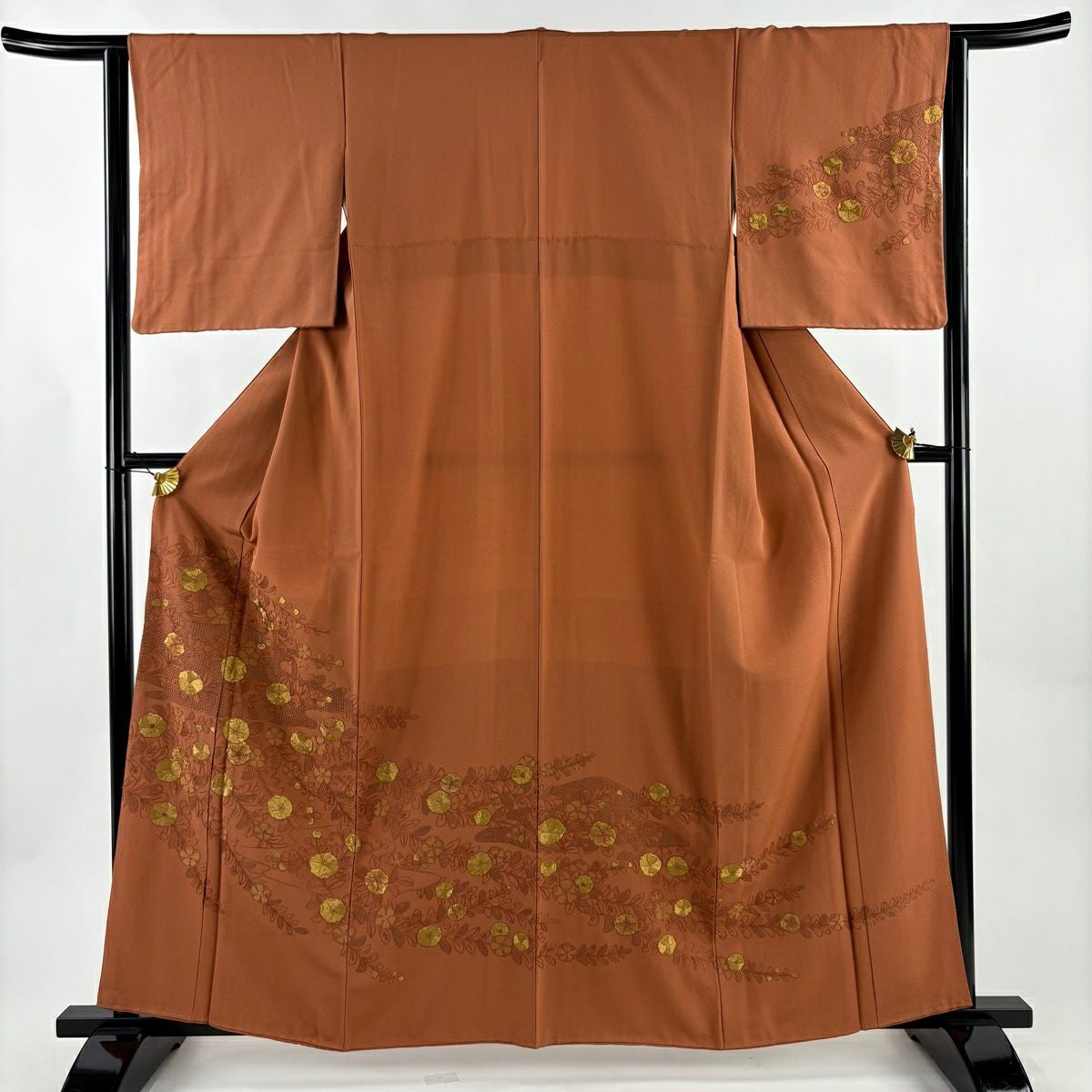 30%OFF 振袖 身丈168cm 裄丈66cm M 袷 扇面 草花 金糸 金彩 赤茶 正絹 秀品 K30