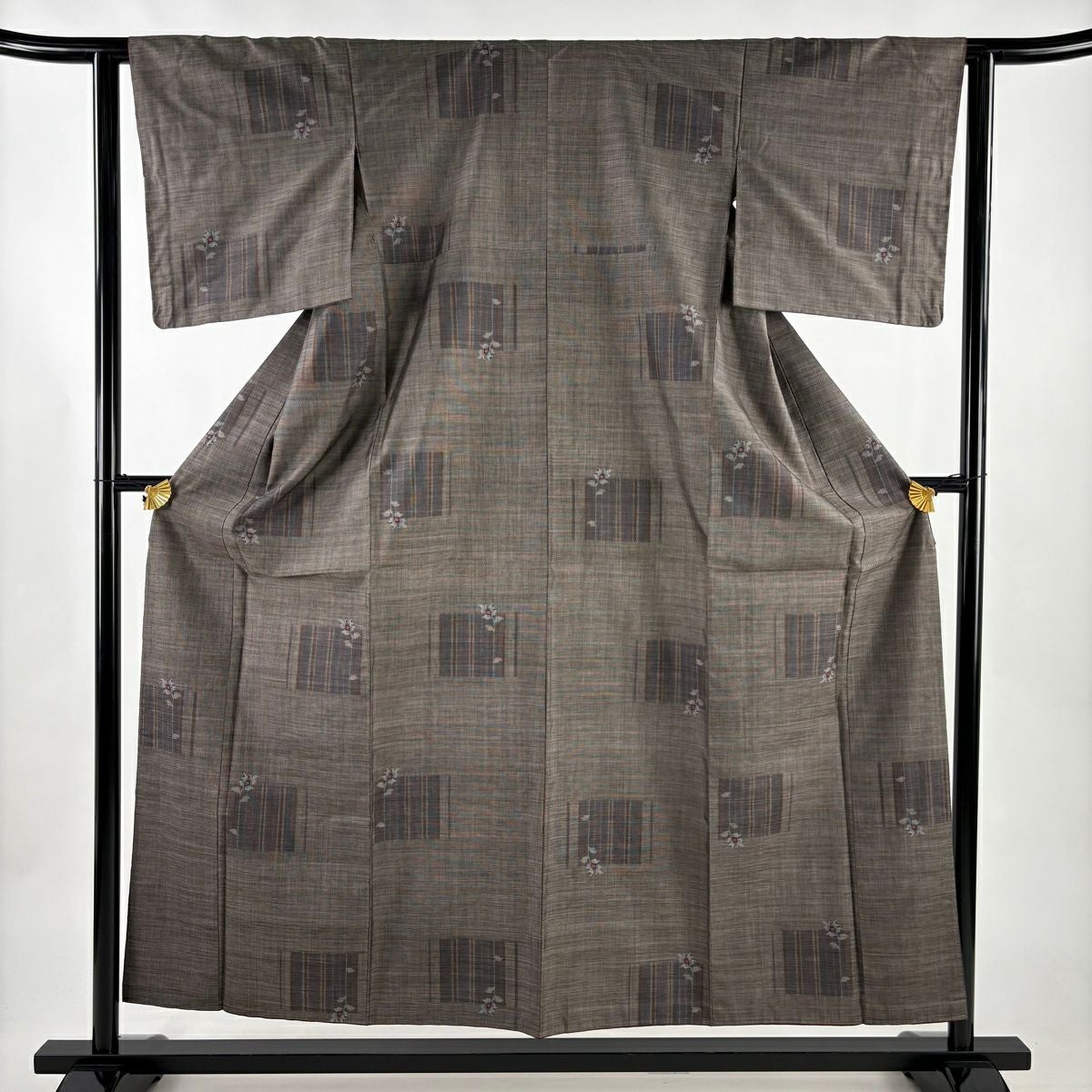 30%OFF 【美品】 紬 身丈155.5cm 裄丈61cm S 袷 草花 縞 茶紫 正絹 秀品 K30