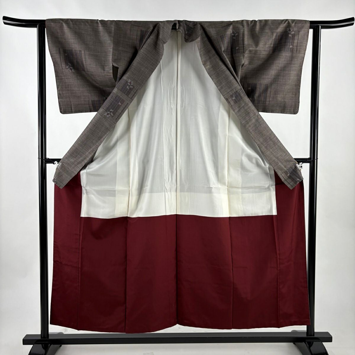 30%OFF 【美品】 小紋 身丈157.5cm 裄丈63cm S 袷 草花 薄小豆 正絹 秀品 K30
