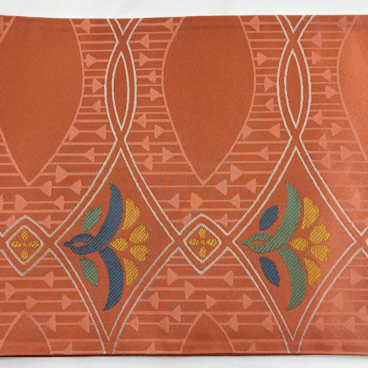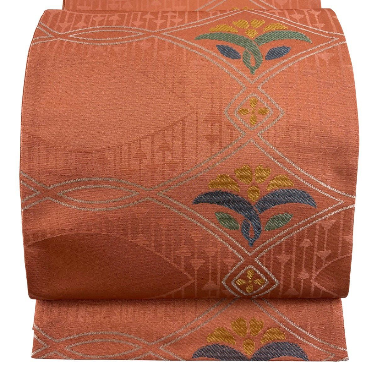 30%OFF 【美品】 袋名古屋帯 秀品 川島織物 落款あり 草花 菱 サーモンピンク 化繊 K30