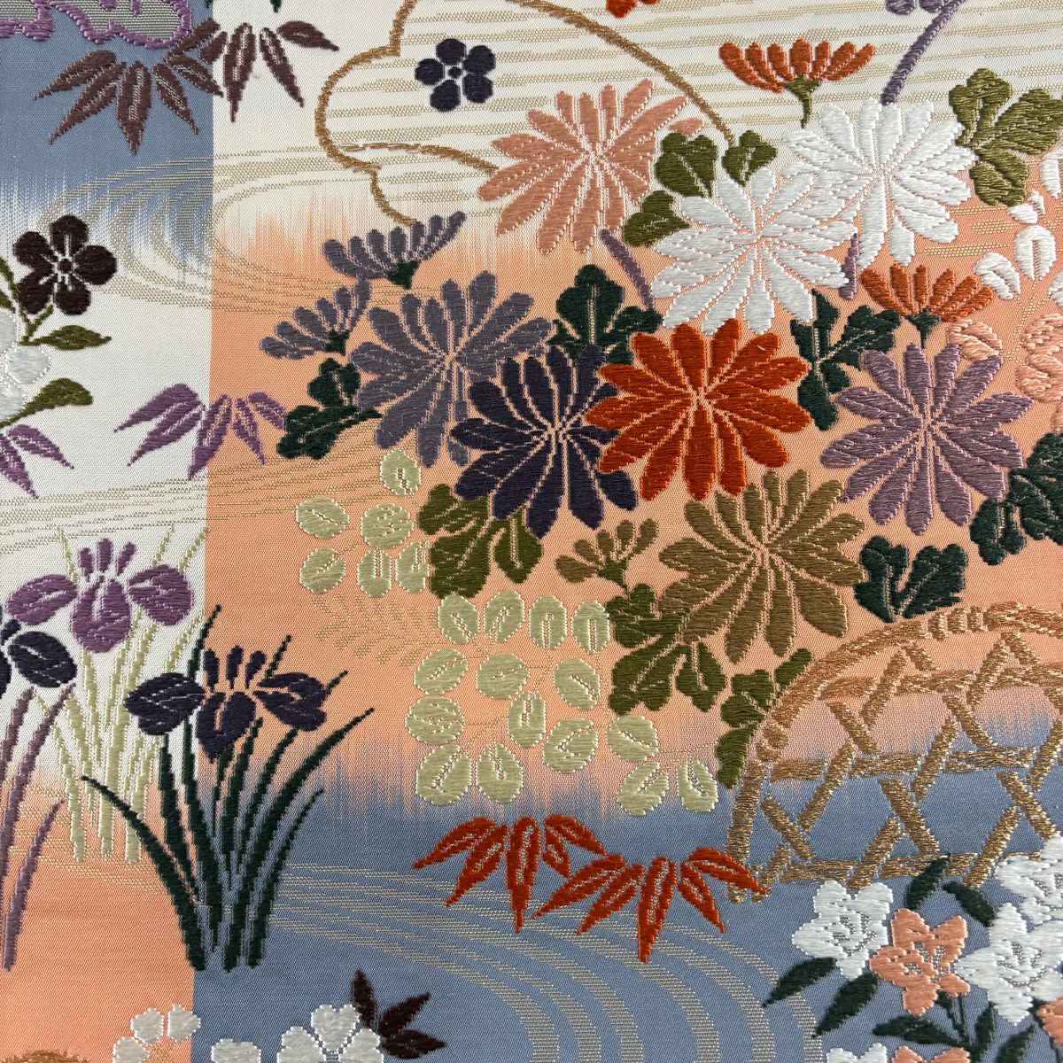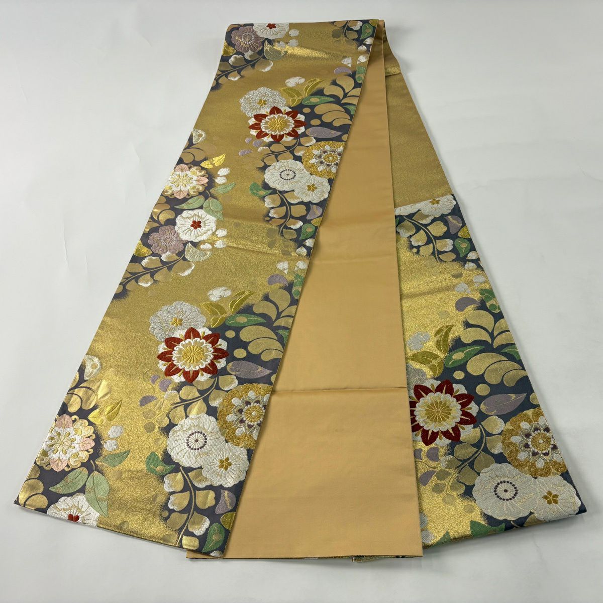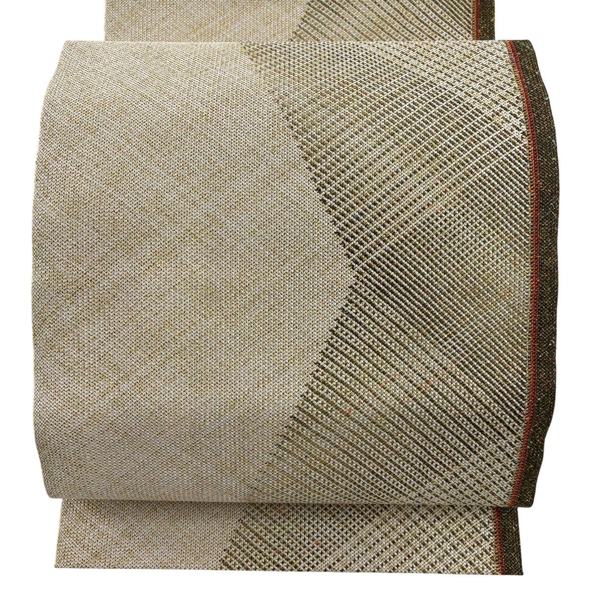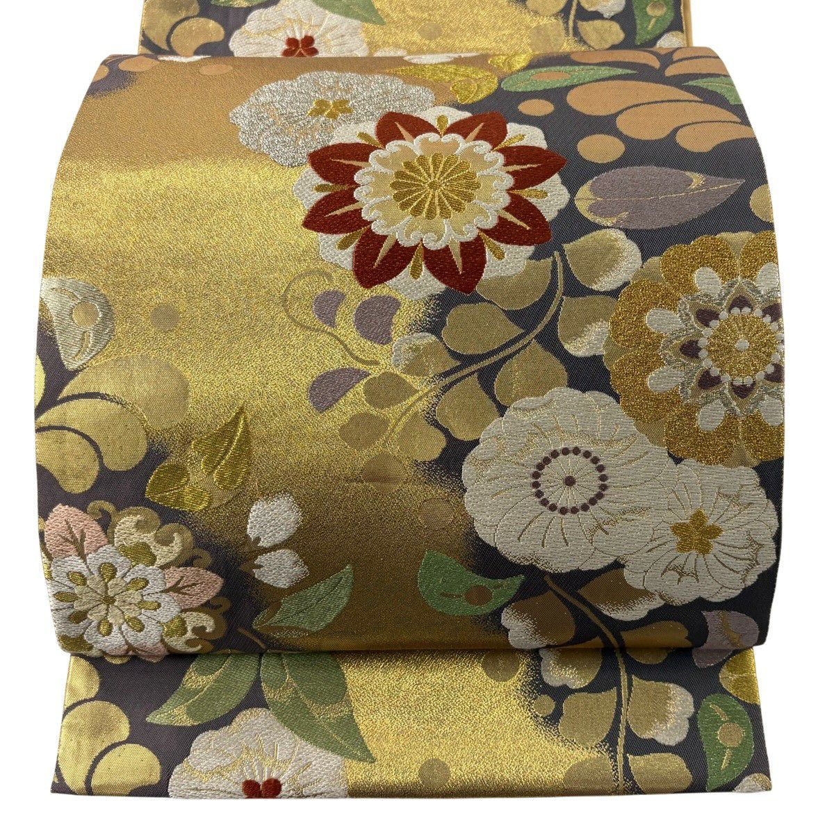 30%OFF 袋帯 秀品 川島織物 落款あり 関西仕立て 草花 段縞 箔 クリーム 全通 正絹 K30