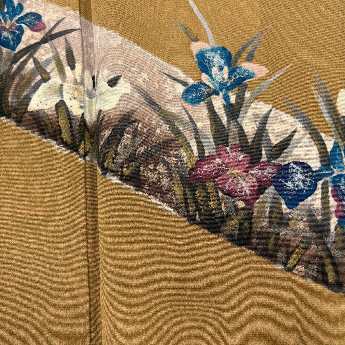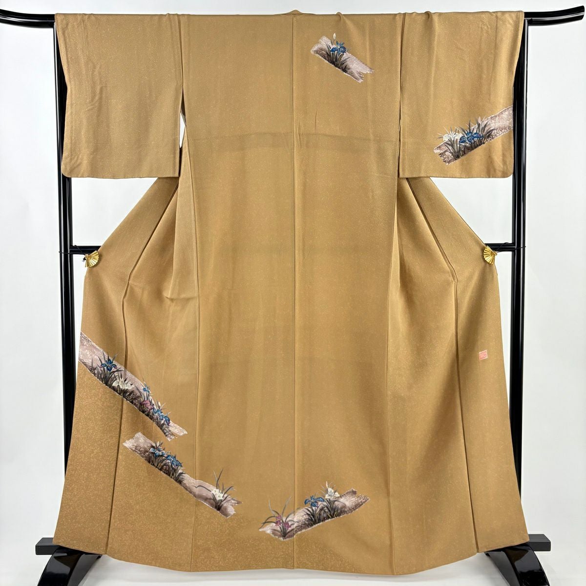 30%OFF 付下げ 身丈164cm 裄丈66.5cm M 袷 落款あり 菖蒲 茶色 正絹 秀品 K30