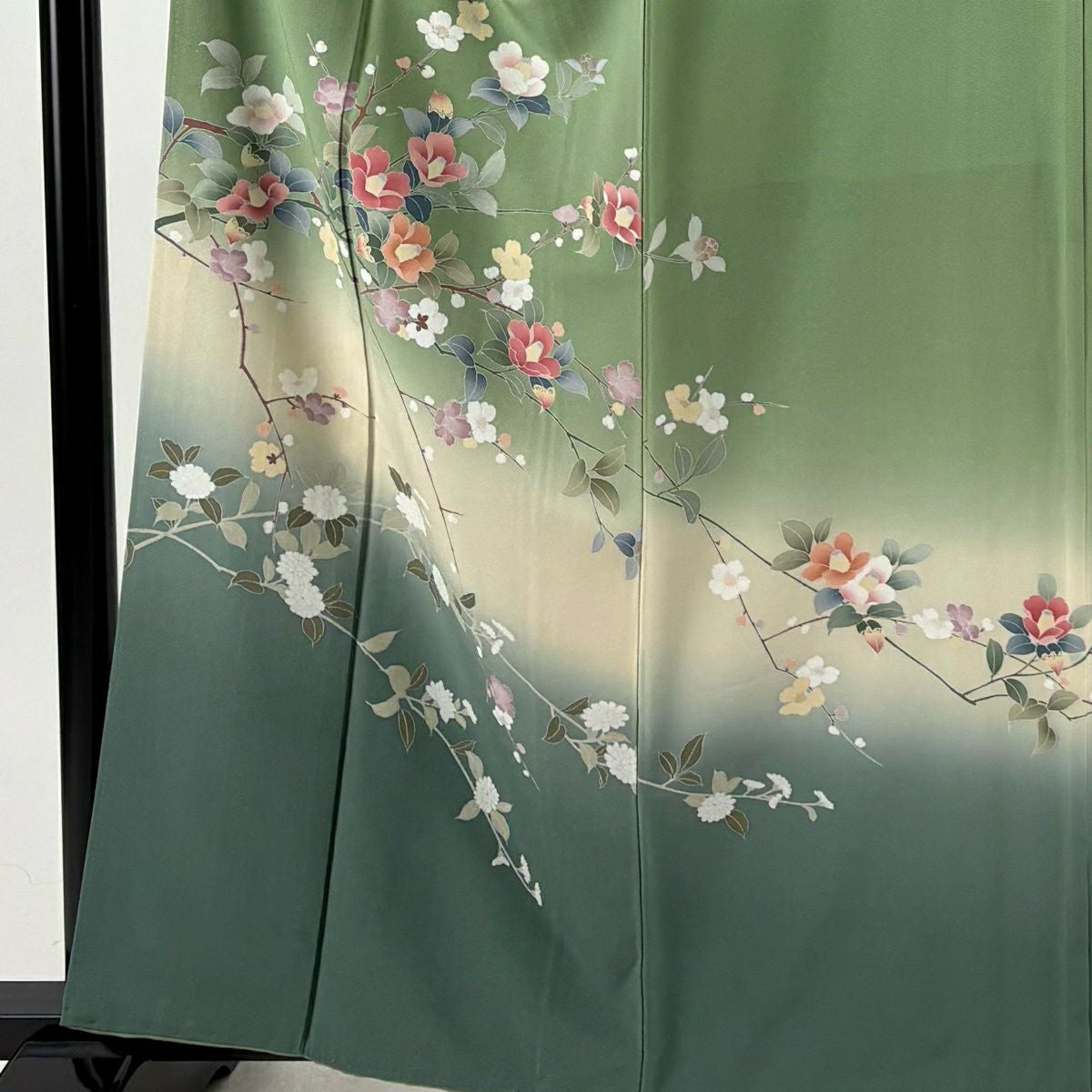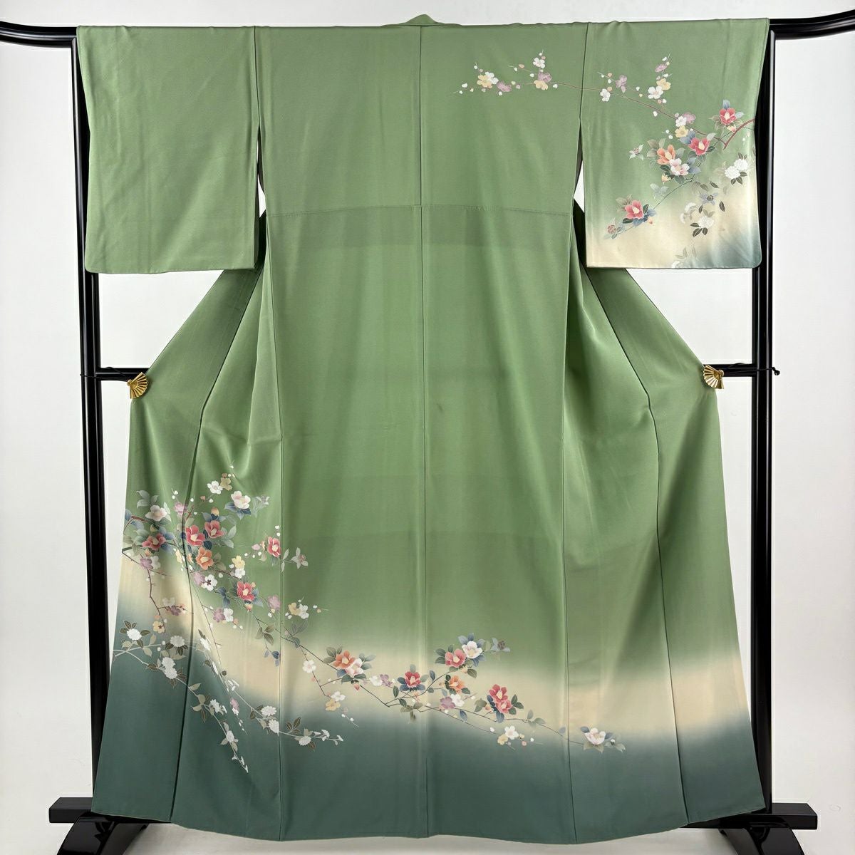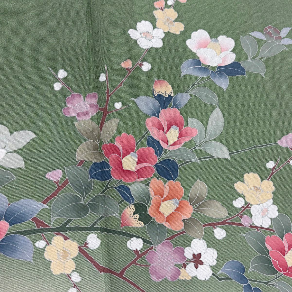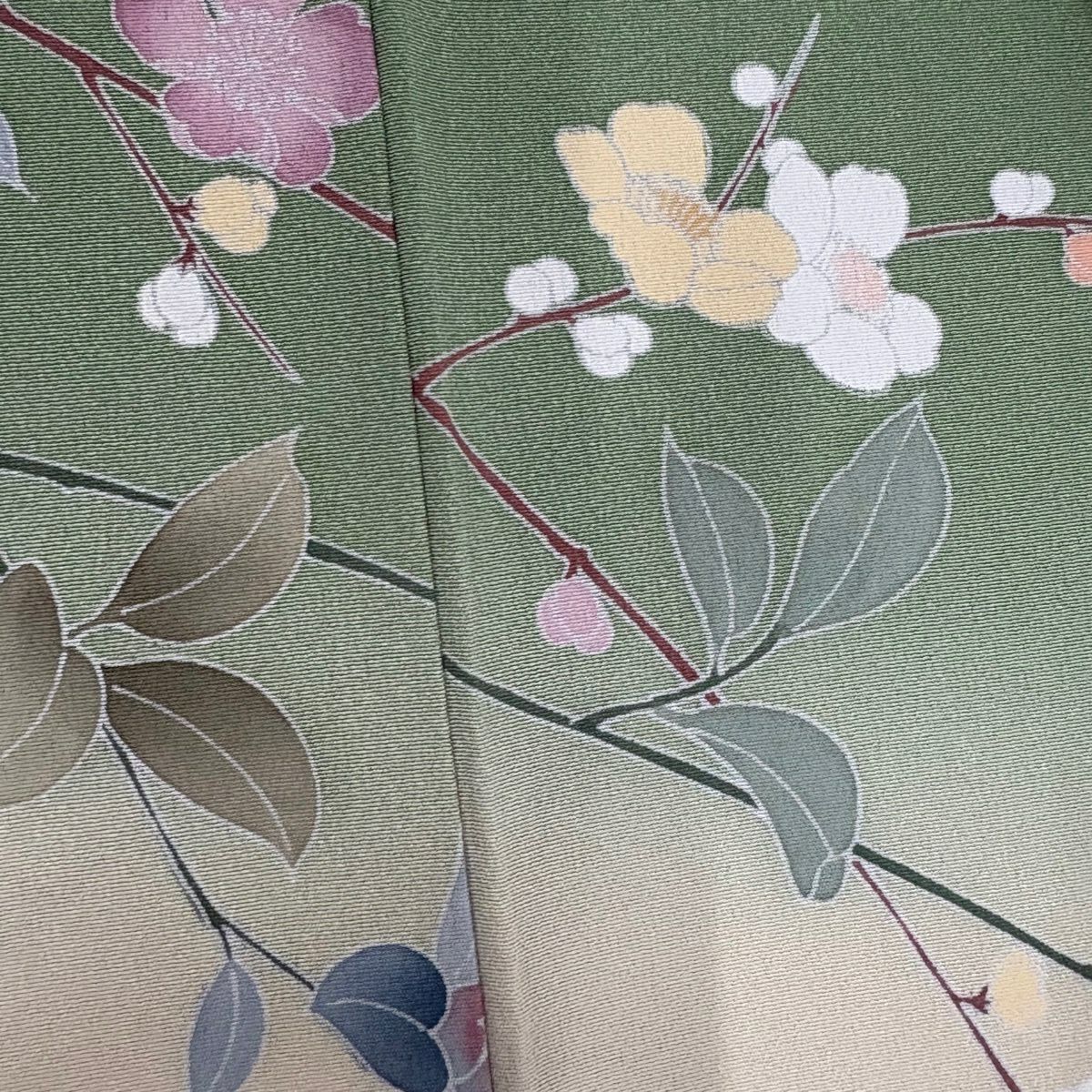 30%OFF 【美品】 振袖 身丈162cm 裄丈66cm M 袷 草花 金彩 青緑 正絹 秀品 K30