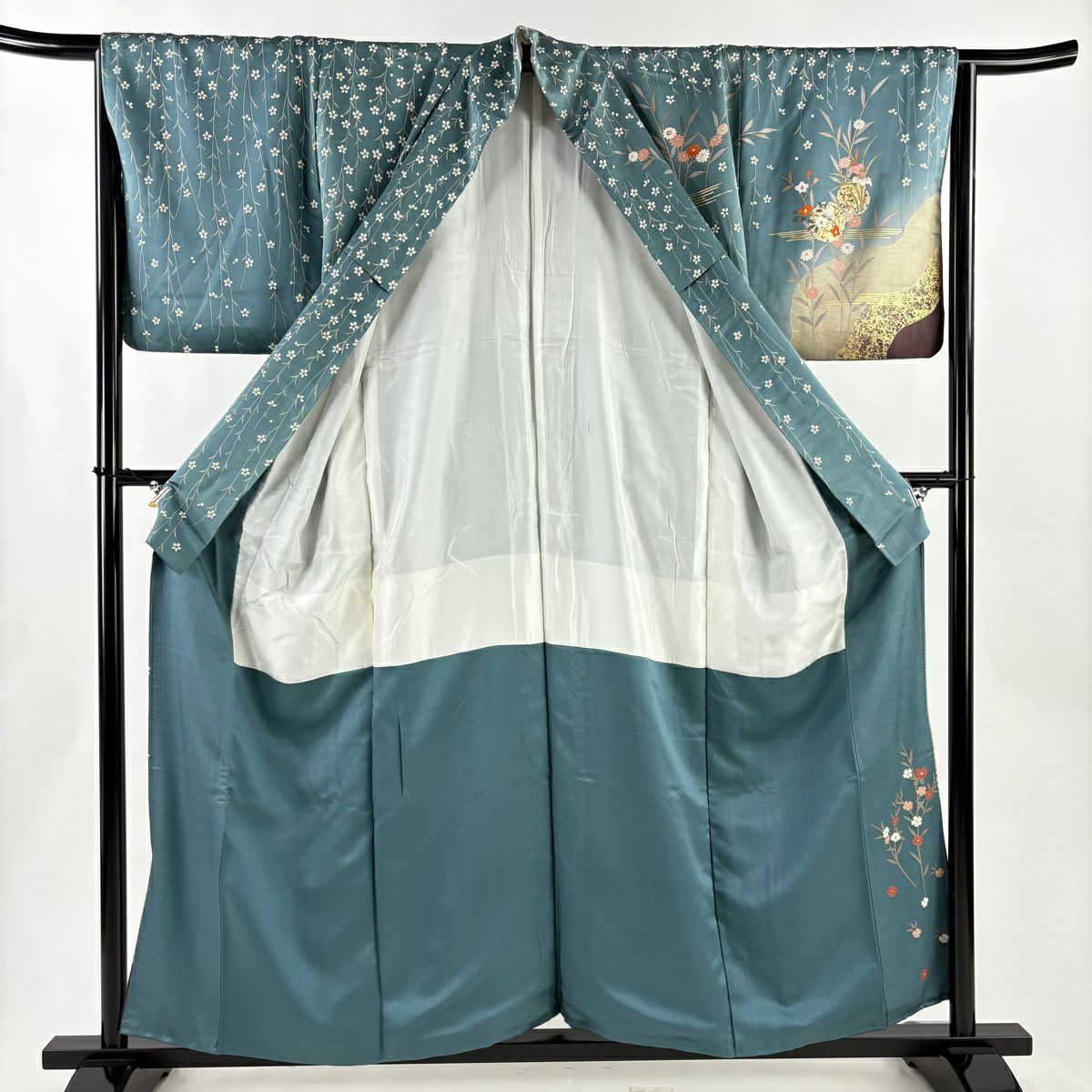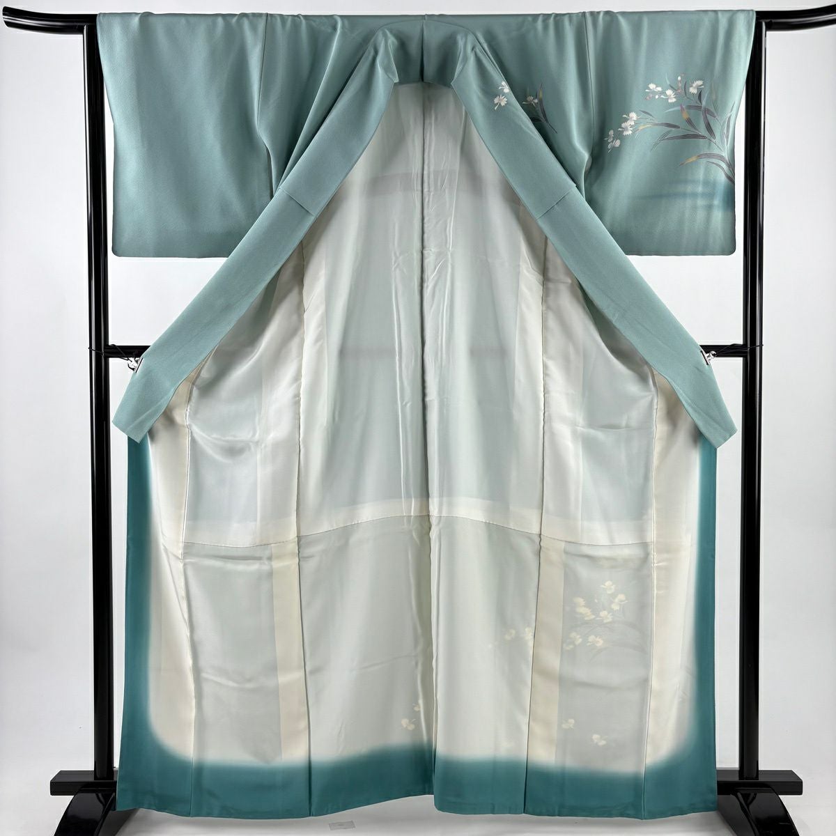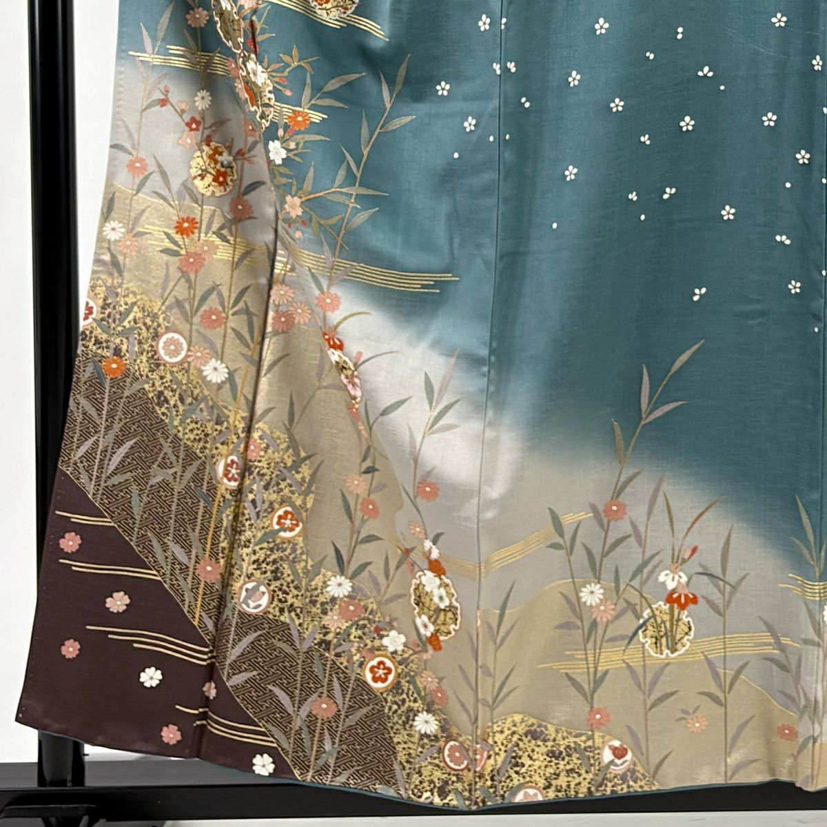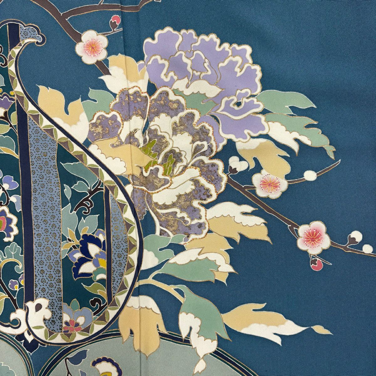 30%OFF 【美品】 振袖 身丈162cm 裄丈66cm M 袷 草花 金彩 青緑 正絹 秀品 K30