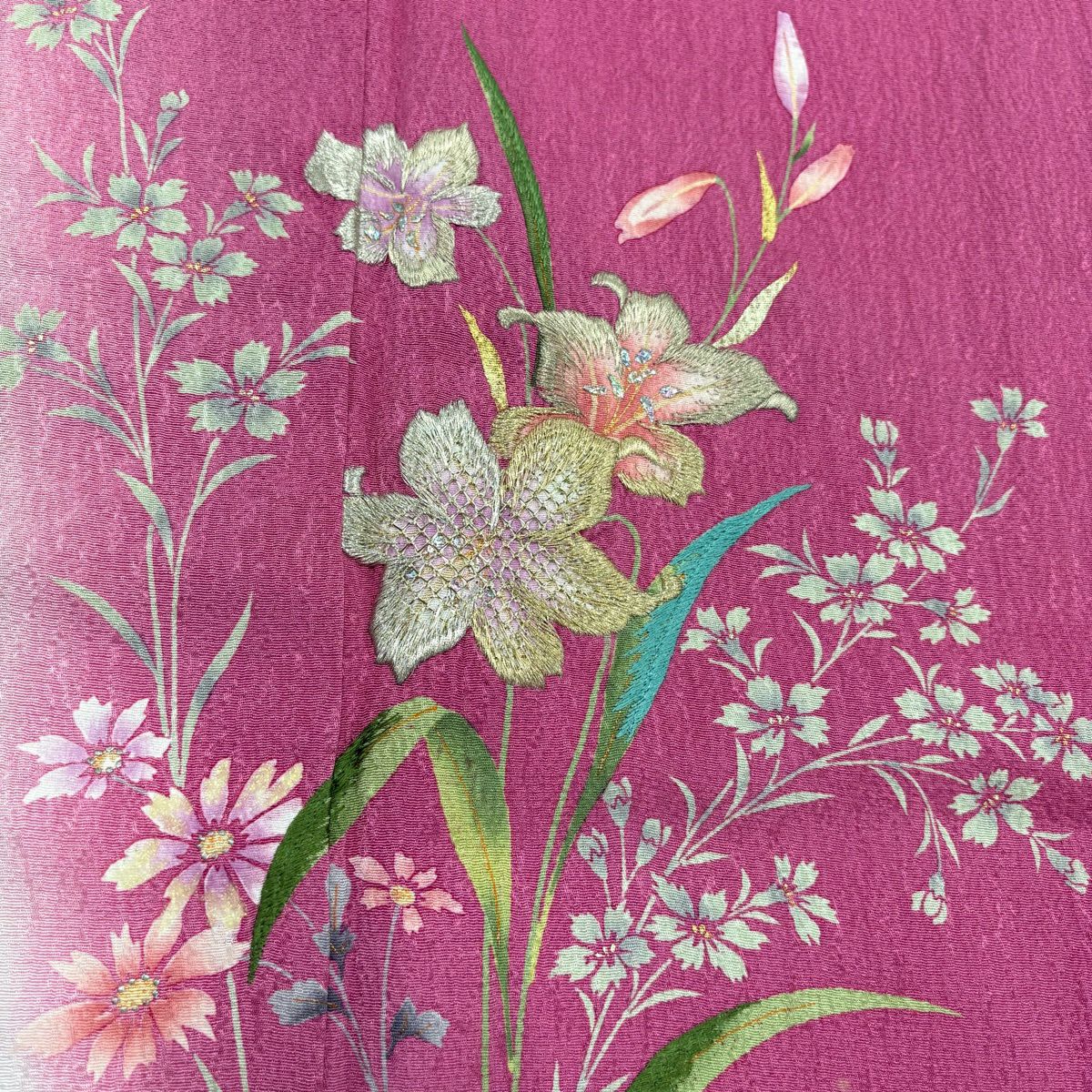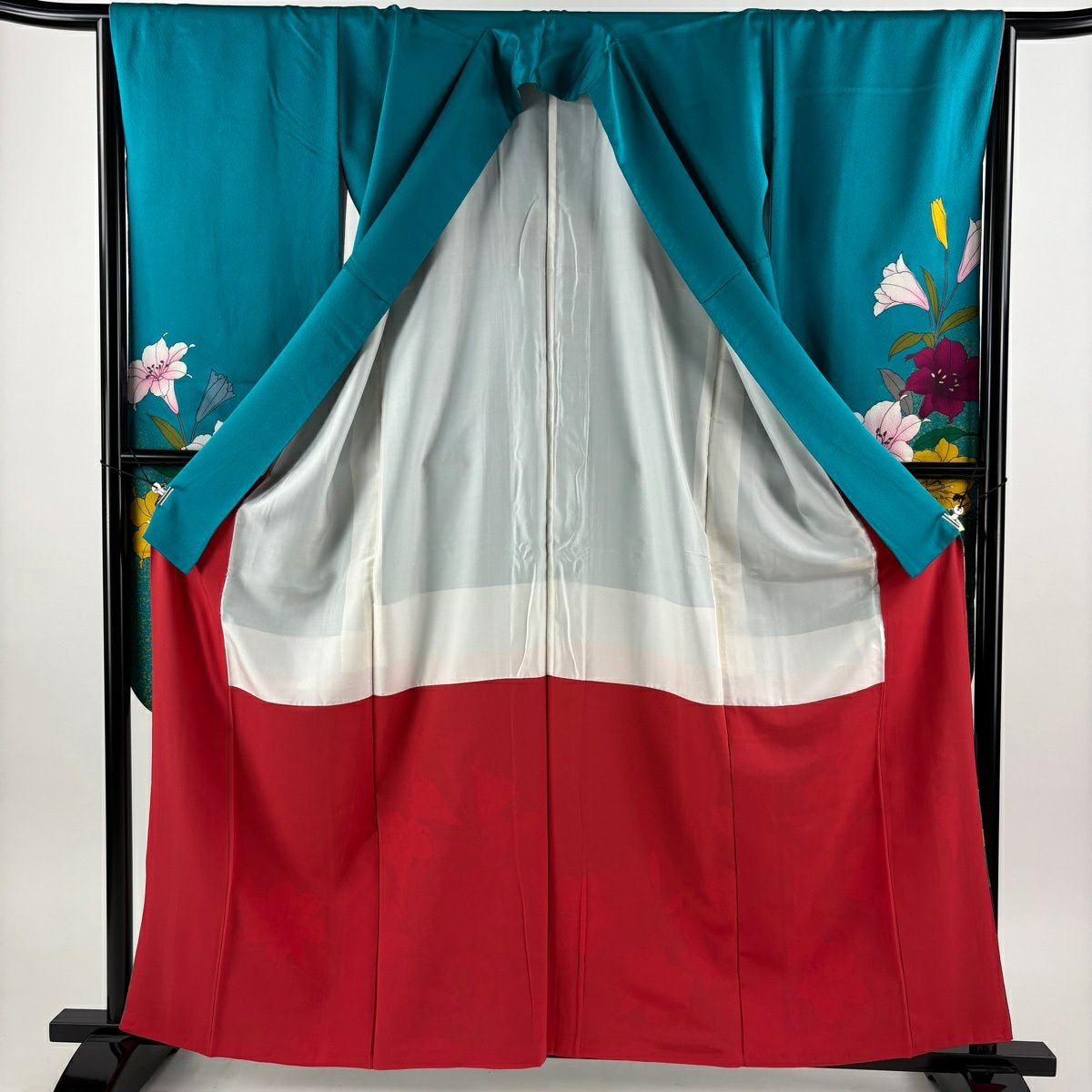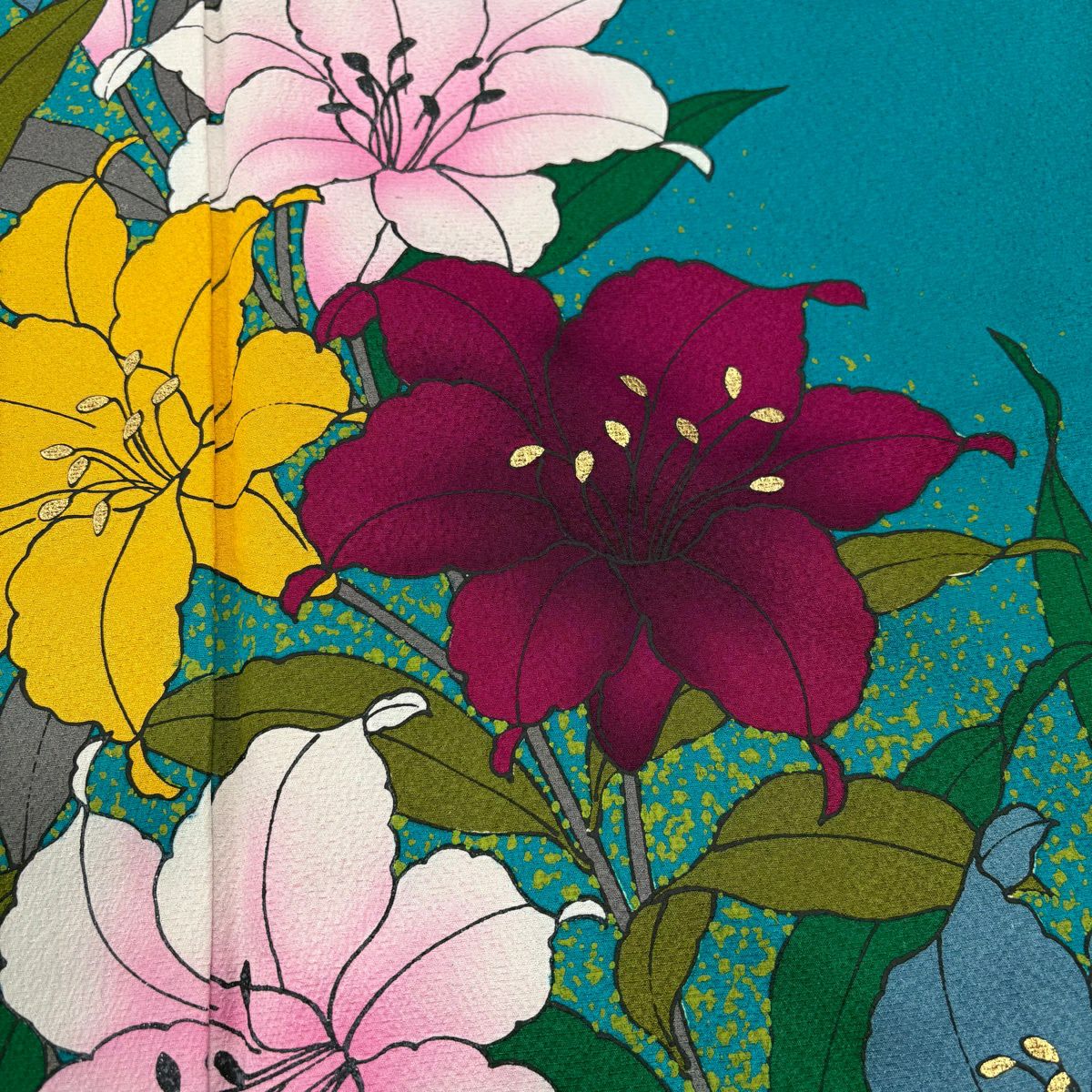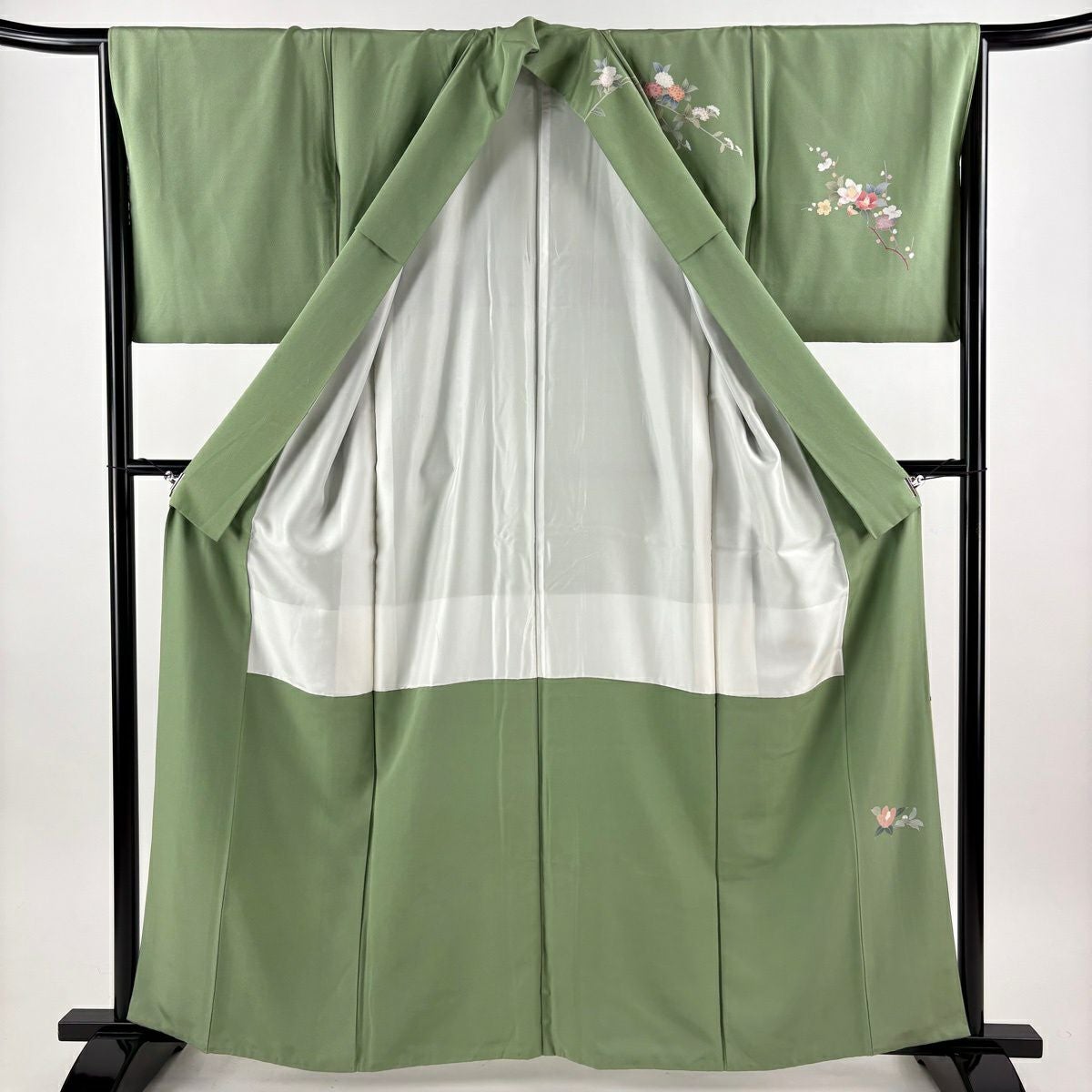 30%OFF 【美品】 振袖 身丈162cm 裄丈66cm M 袷 草花 金彩 青緑 正絹 秀品 K30