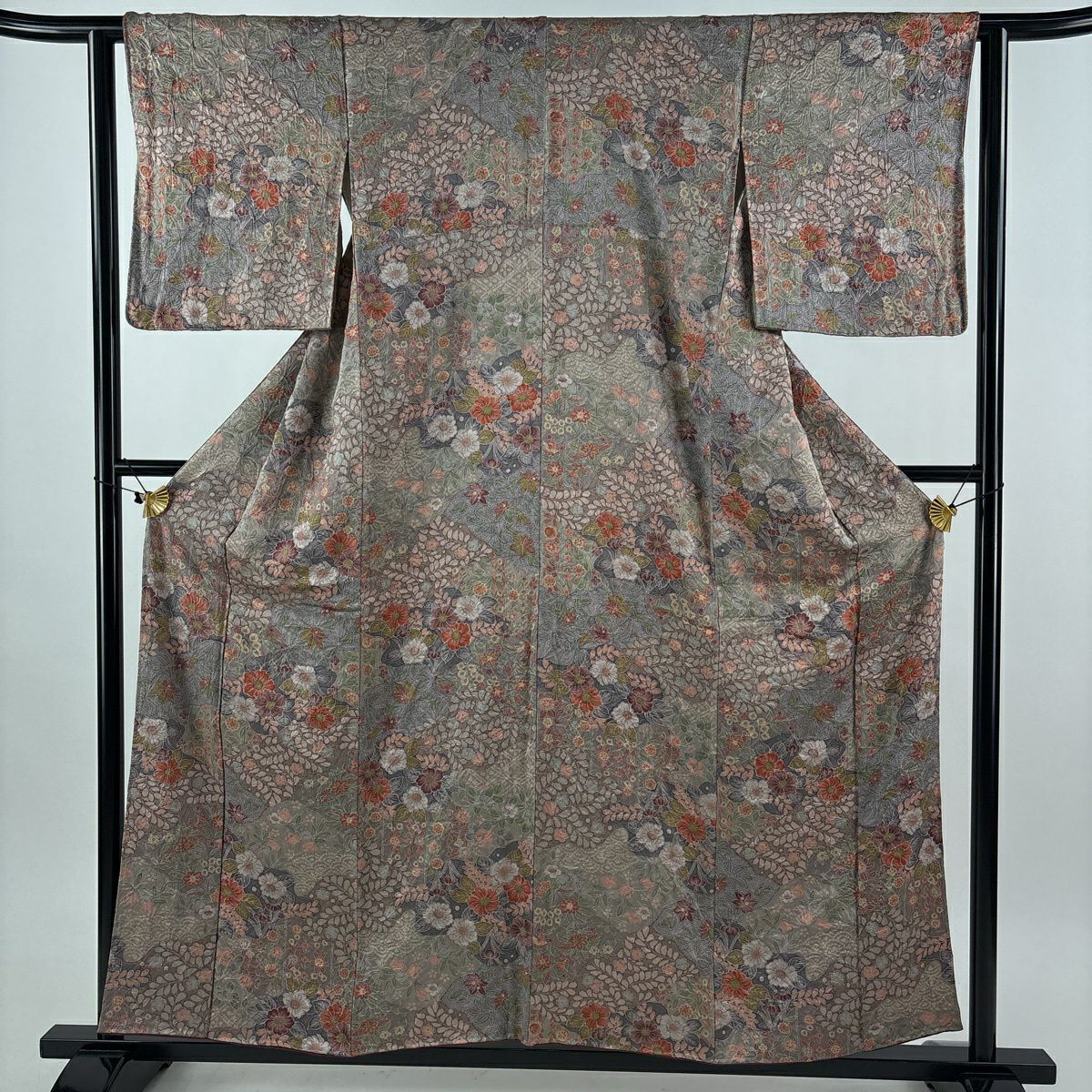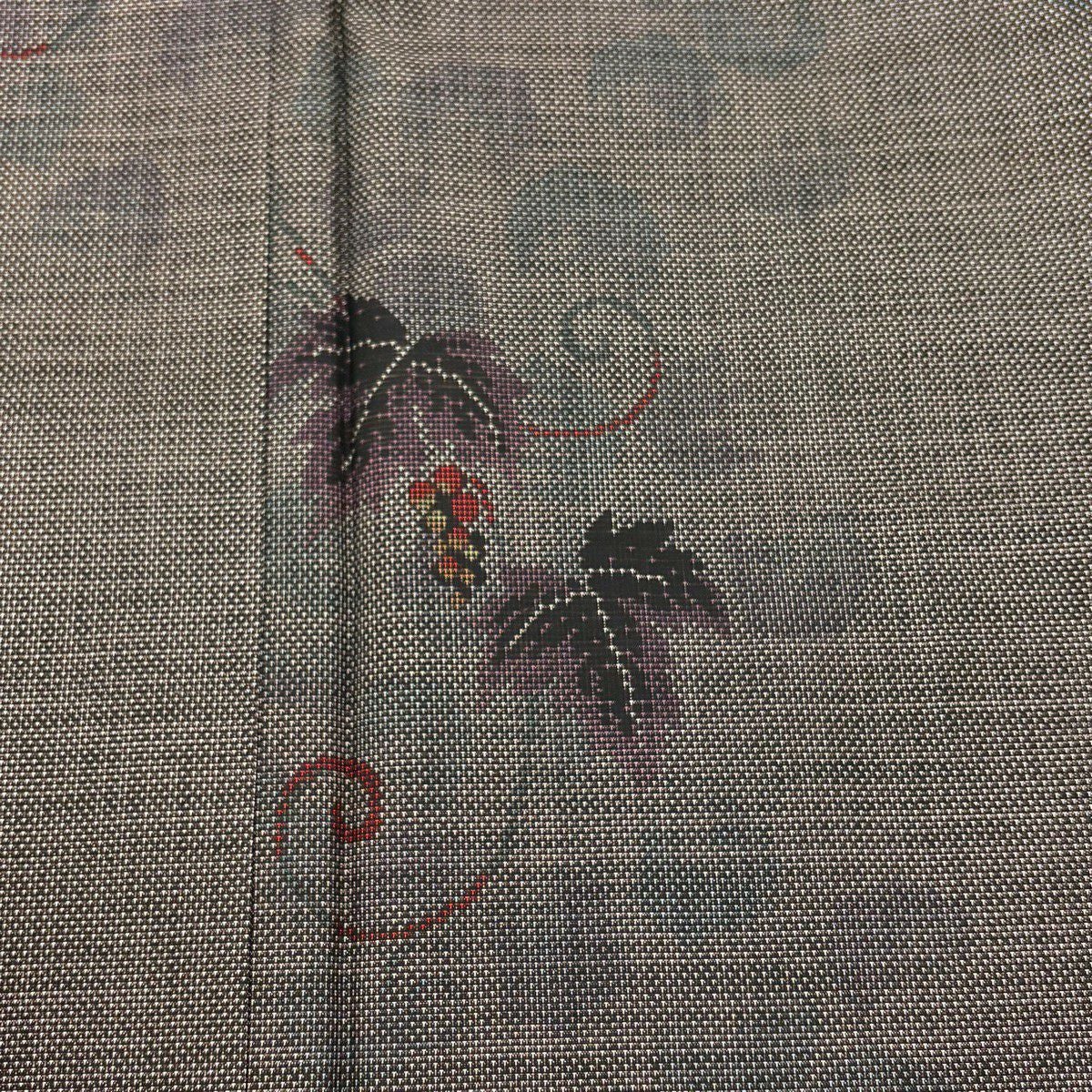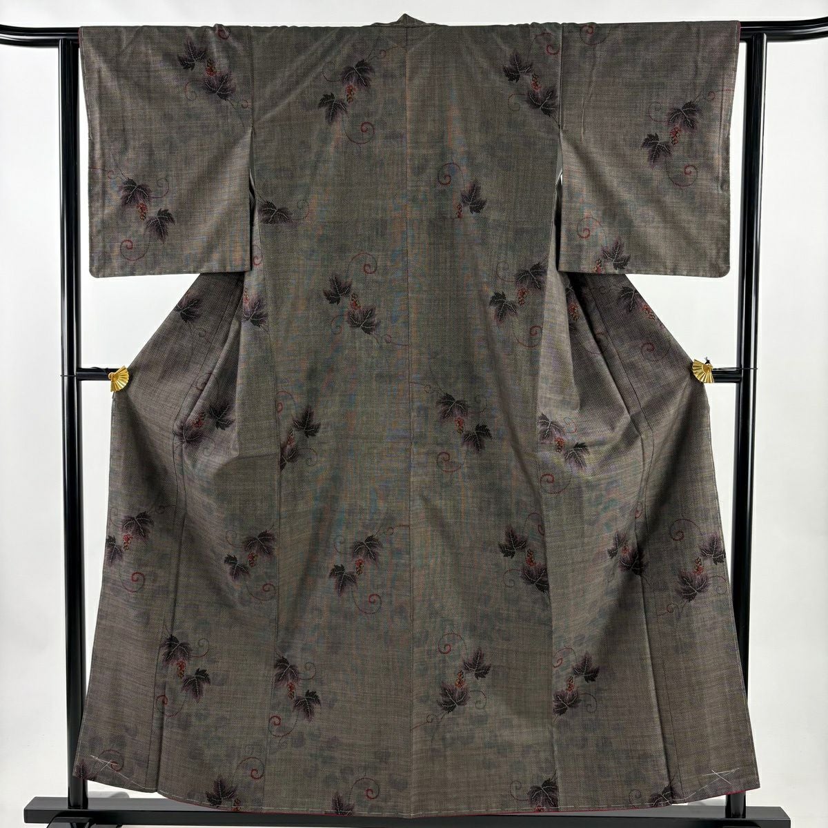 30%OFF 【美品】 紬 身丈157.5cm 裄丈63cm S 袷 葡萄唐草 灰茶 正絹 秀品 K30