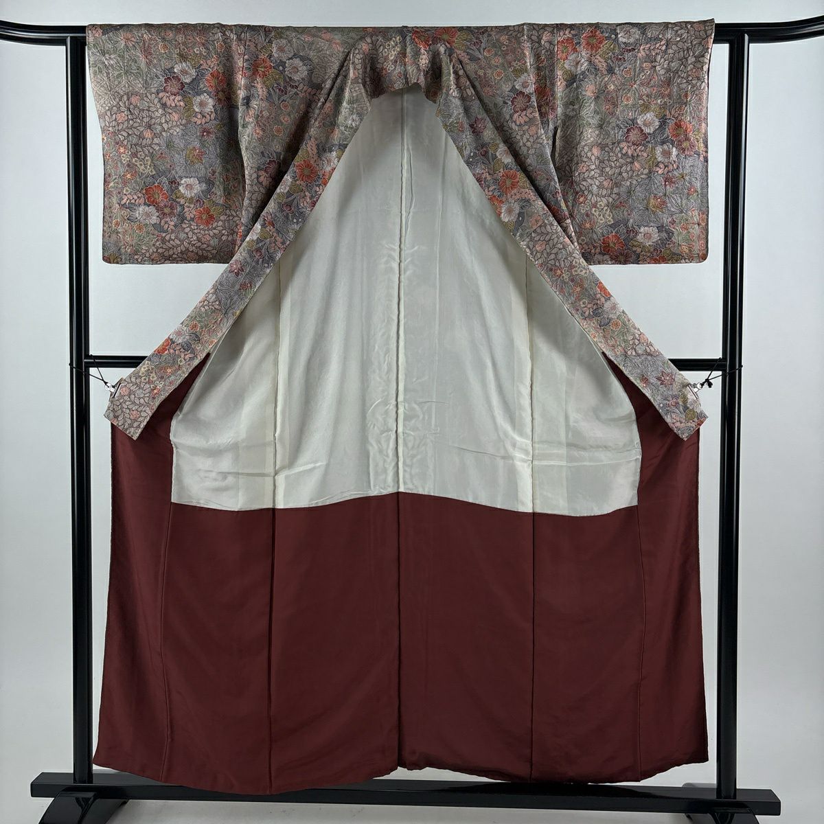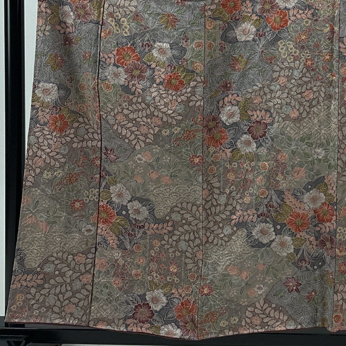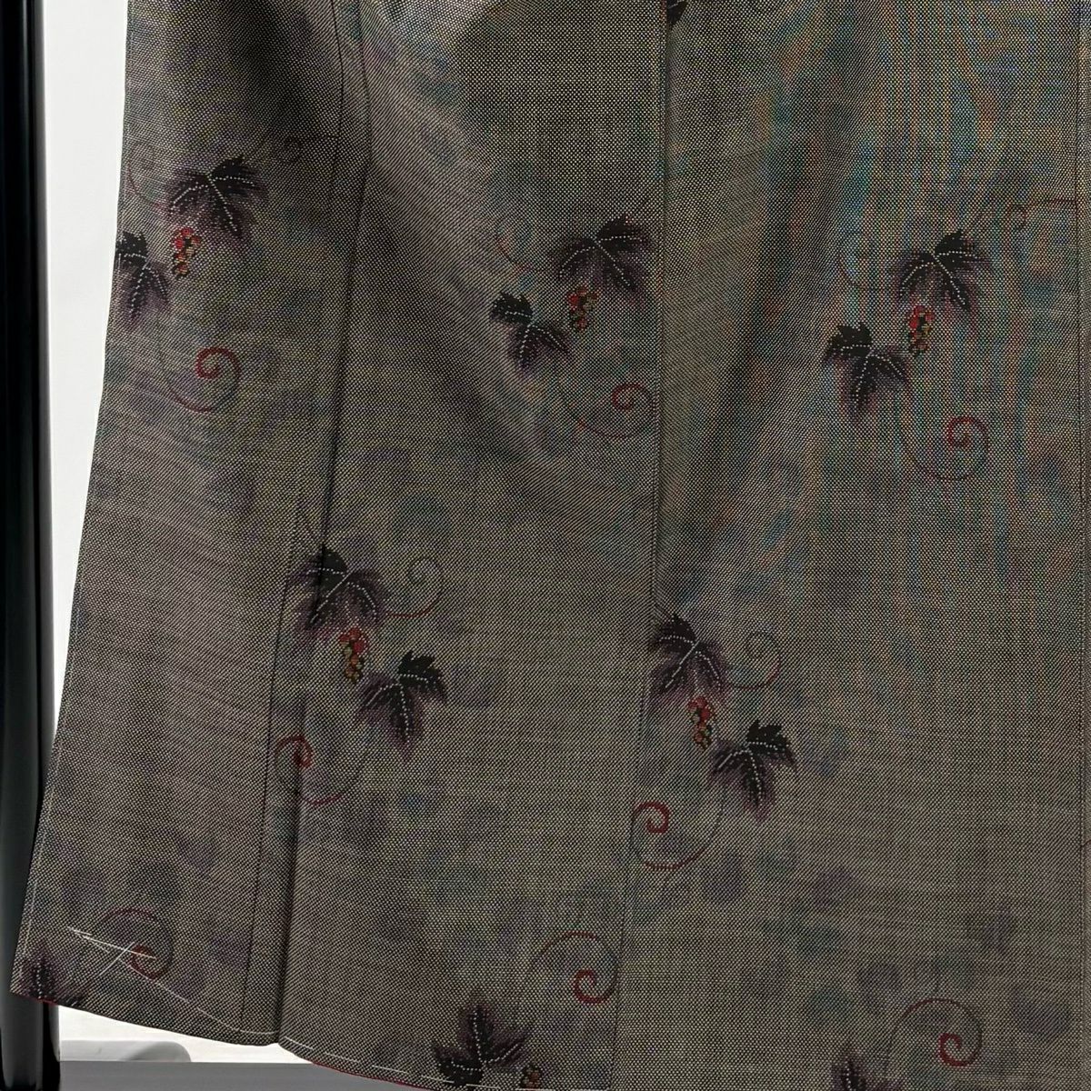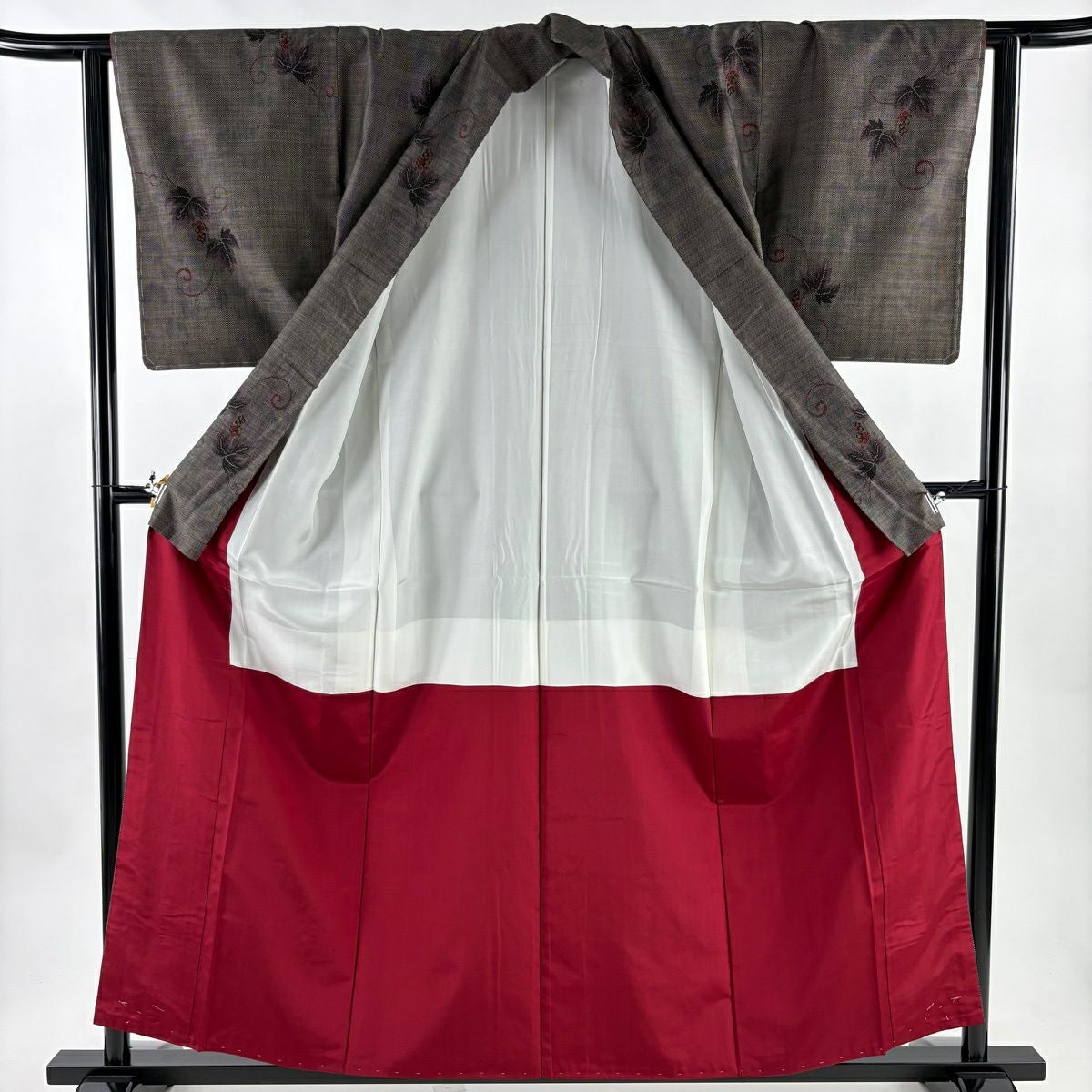 30%OFF 【美品】 紬 身丈157.5cm 裄丈63cm S 袷 葡萄唐草 灰茶 正絹 秀品 K30