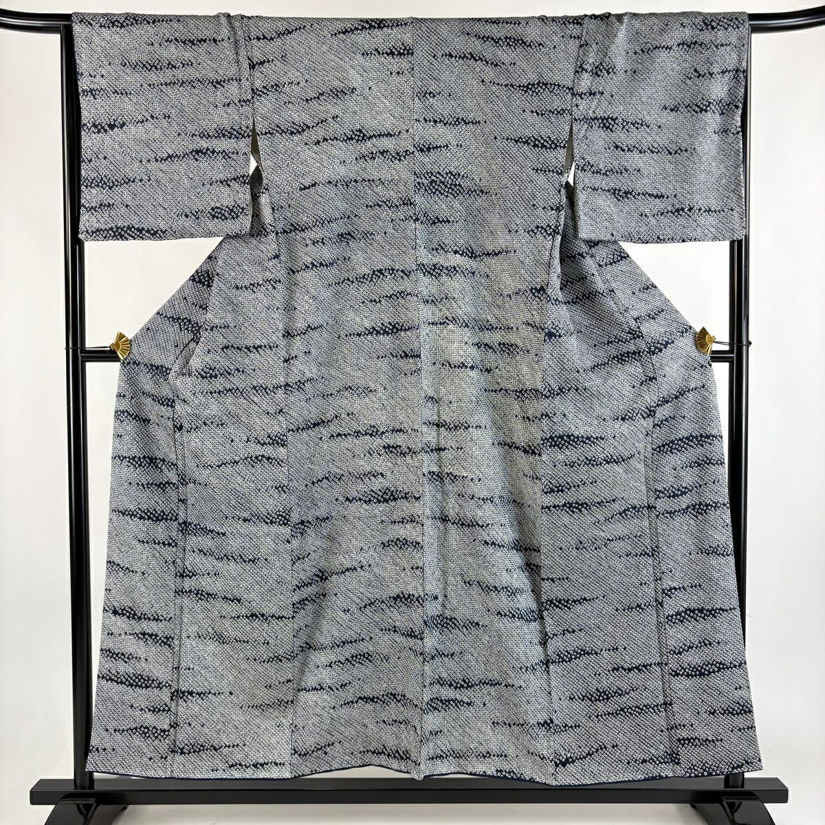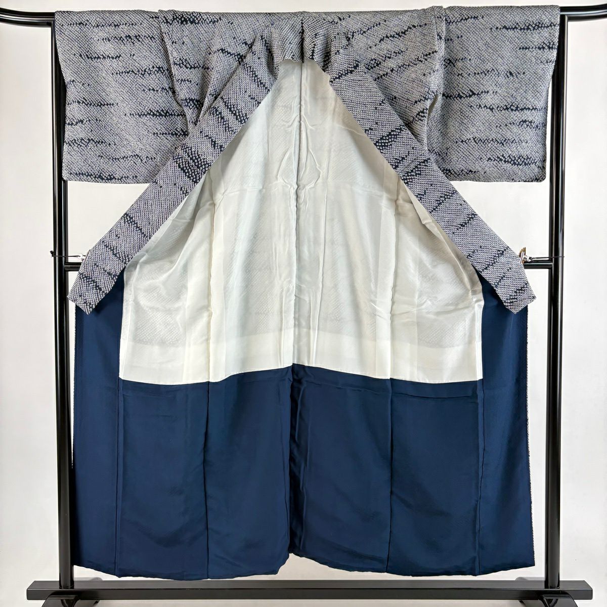 30%OFF 小紋 身丈153.5cm 裄丈66cm M 袷 鈴乃屋 霞 絞り 紺色 正絹 秀品 K30