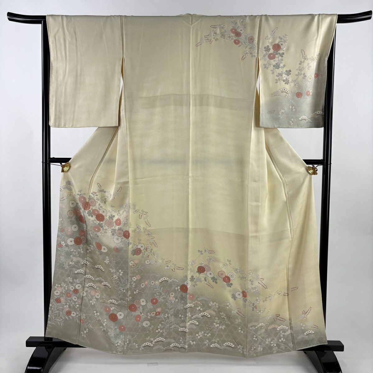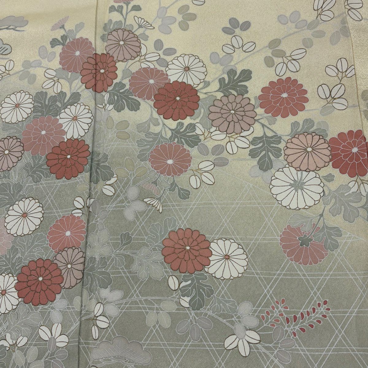 30%OFF 訪問着 身丈162cm 裄丈65.5cm M 袷 菊 籠目 金彩 薄黄 正絹 秀品 K30
