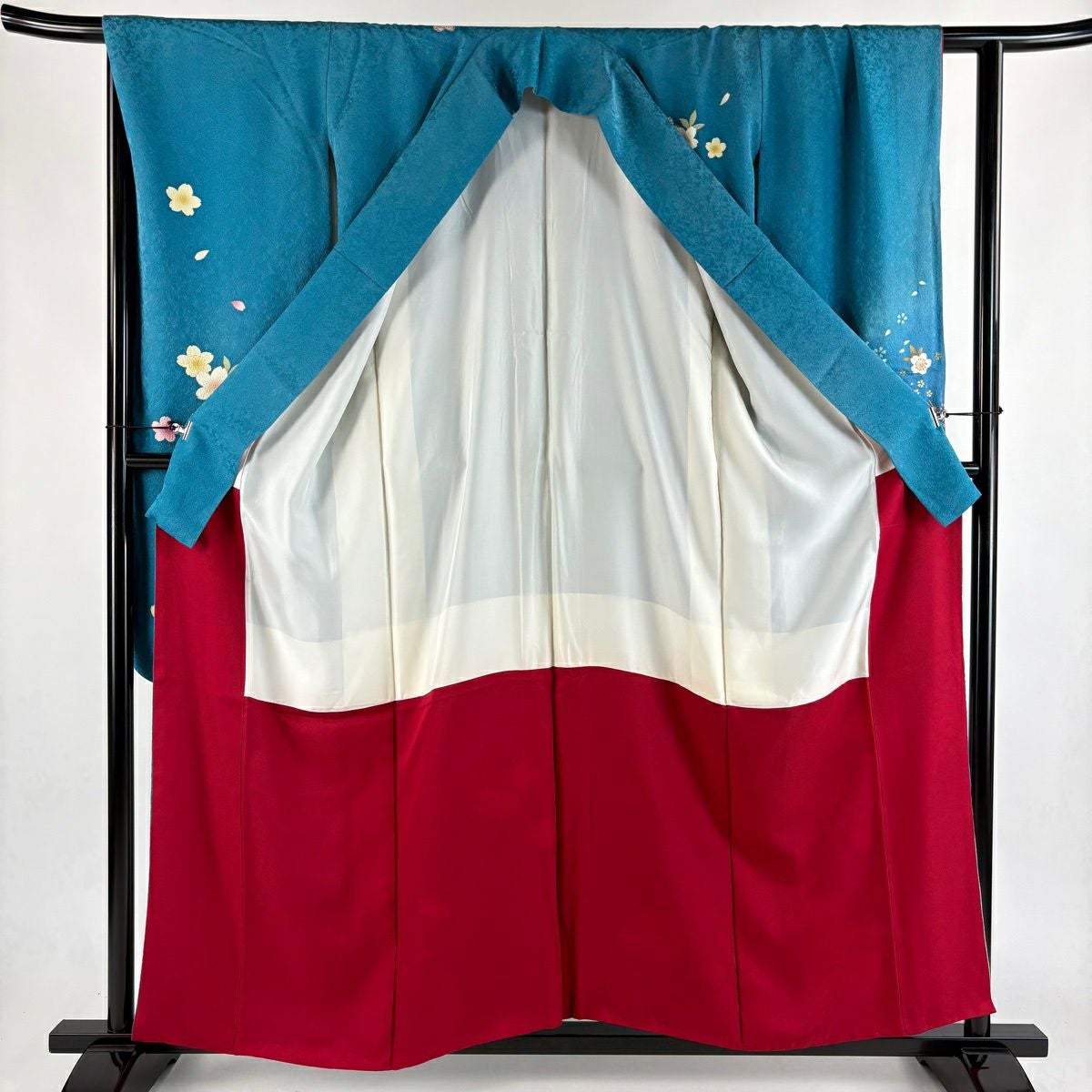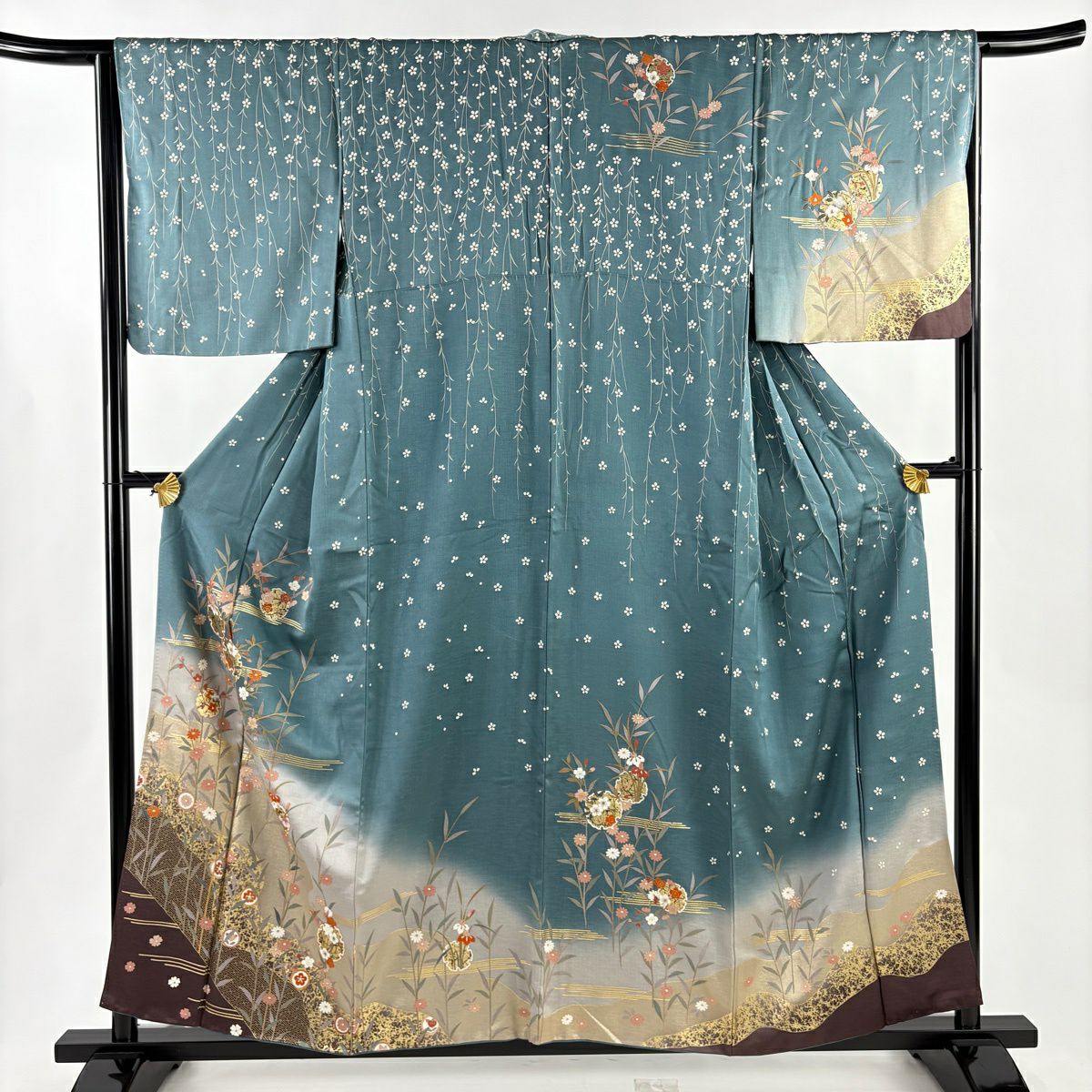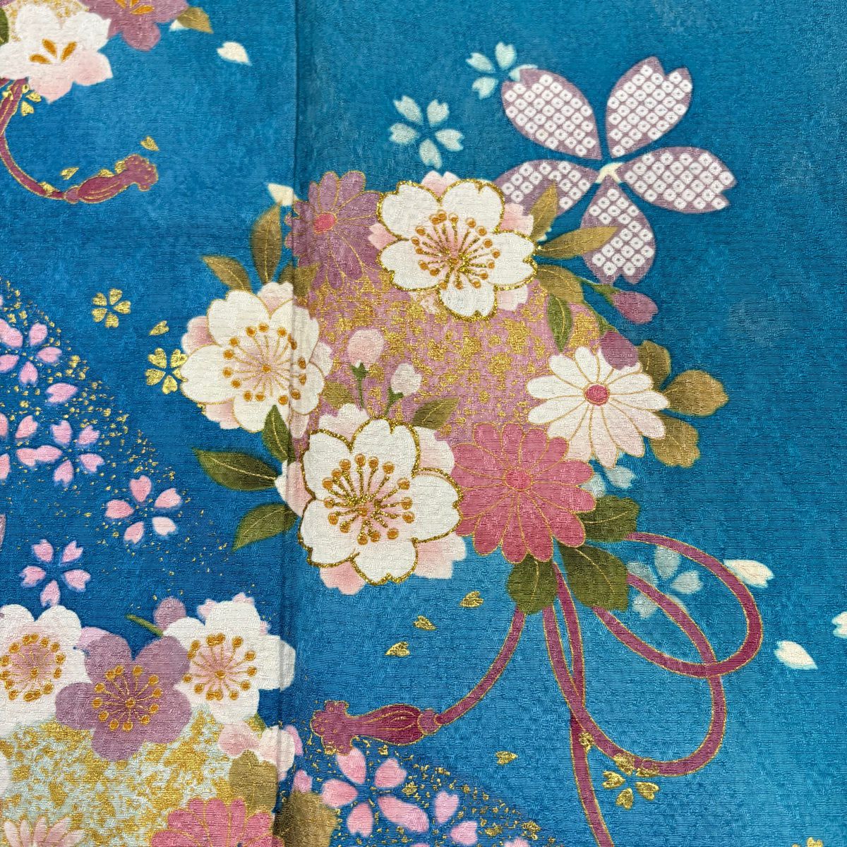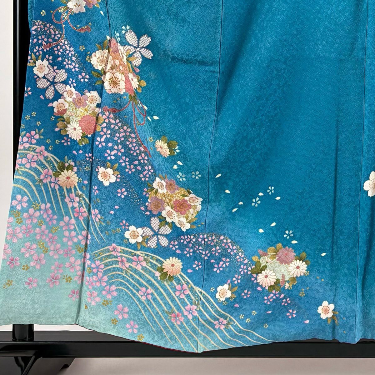 30%OFF 振袖 身丈158.5cm 裄丈66cm M 袷 桜 波 金彩 箔 青緑 正絹 秀品 K30