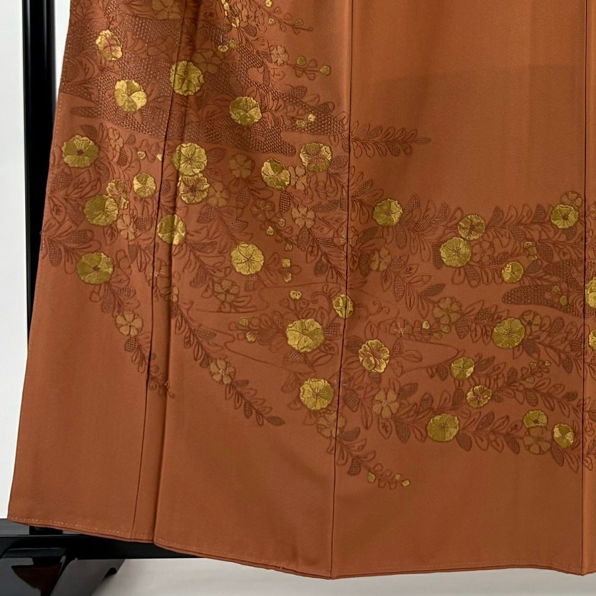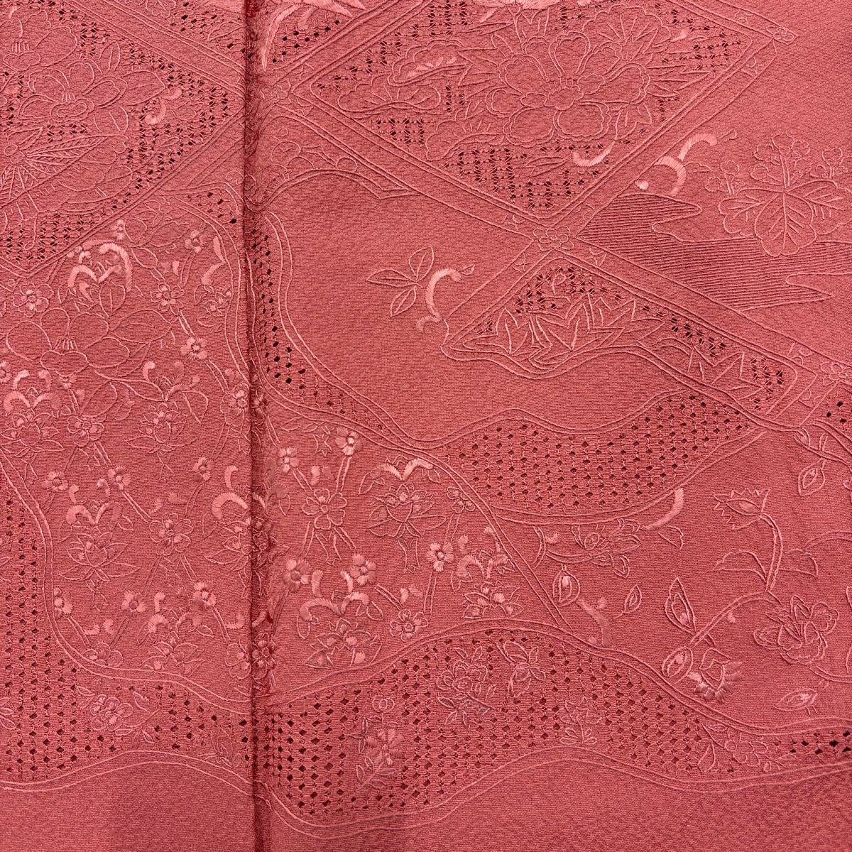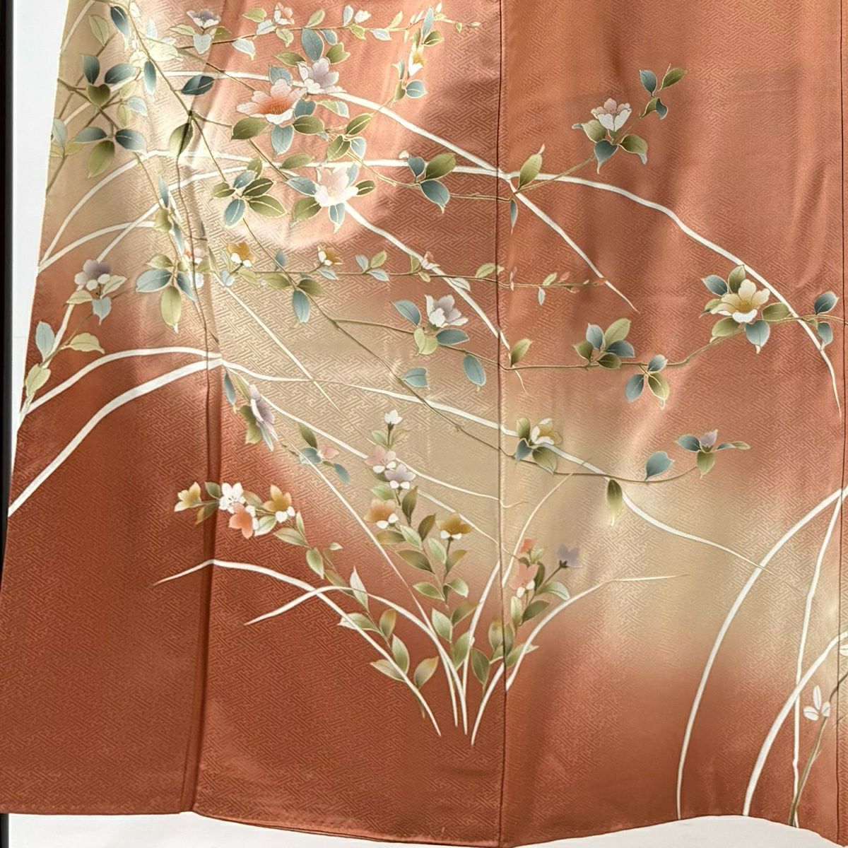 30%OFF 付下げ 身丈161.5cm 裄丈64cm M 袷 草花 霞 刺繍 赤茶 正絹 秀品 K30