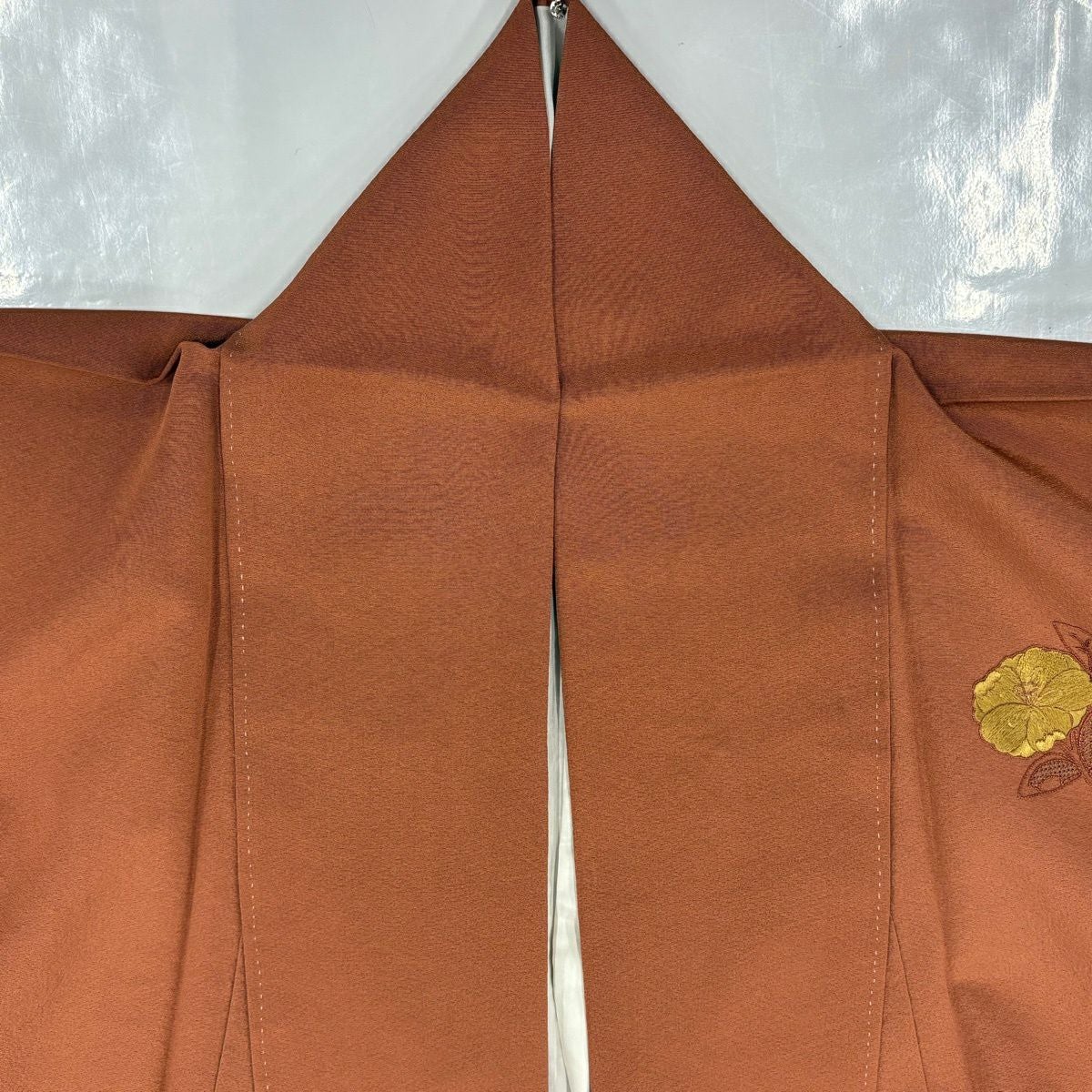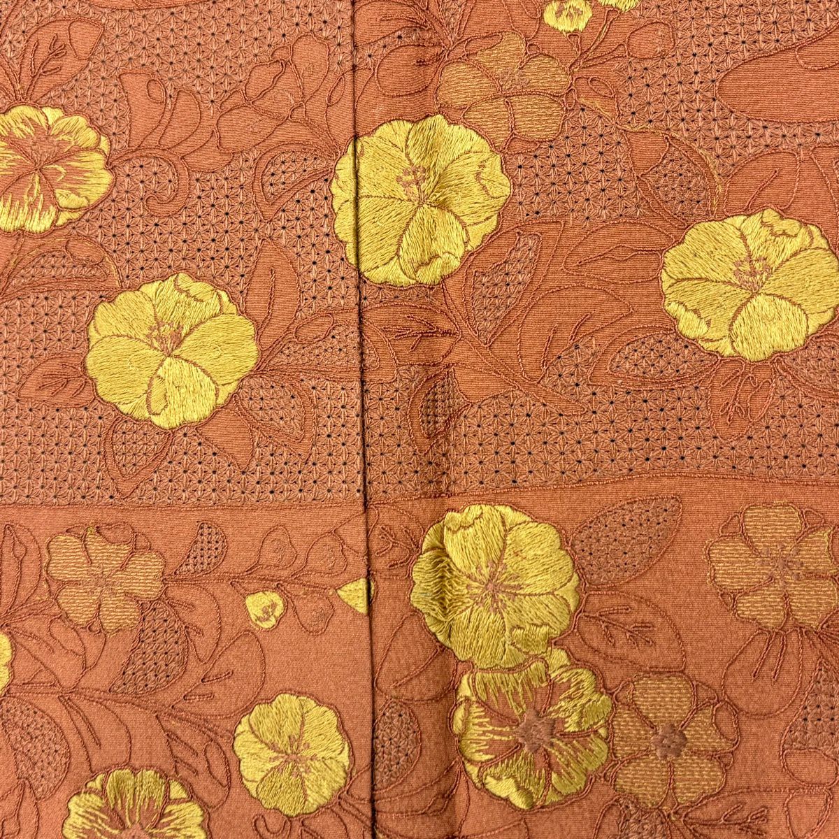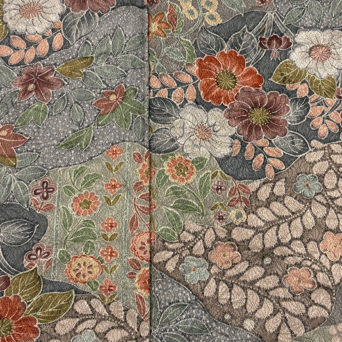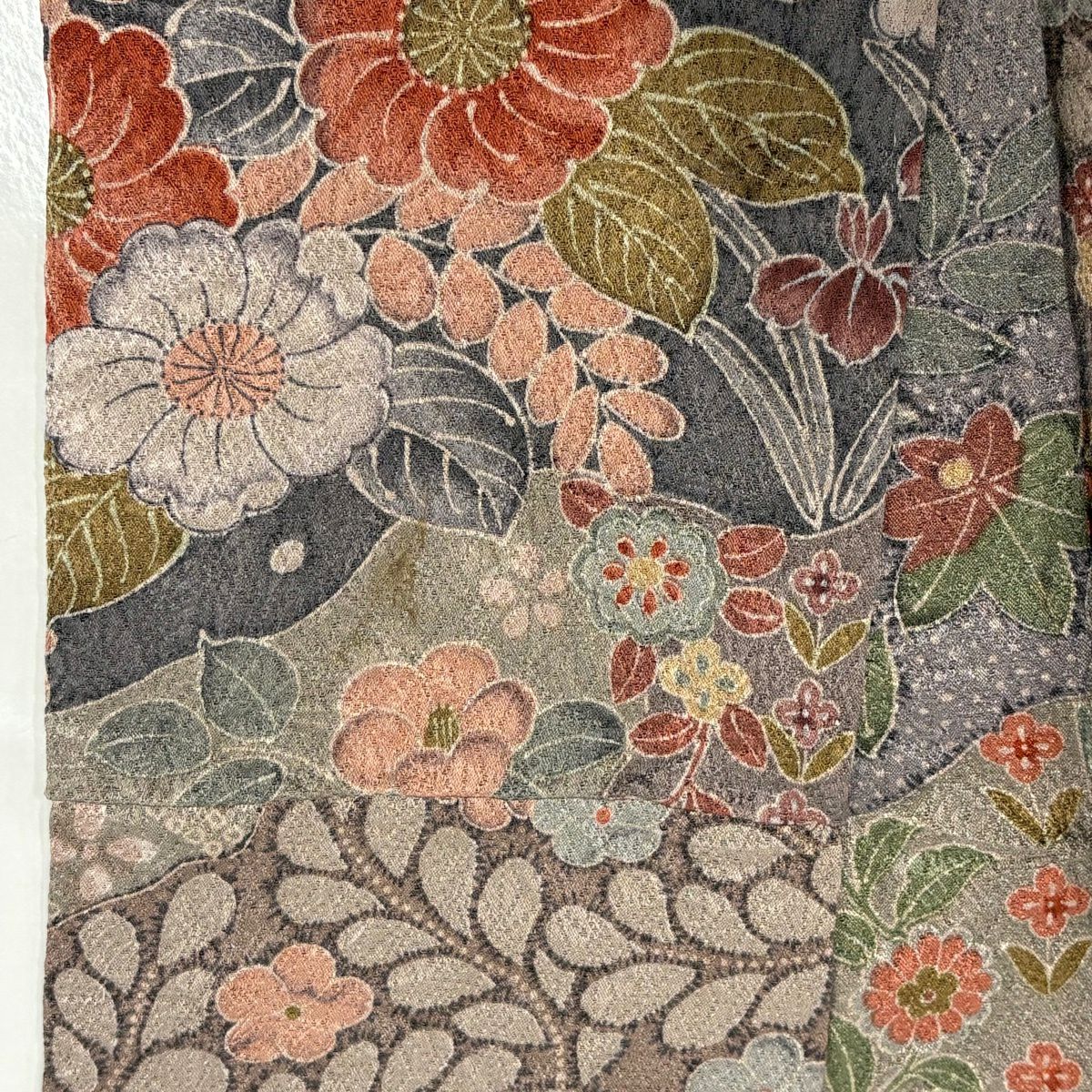 30%OFF 付下げ 身丈161.5cm 裄丈64cm M 袷 草花 霞 刺繍 赤茶 正絹 秀品 K30