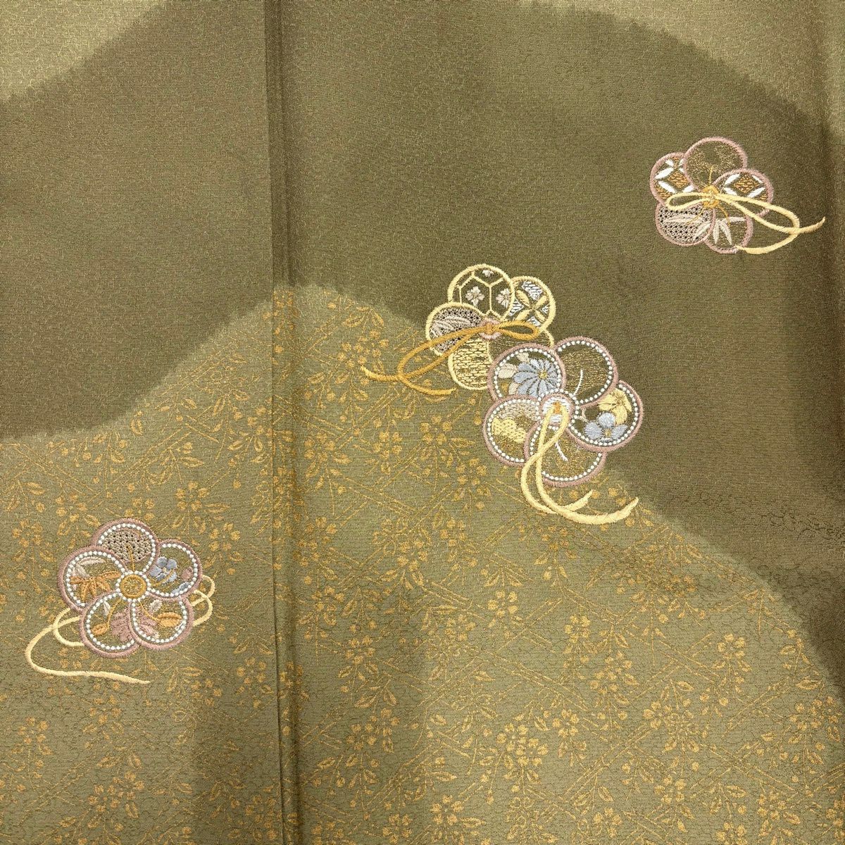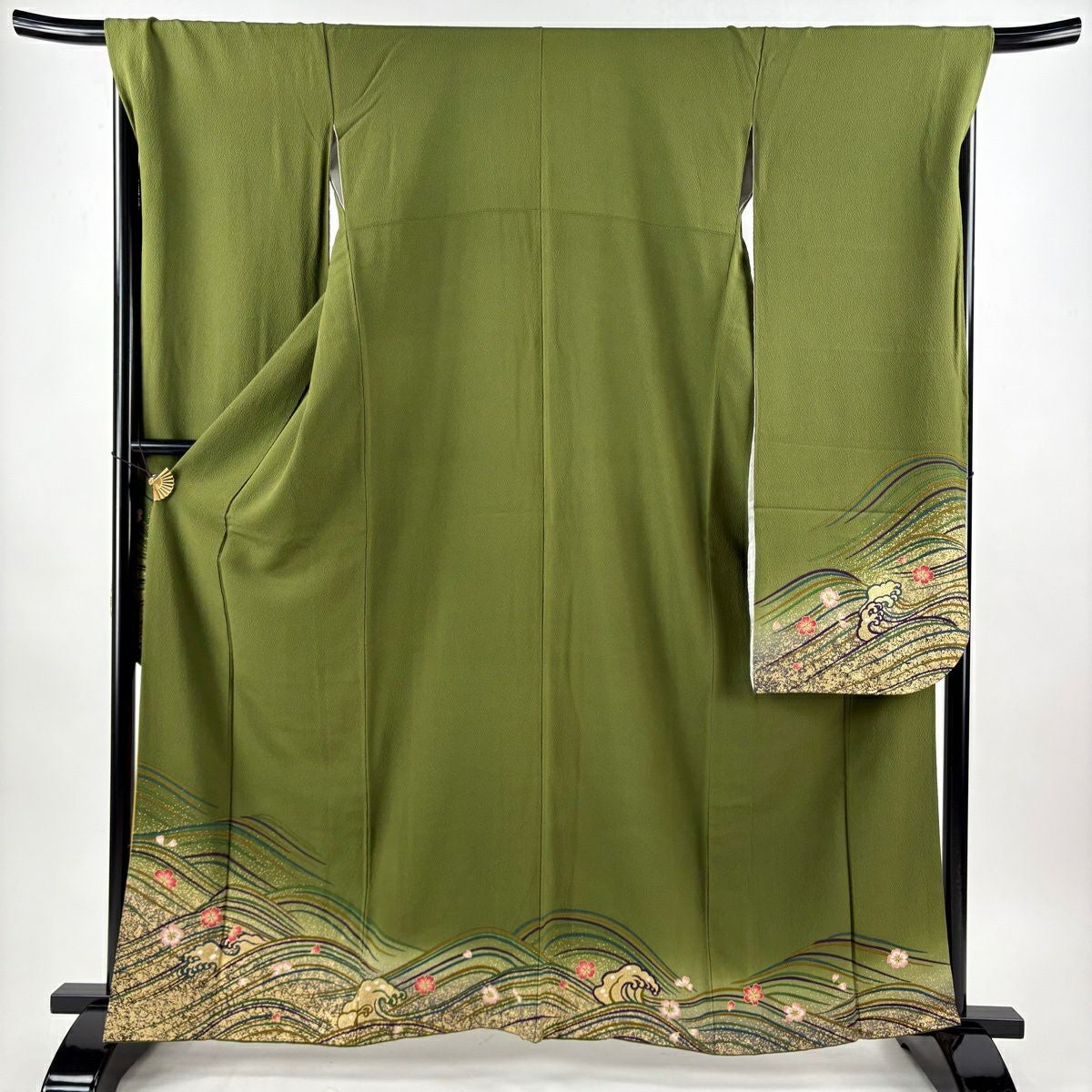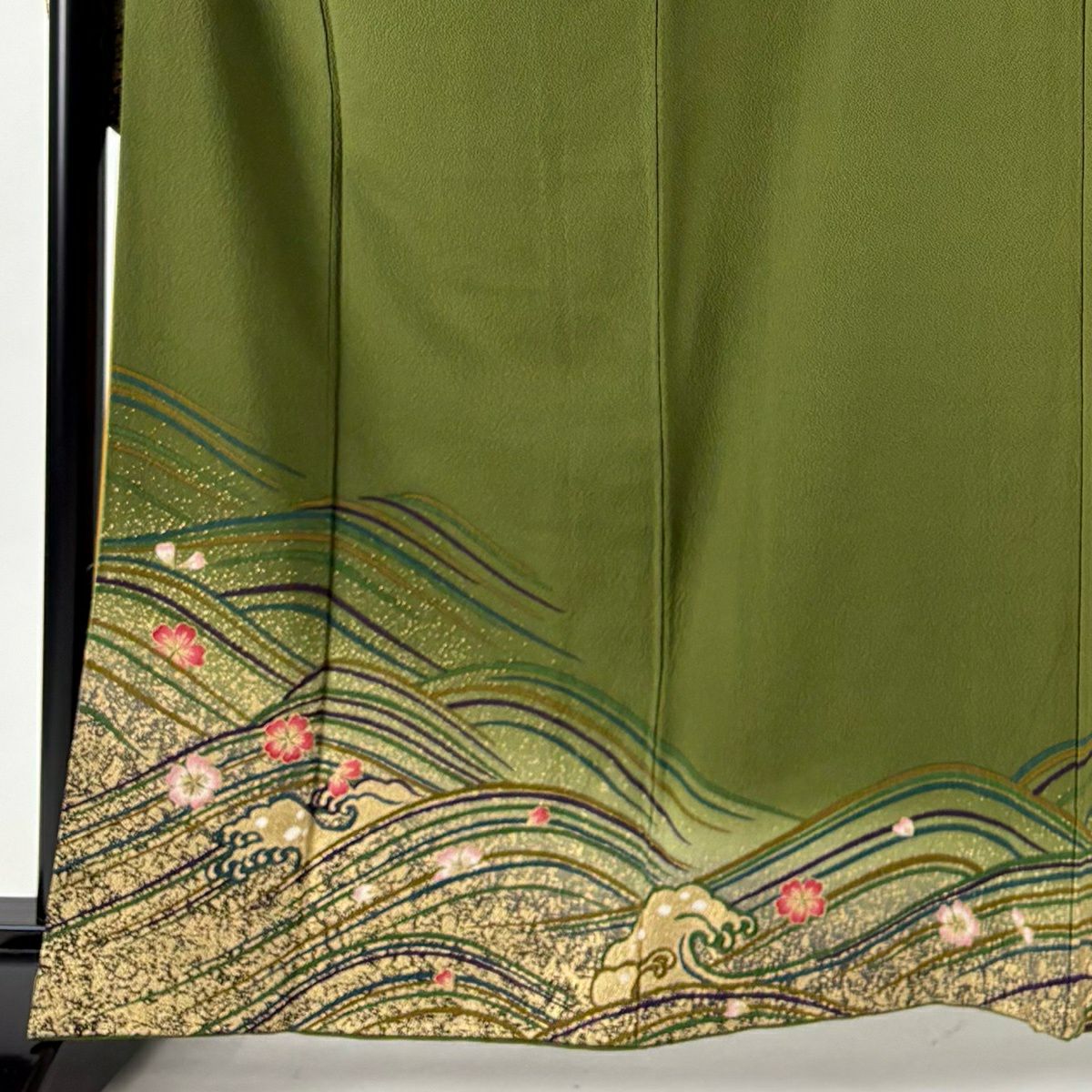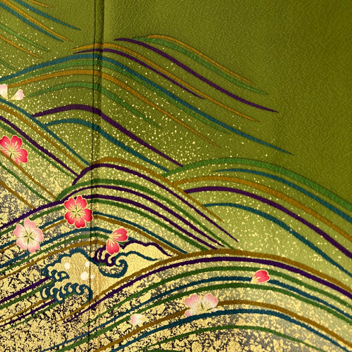 30%OFF 振袖 身丈160cm 裄丈69cm L 袷 やまと 桜 波 金彩 鶯色 正絹 秀品 K30