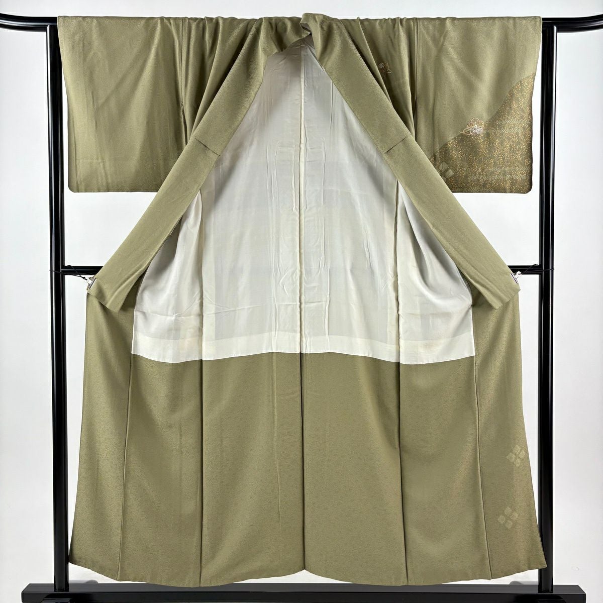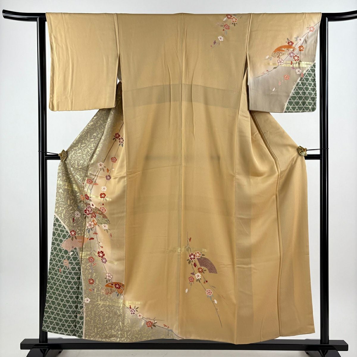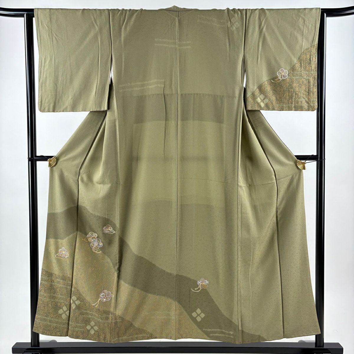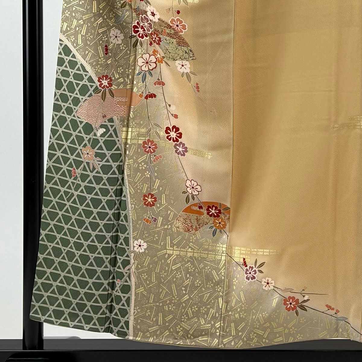 30%OFF 振袖 身丈160cm 裄丈69cm L 袷 やまと 桜 波 金彩 鶯色 正絹 秀品 K30