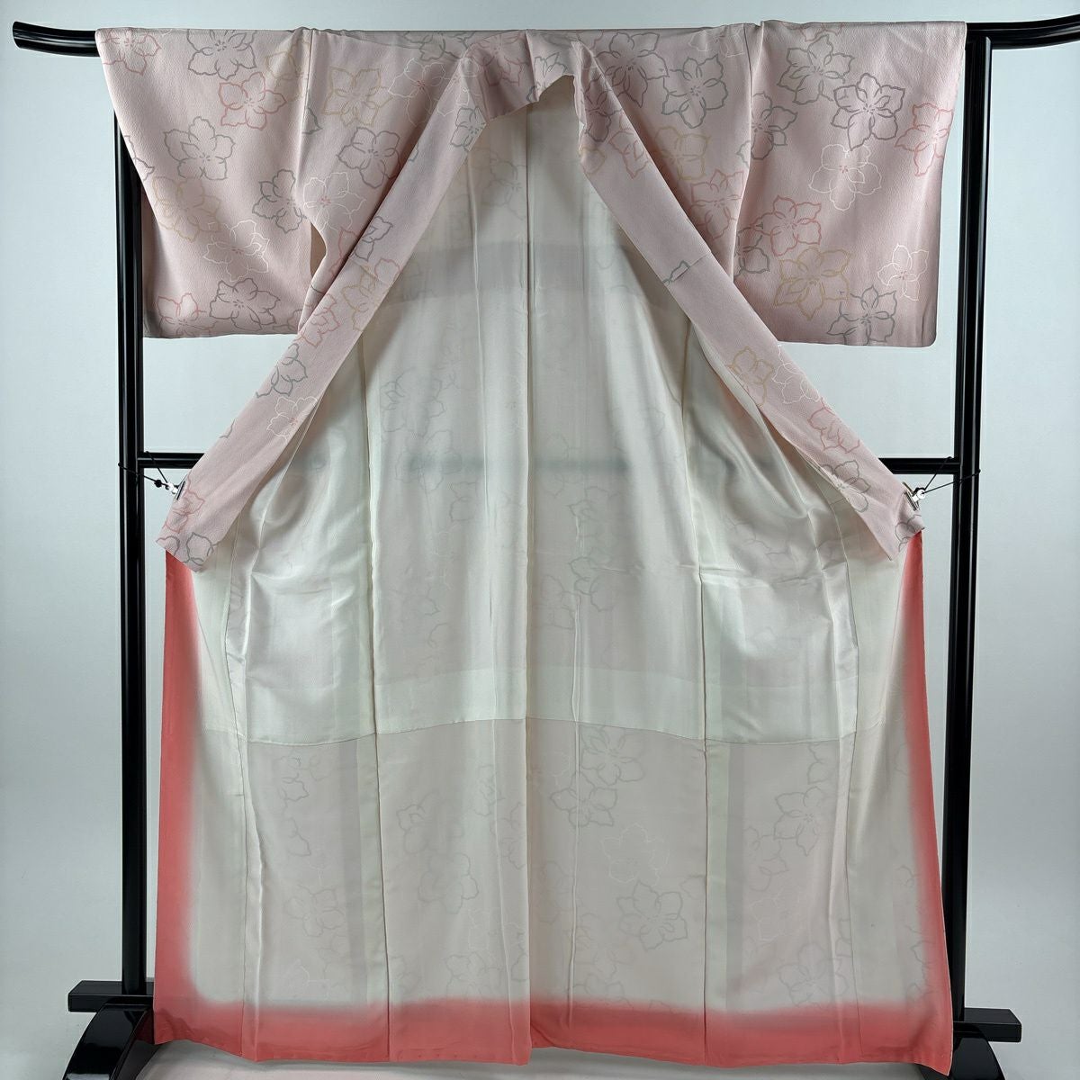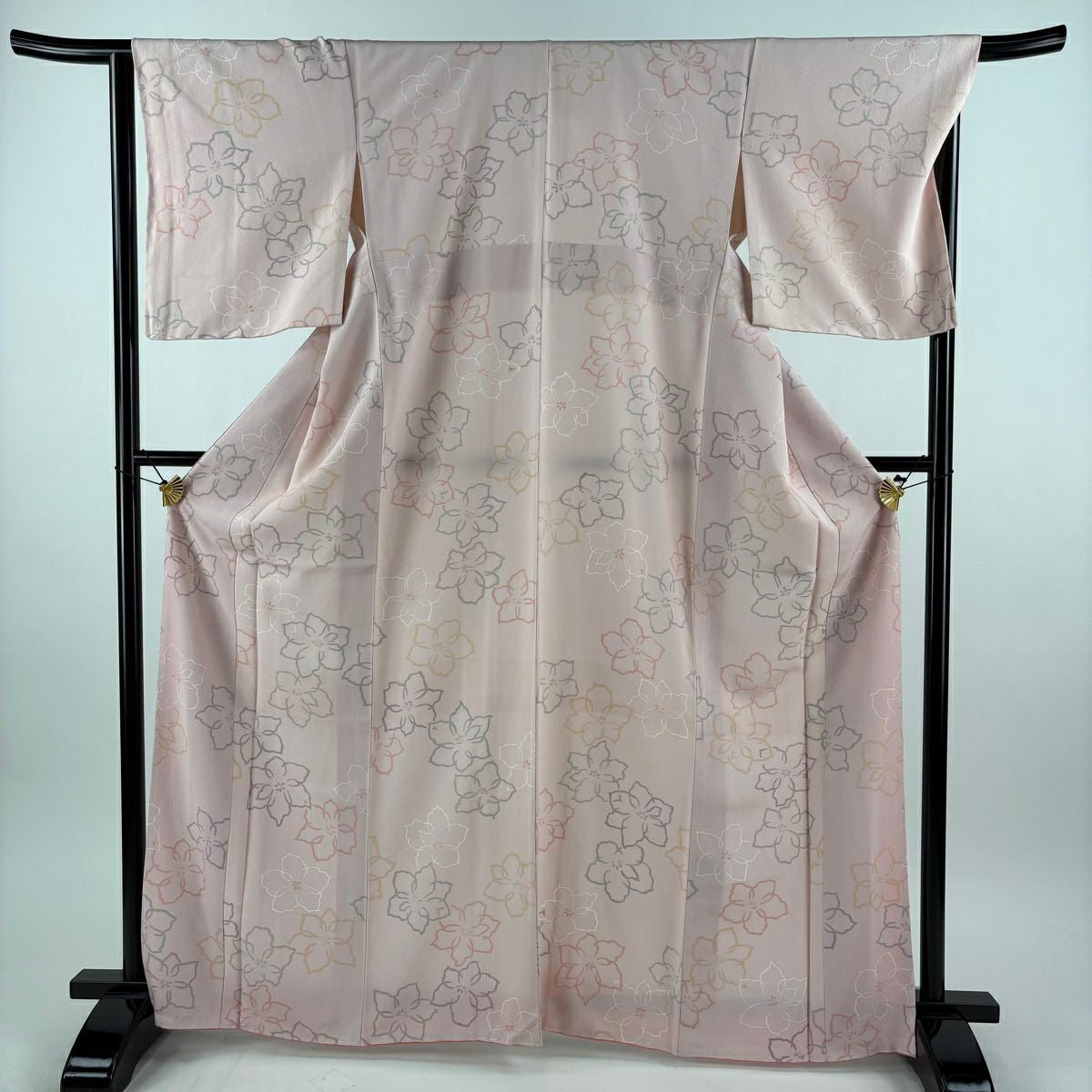30%OFF 【美品】 小紋 身丈166.5cm 裄丈66cm M 袷 花 ピンク 正絹 秀品 K30