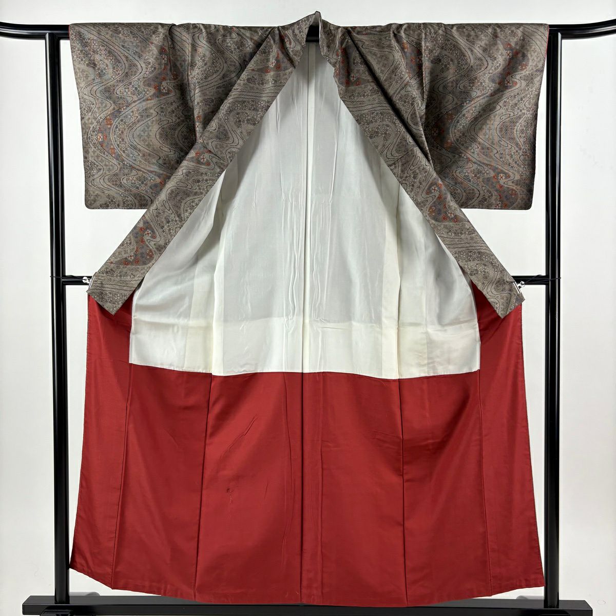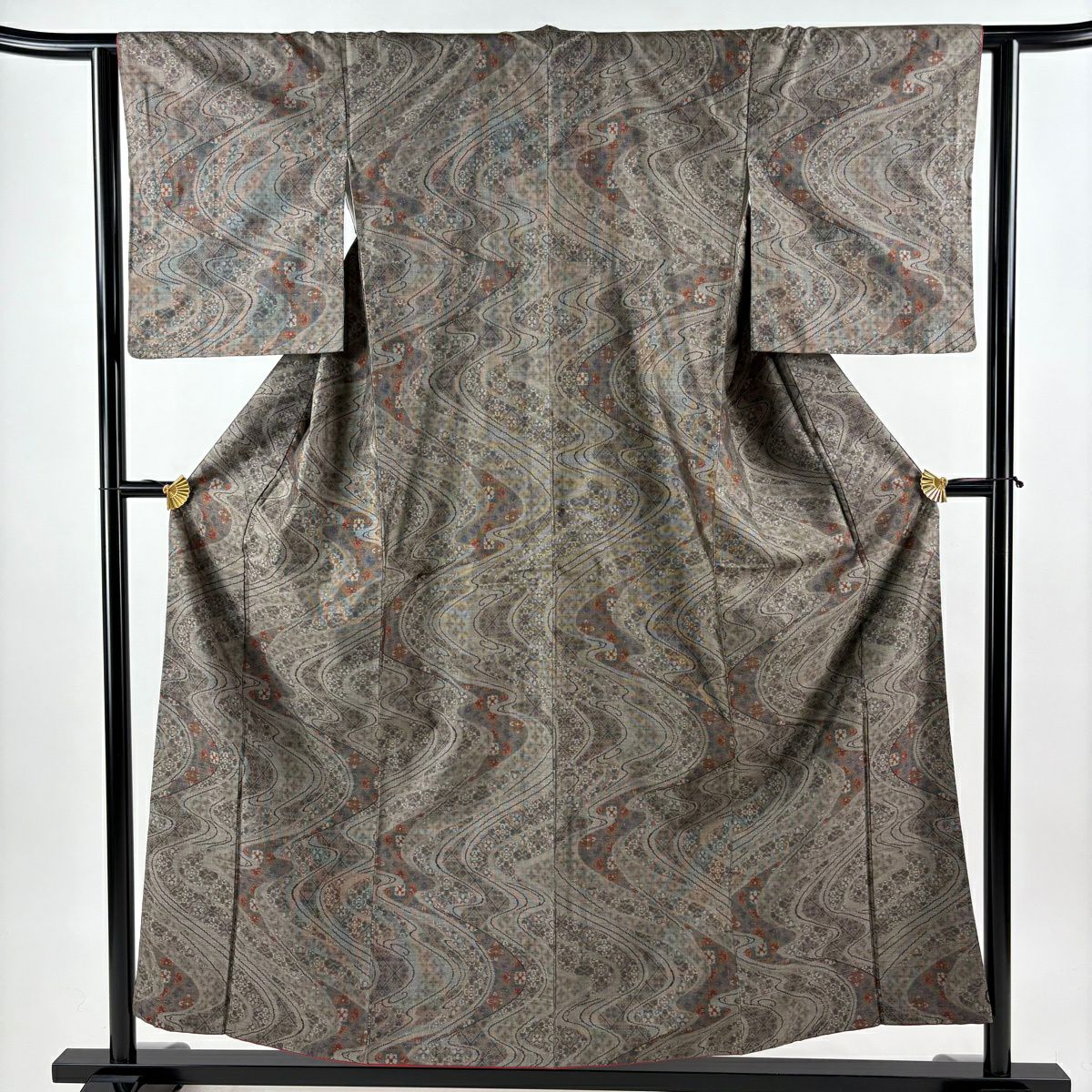 30%OFF 【美品】 付下げ 身丈155cm 裄丈64cm M 袷 流水 鮫 灰茶 正絹 秀品 K30