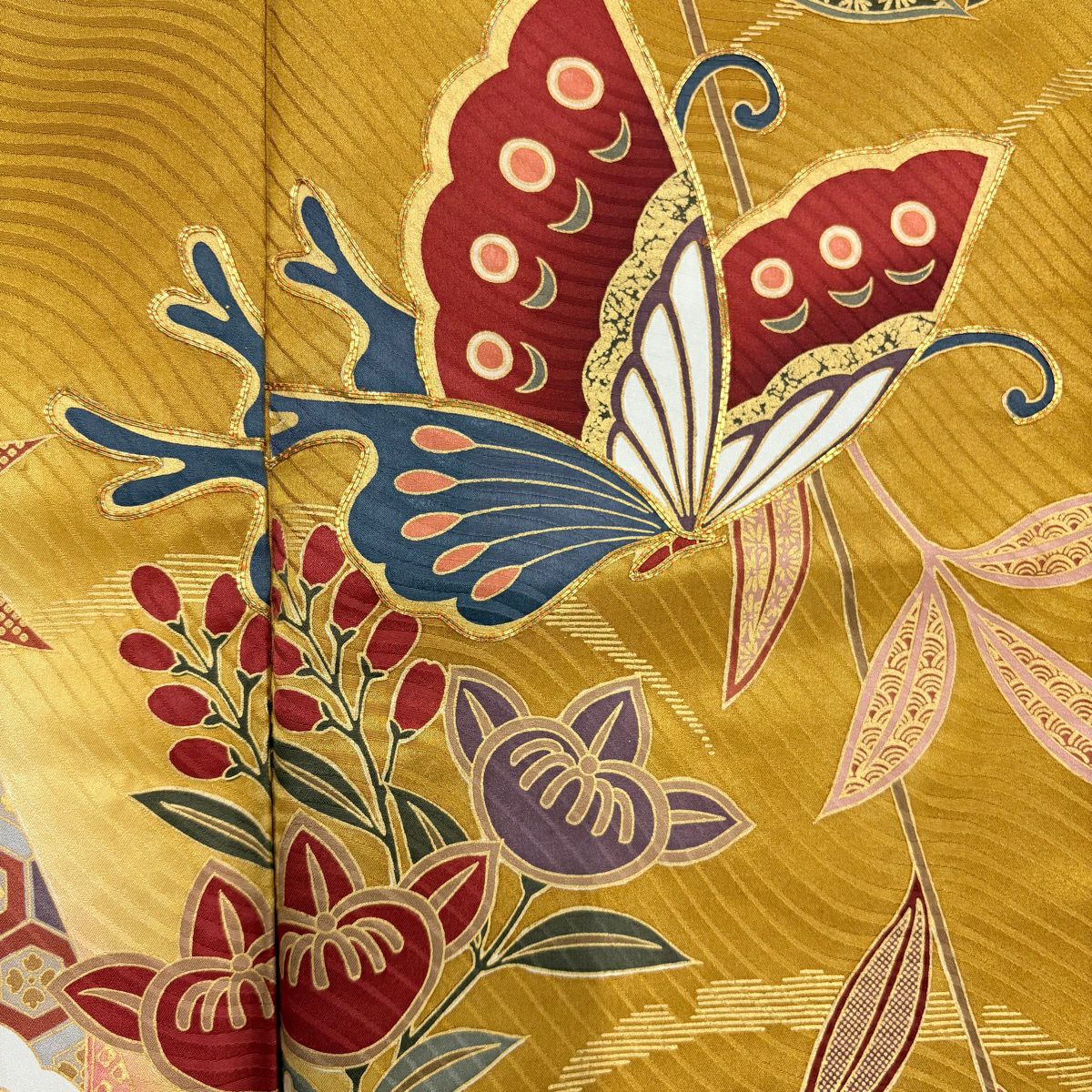 30%OFF 振袖 身丈164cm 裄丈69.5cm L 袷 鞠 折鶴 金糸 金彩 赤 正絹 秀品 K30