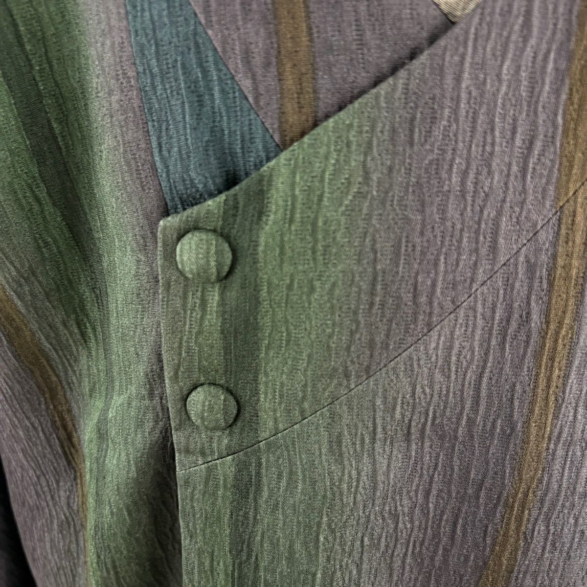 30%OFF 小紋 身丈162cm 裄丈66.5cm M 袷 紬地 草花 縦縞 灰緑 正絹 秀品 K30