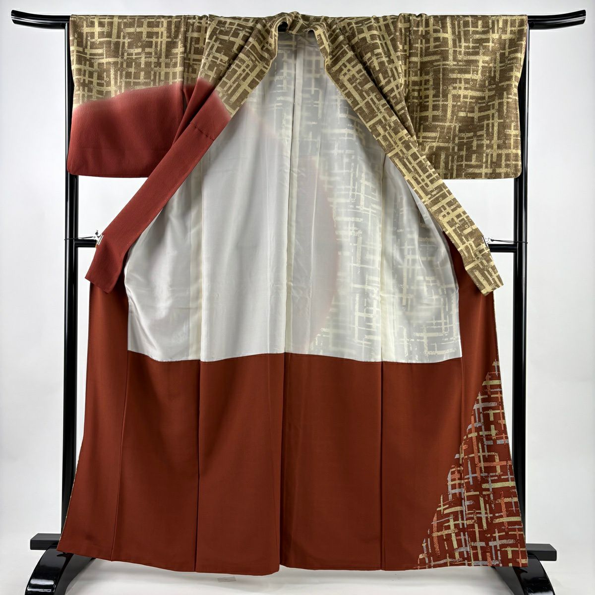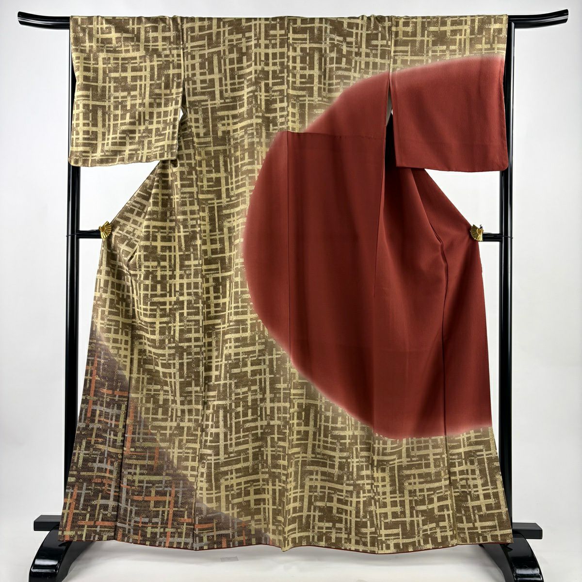 30%OFF 付下げ 身丈158cm 裄丈66cm M 袷 紬地 源氏香 金彩 赤茶 正絹 秀品 K30