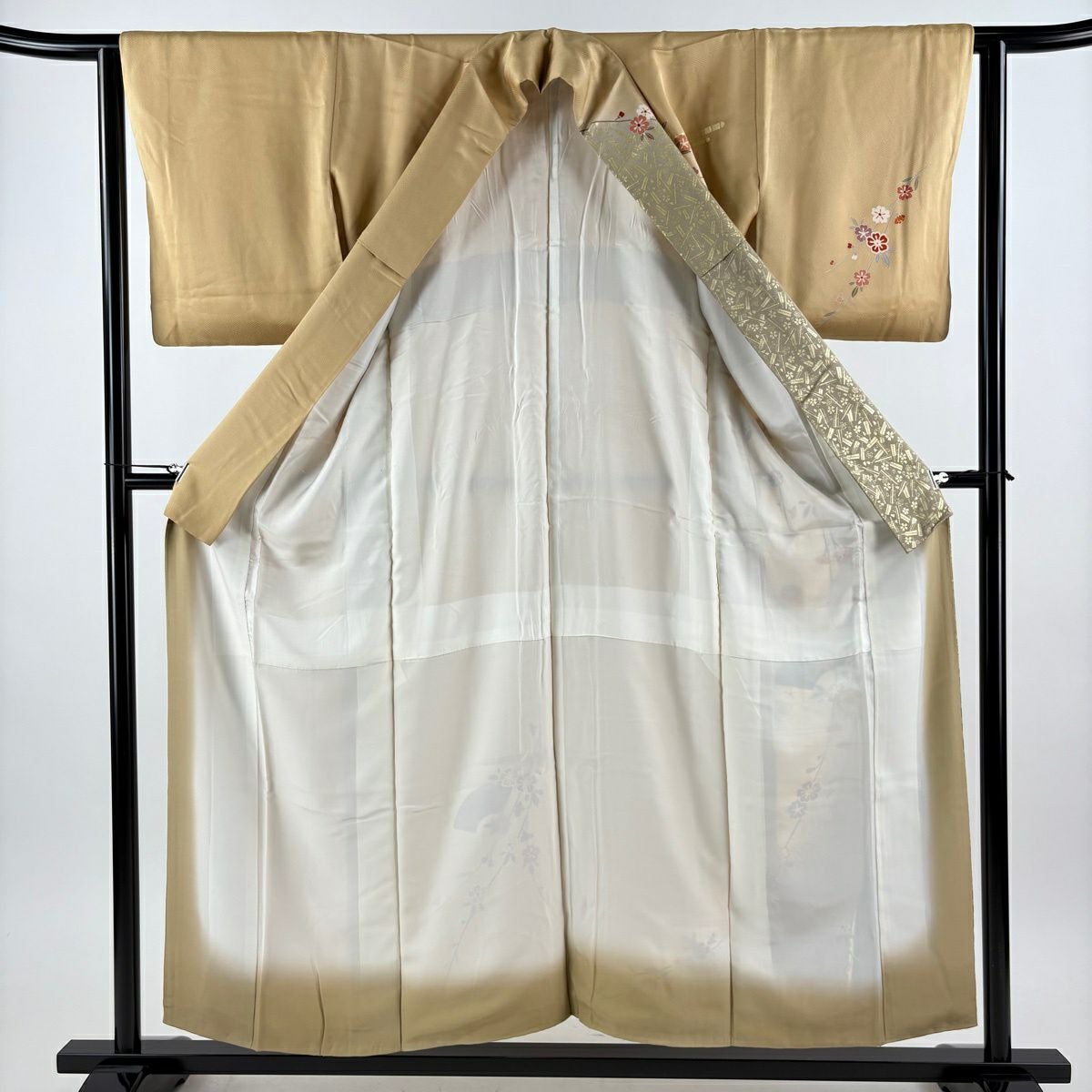 30%OFF 訪問着 身丈160cm 裄丈64cm M 袷 波 花唐草 ベージュ 正絹 秀品 K30
