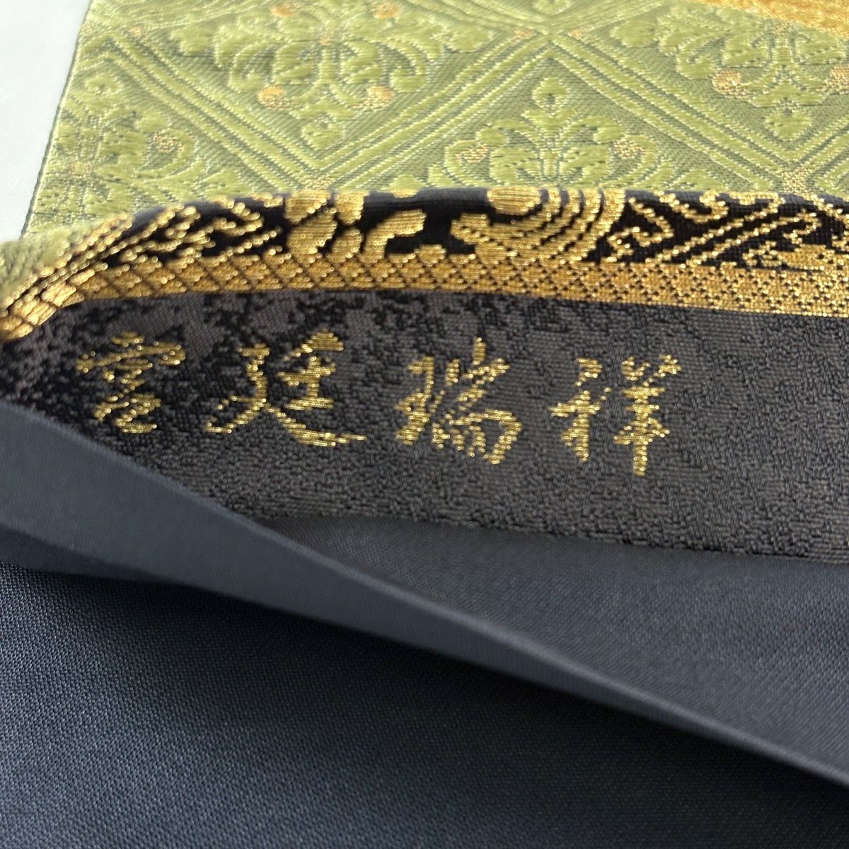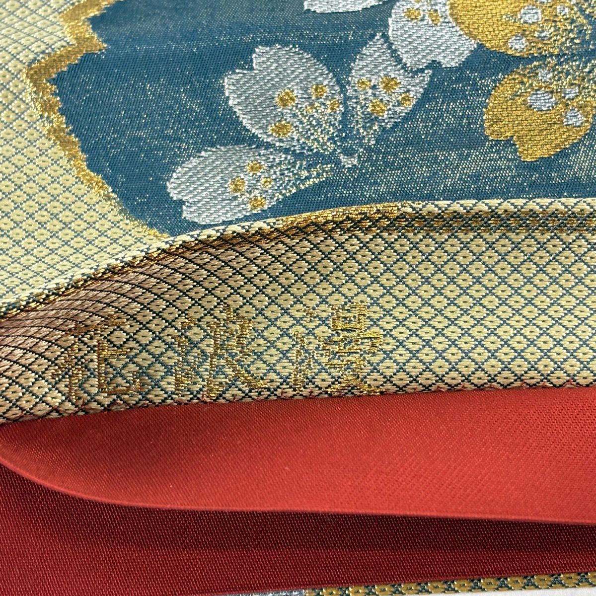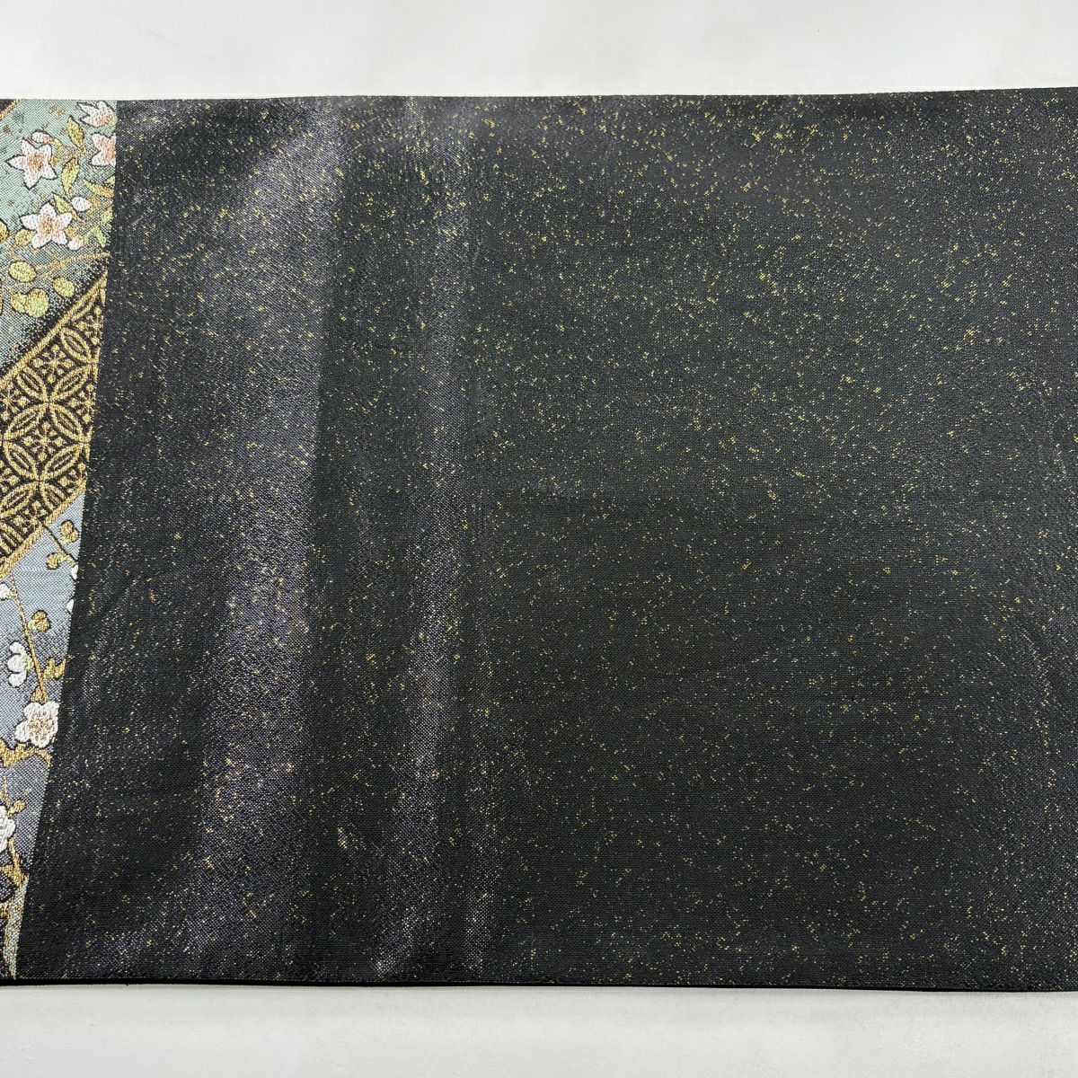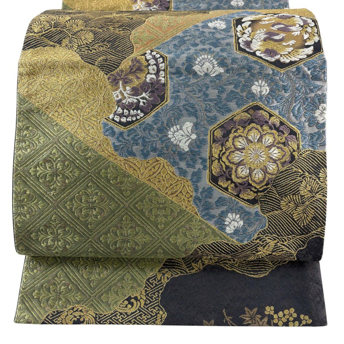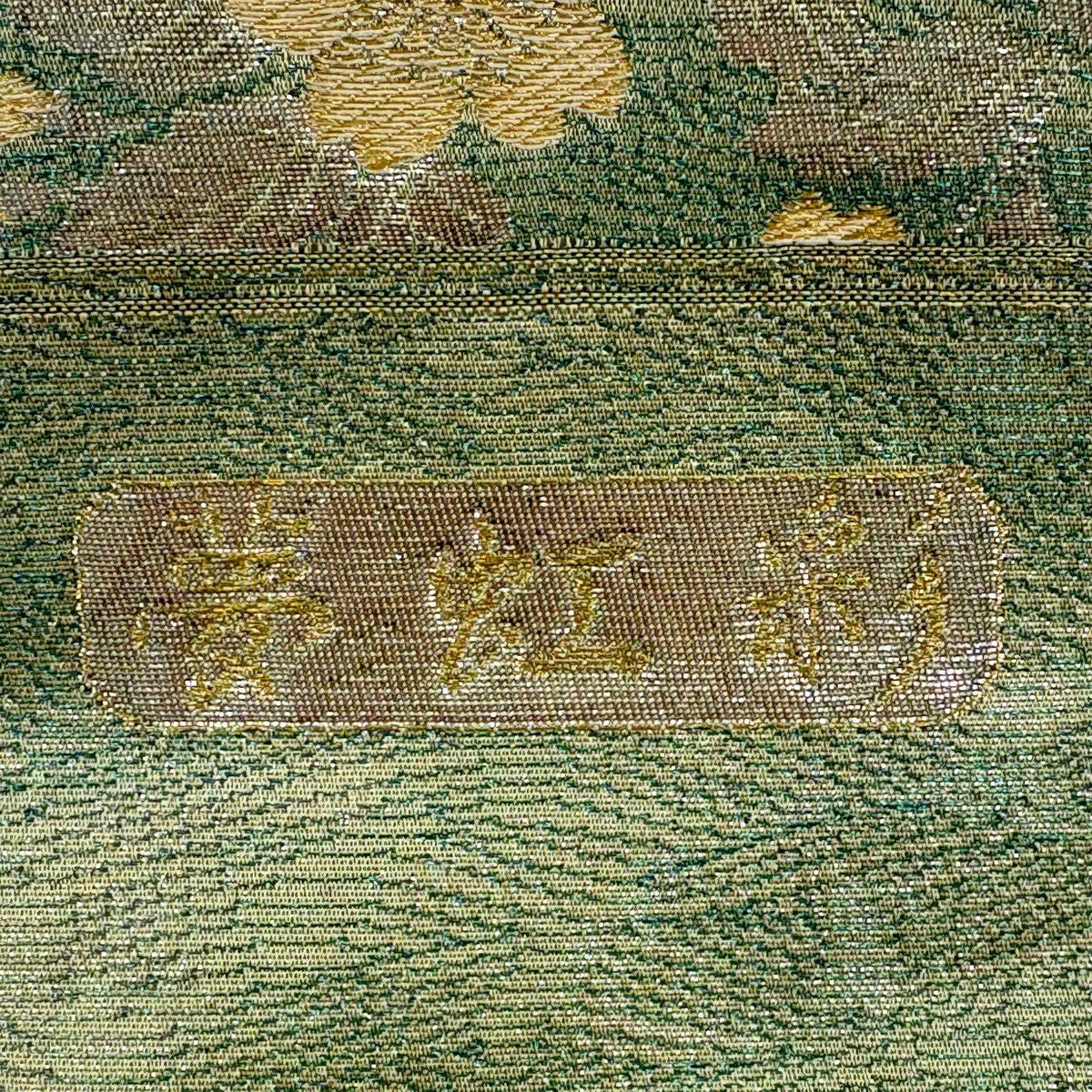 袋帯 秀品 華文 雲文 螺鈿 金糸 灰緑 お太鼓柄 正絹
