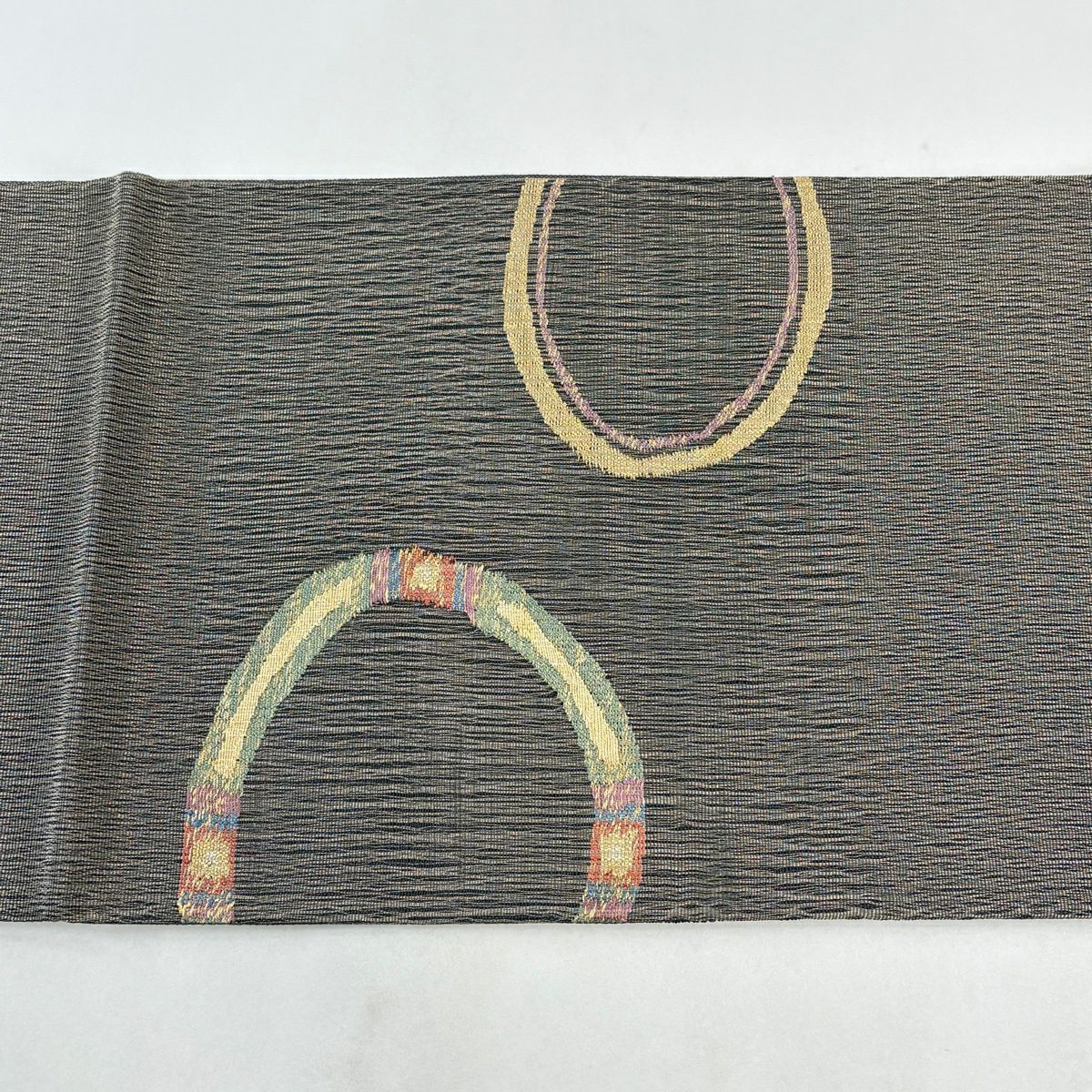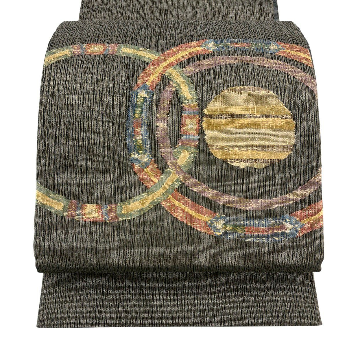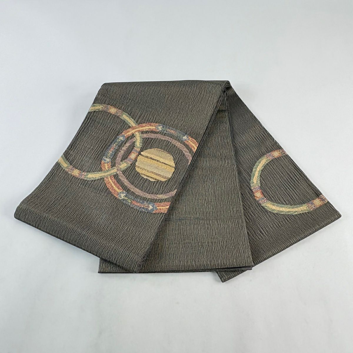 【美品】 袋帯 秀品 輪 箔 金糸 灰色 お太鼓柄 正絹