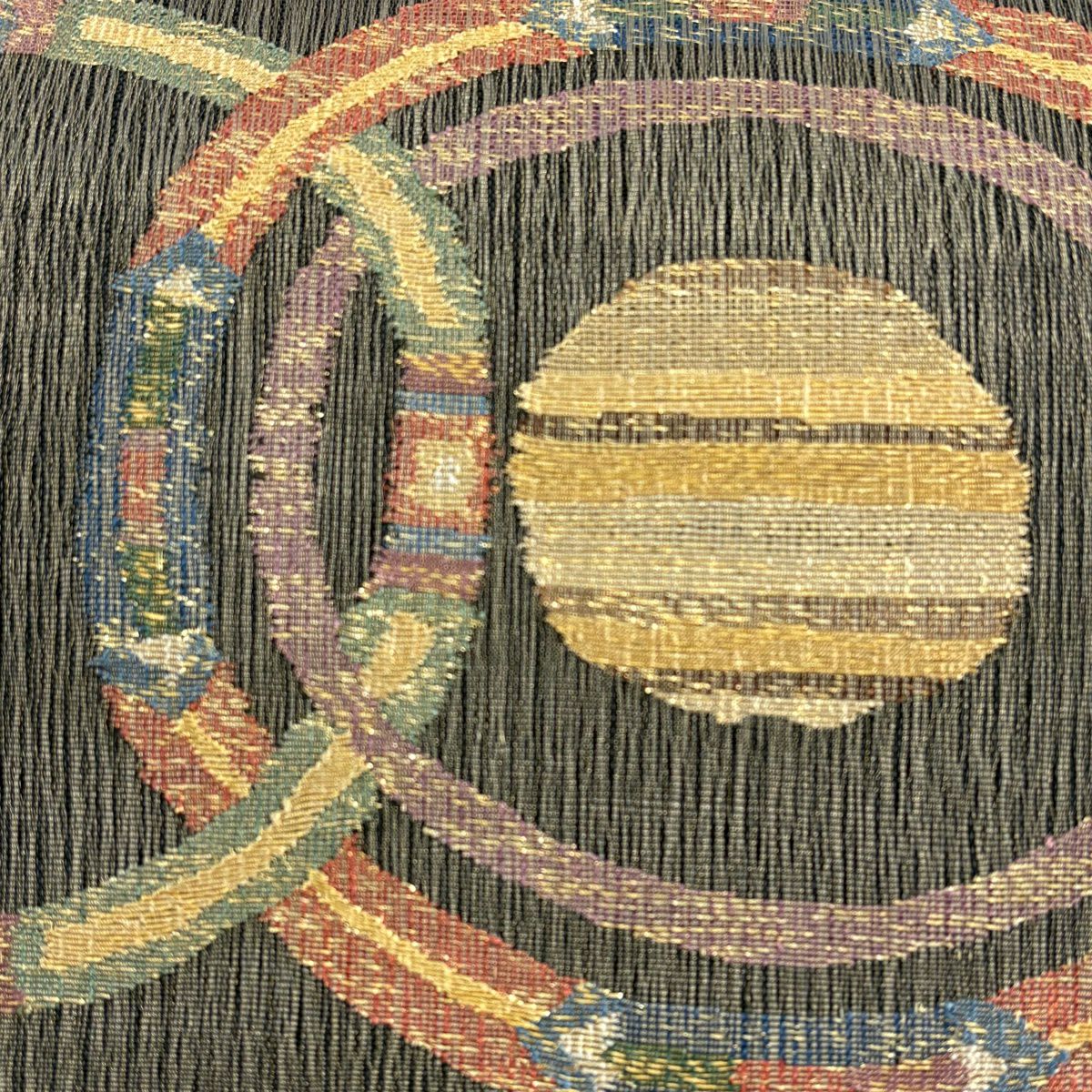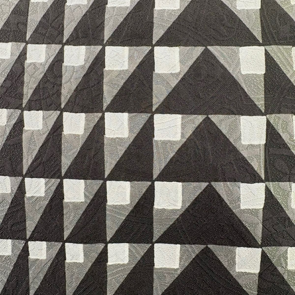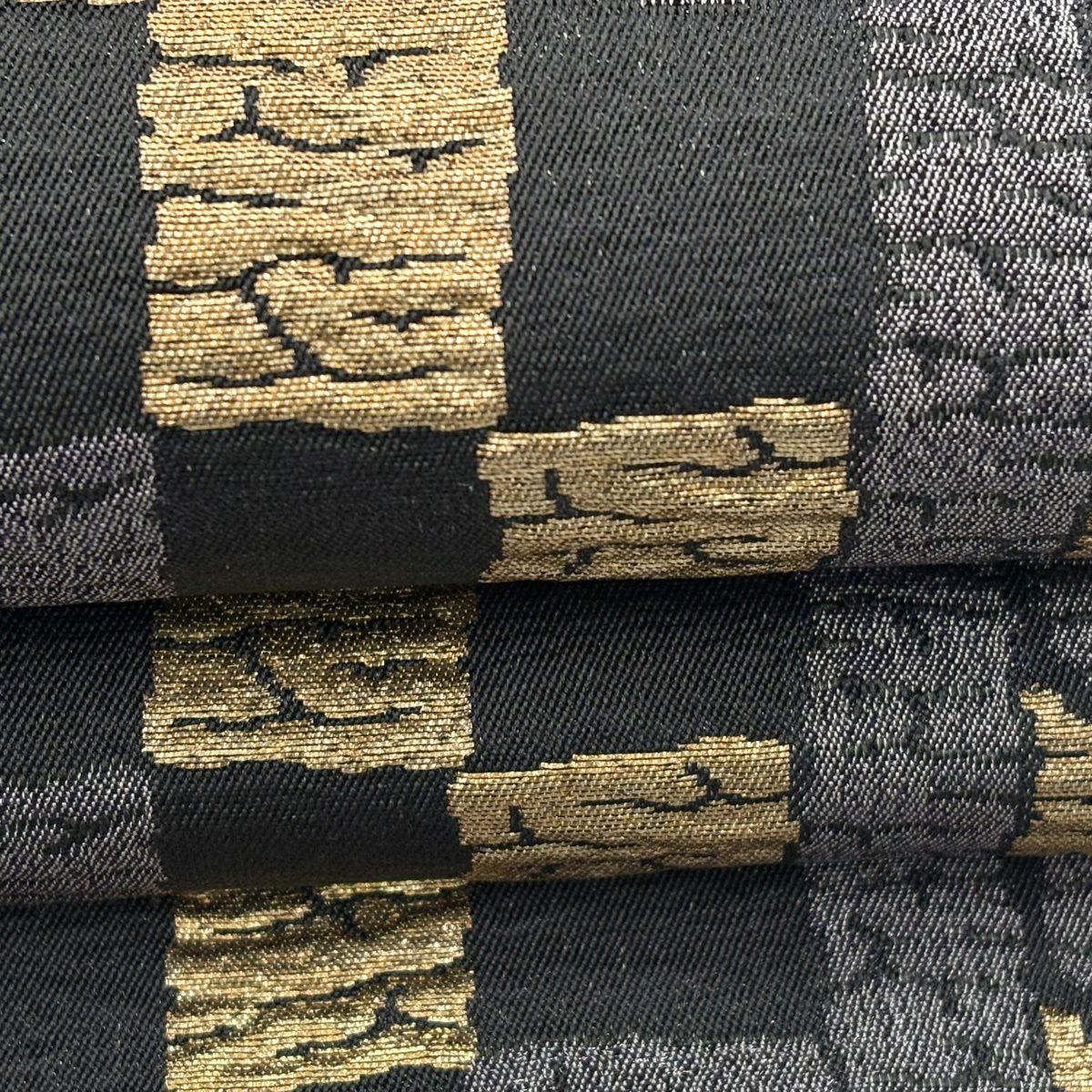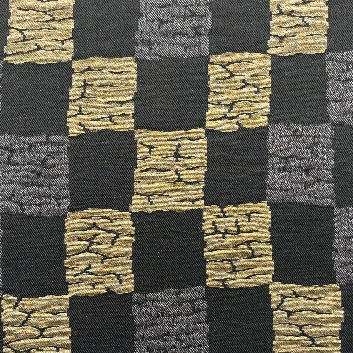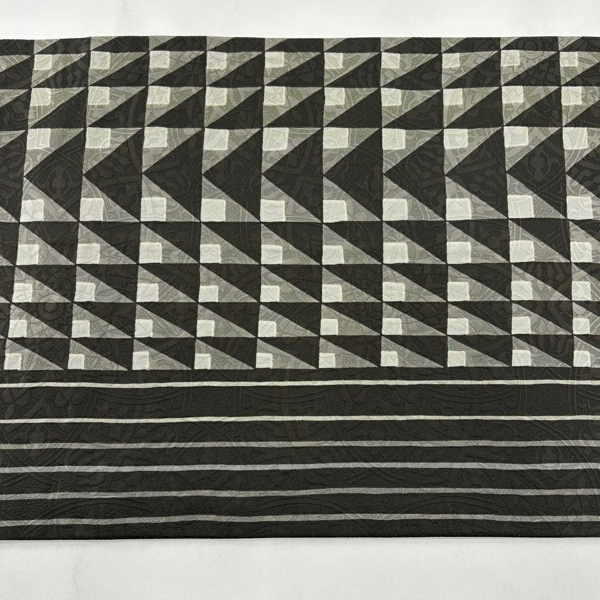 袋帯 秀品 市松 幾何学模様 銀通し 箔 黒 六通 正絹