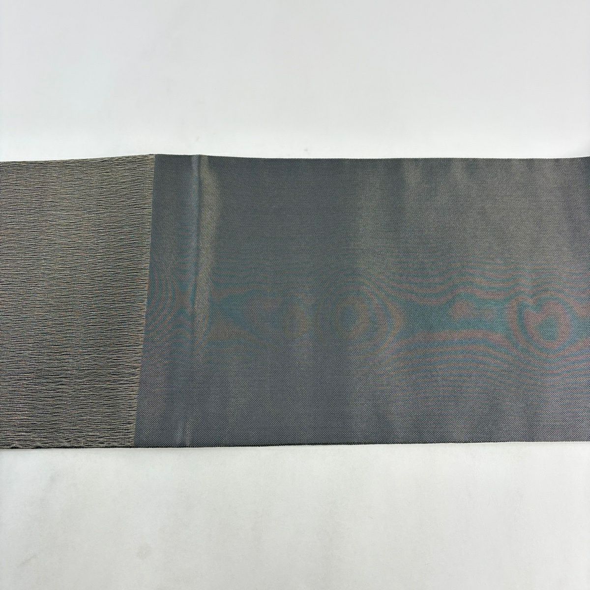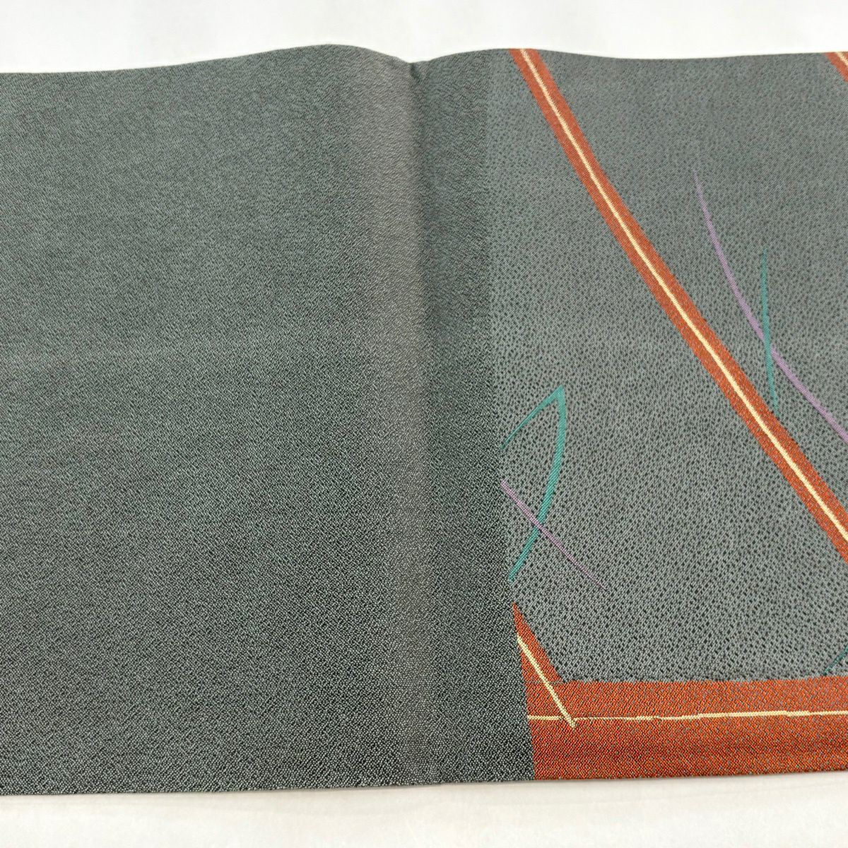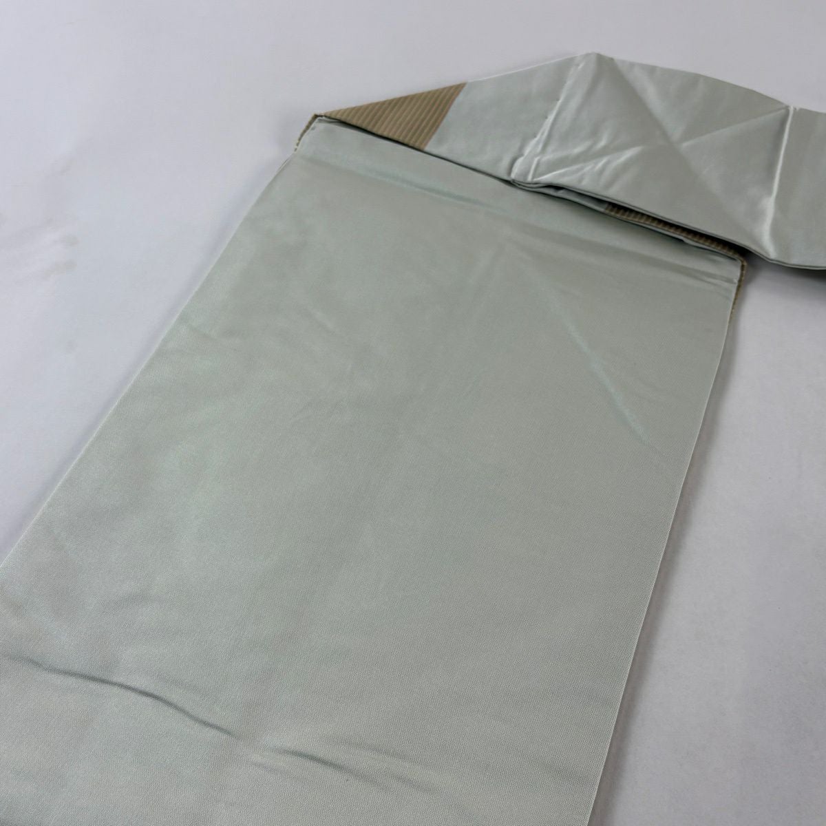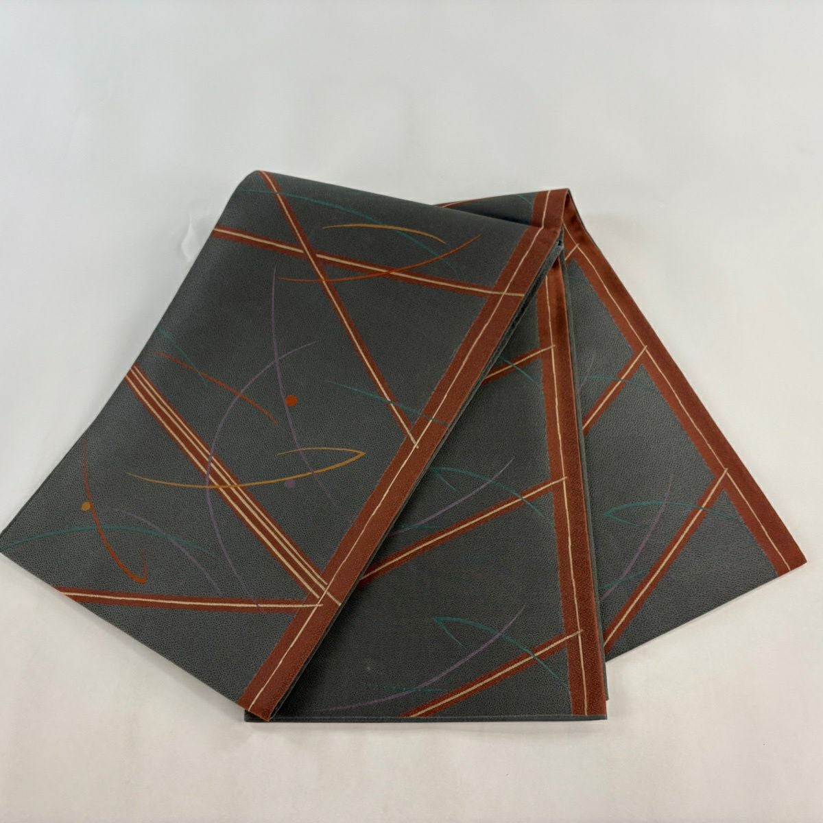 【美品】 名古屋帯 秀品 八寸名古屋帯 幾何学模様 灰緑 正絹