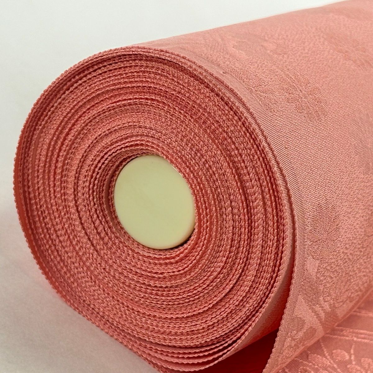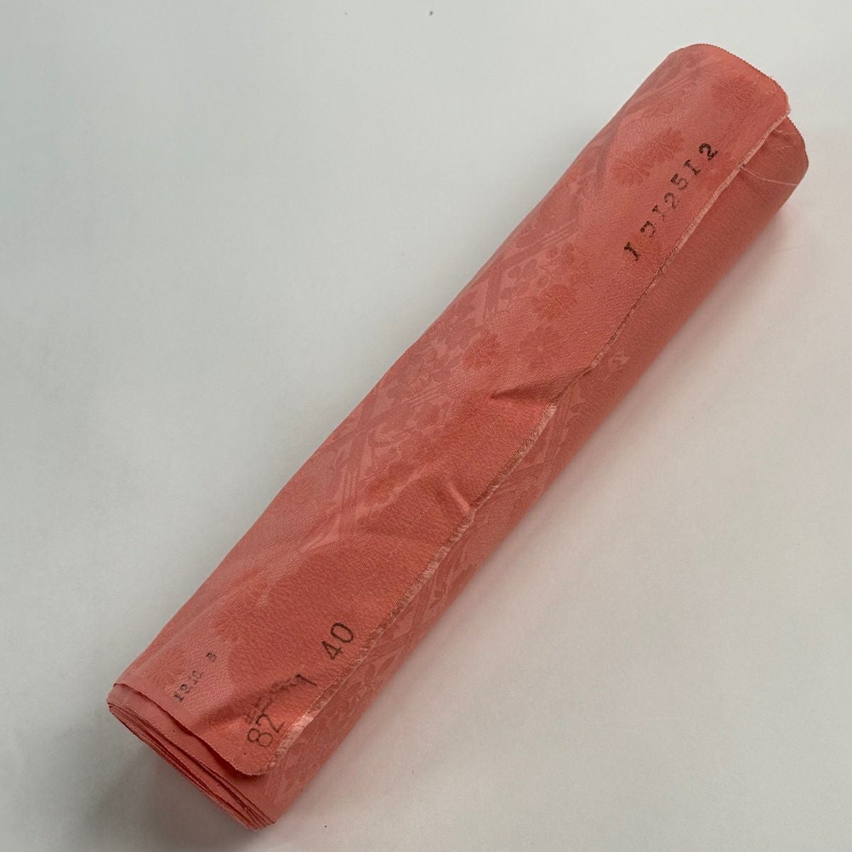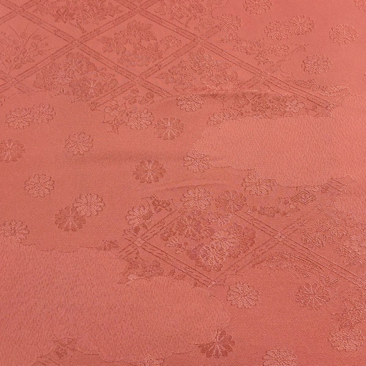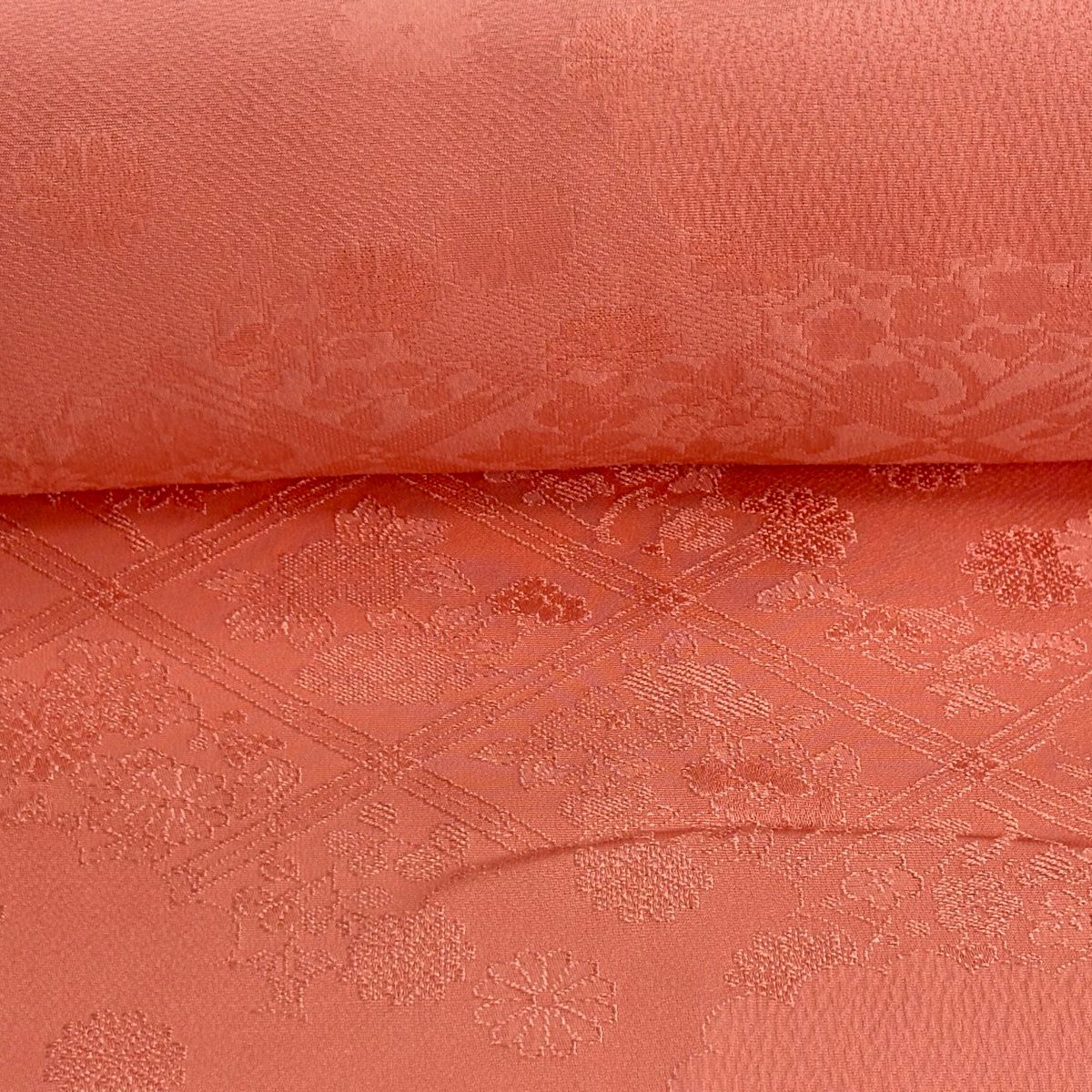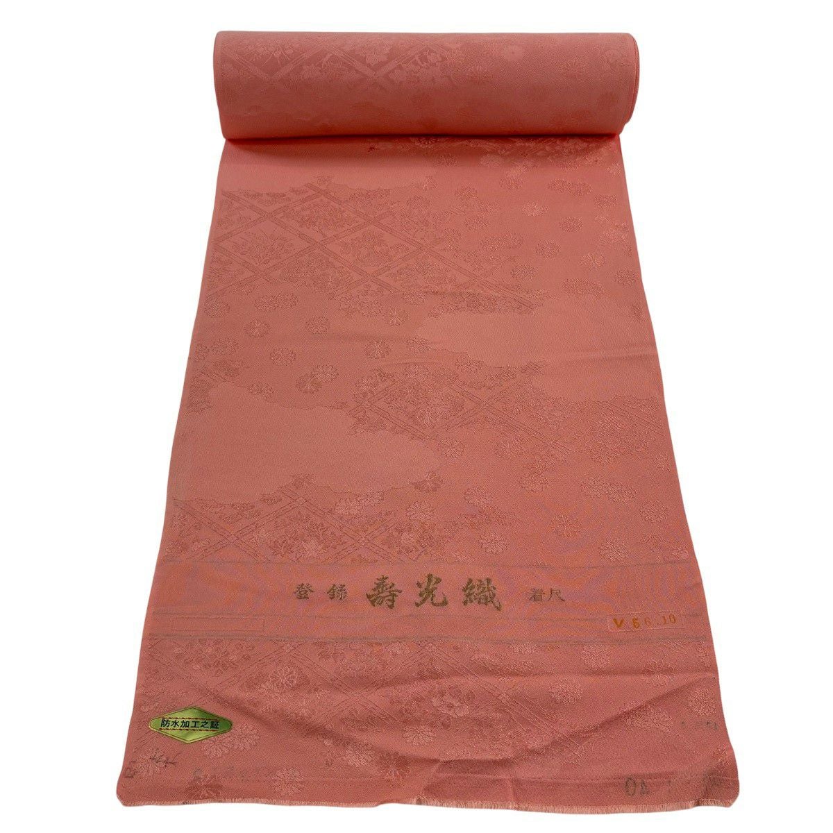 反物 秀品 色無地 地紋 壽光織 サーモンピンク 正絹
