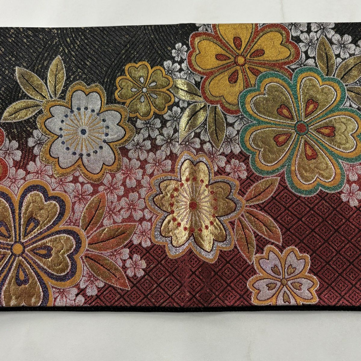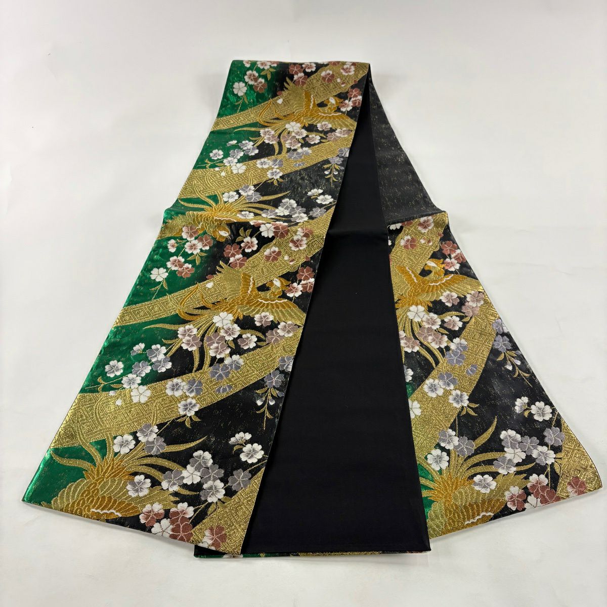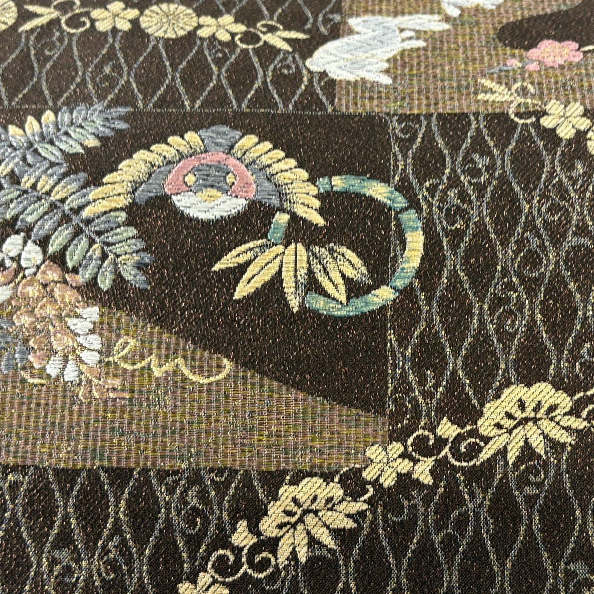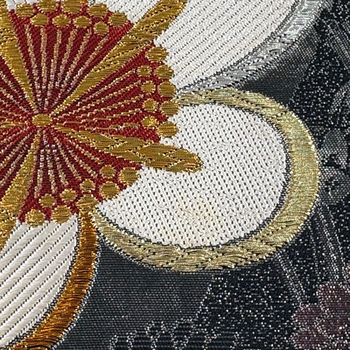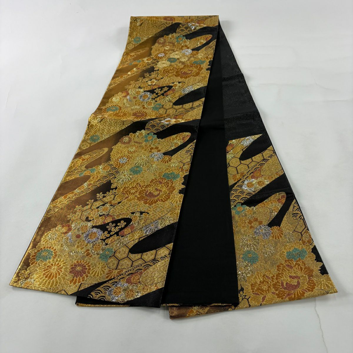 【美品】 袋帯 秀品 花鳥 菱 金糸 箔 黒 六通 正絹