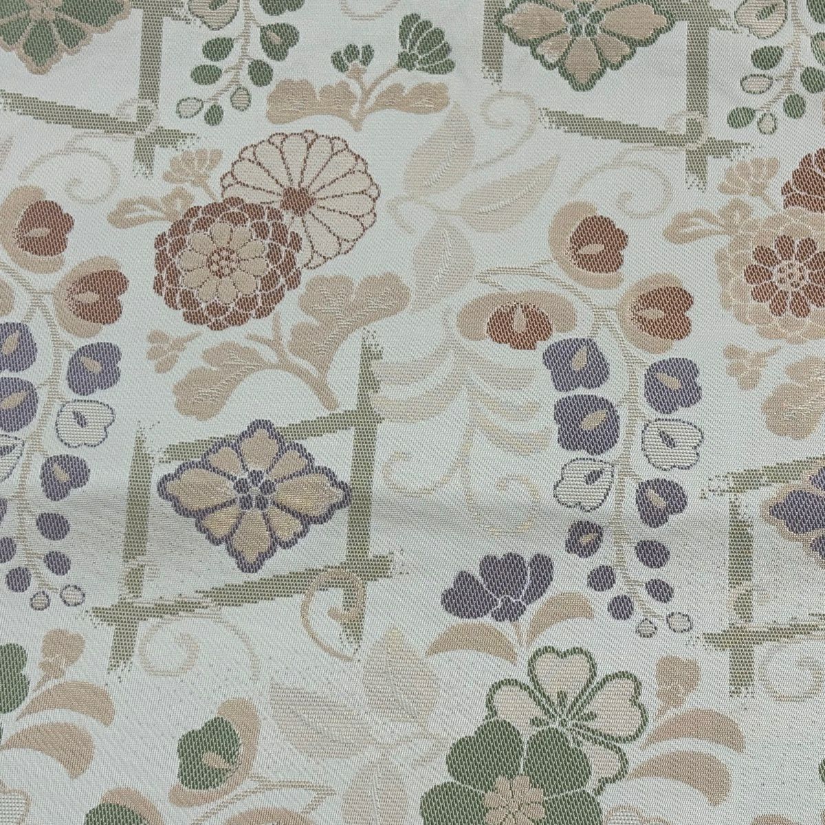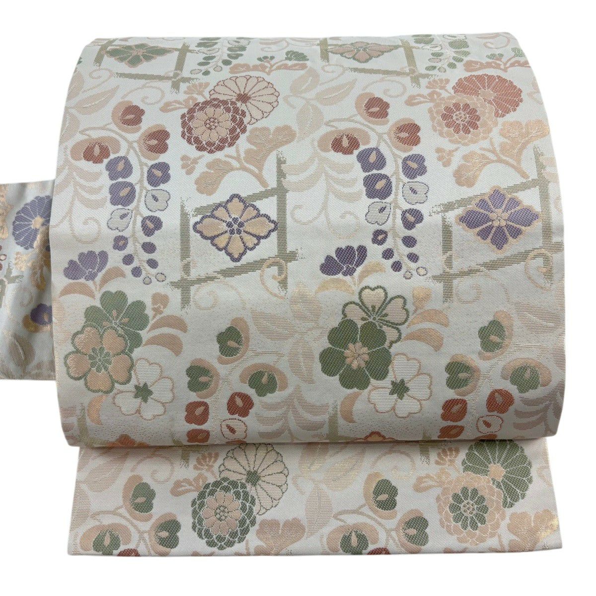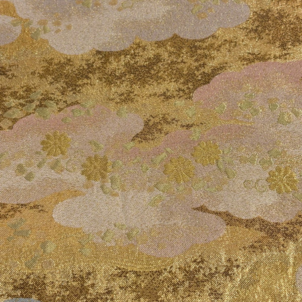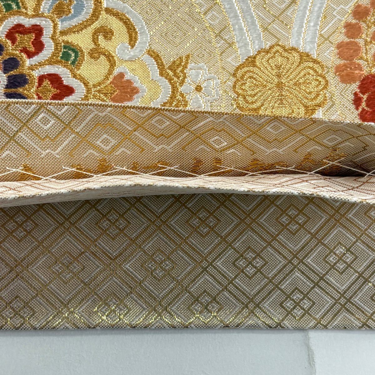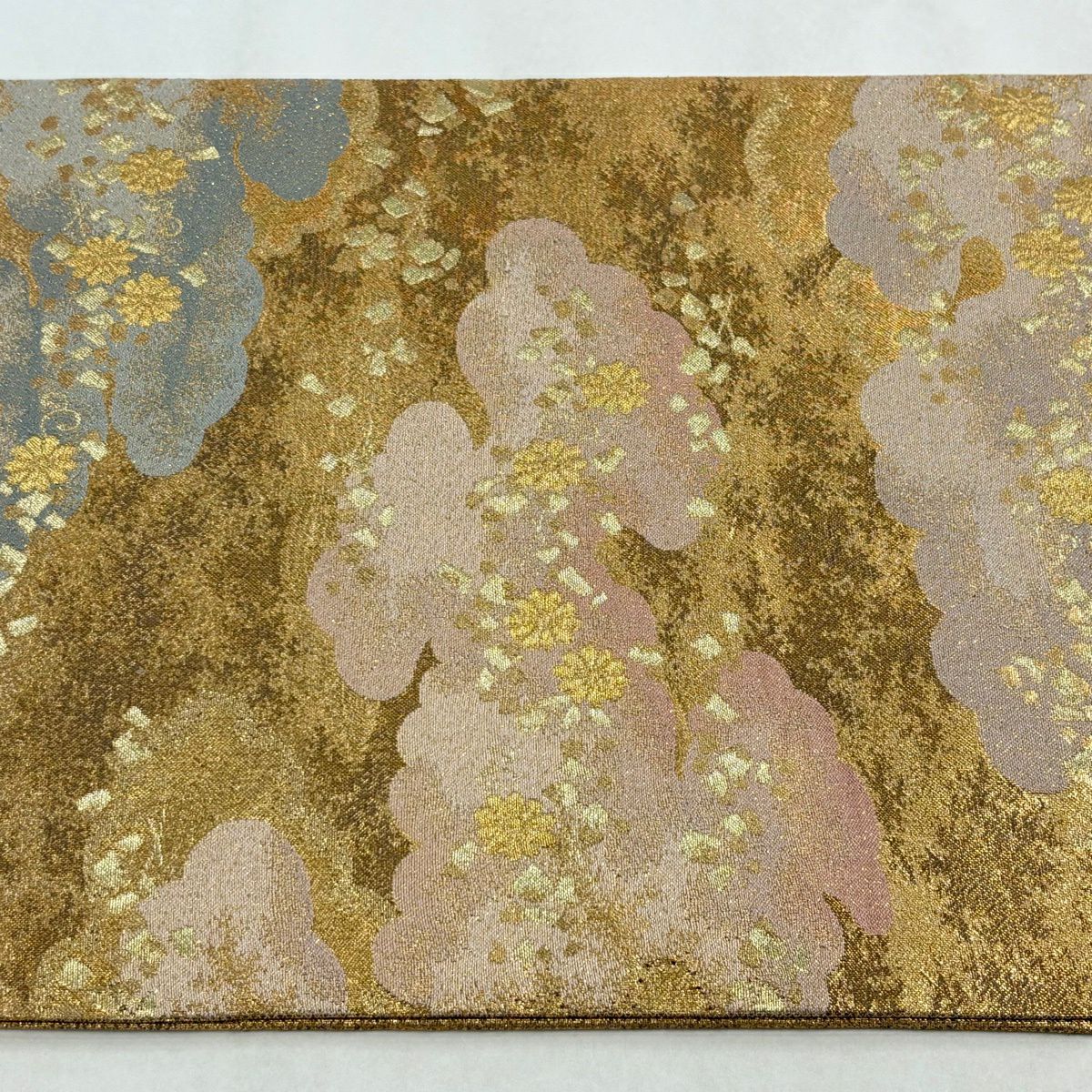 袋帯 秀品 霞 幾何学模様 箔 ベージュ 六通 正絹