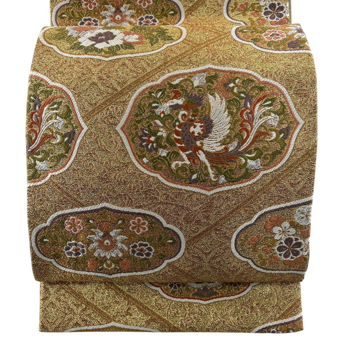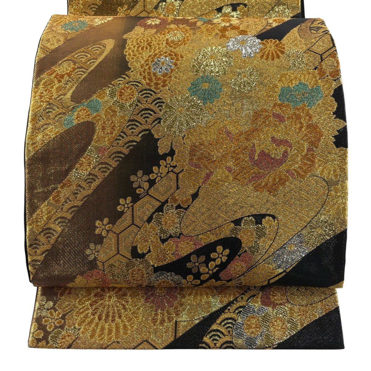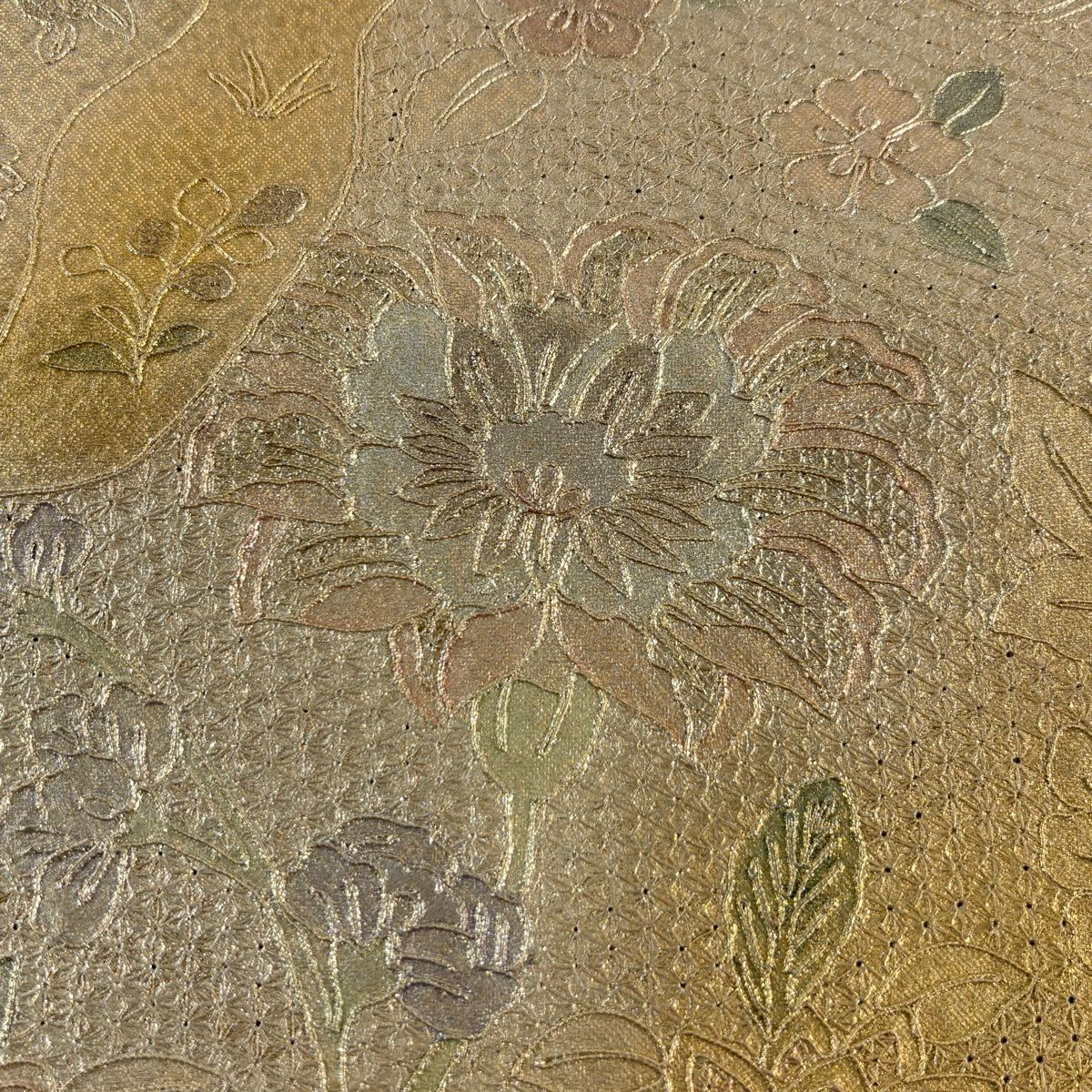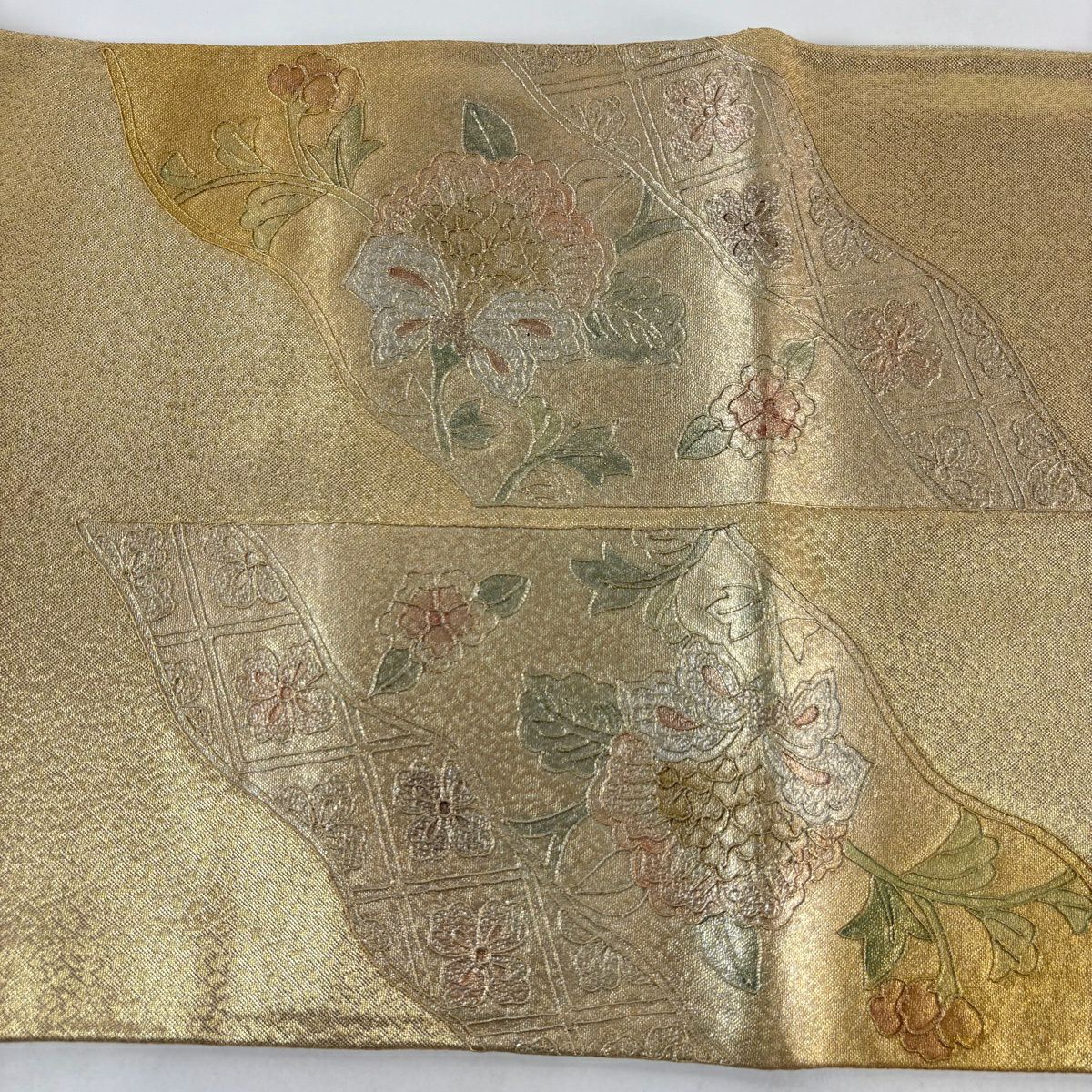 【美品】 袋帯 秀品 花 籠目 金糸 箔 金色 六通 正絹