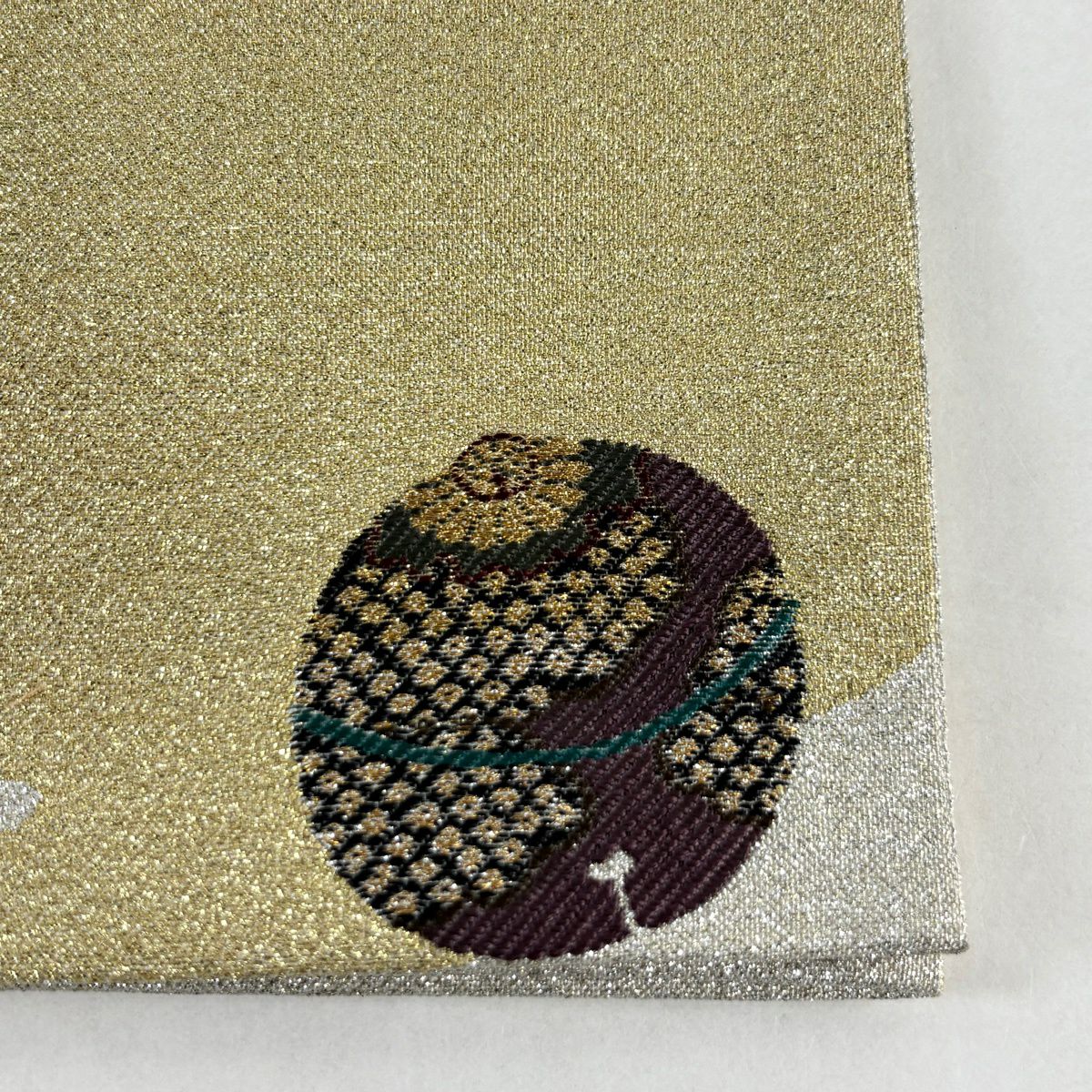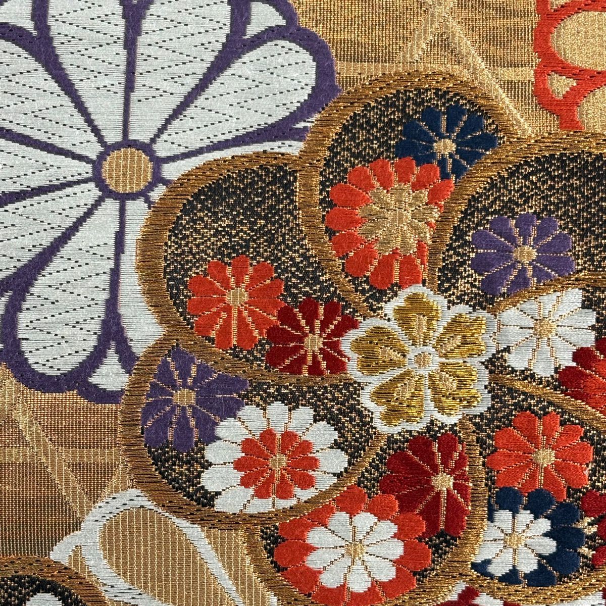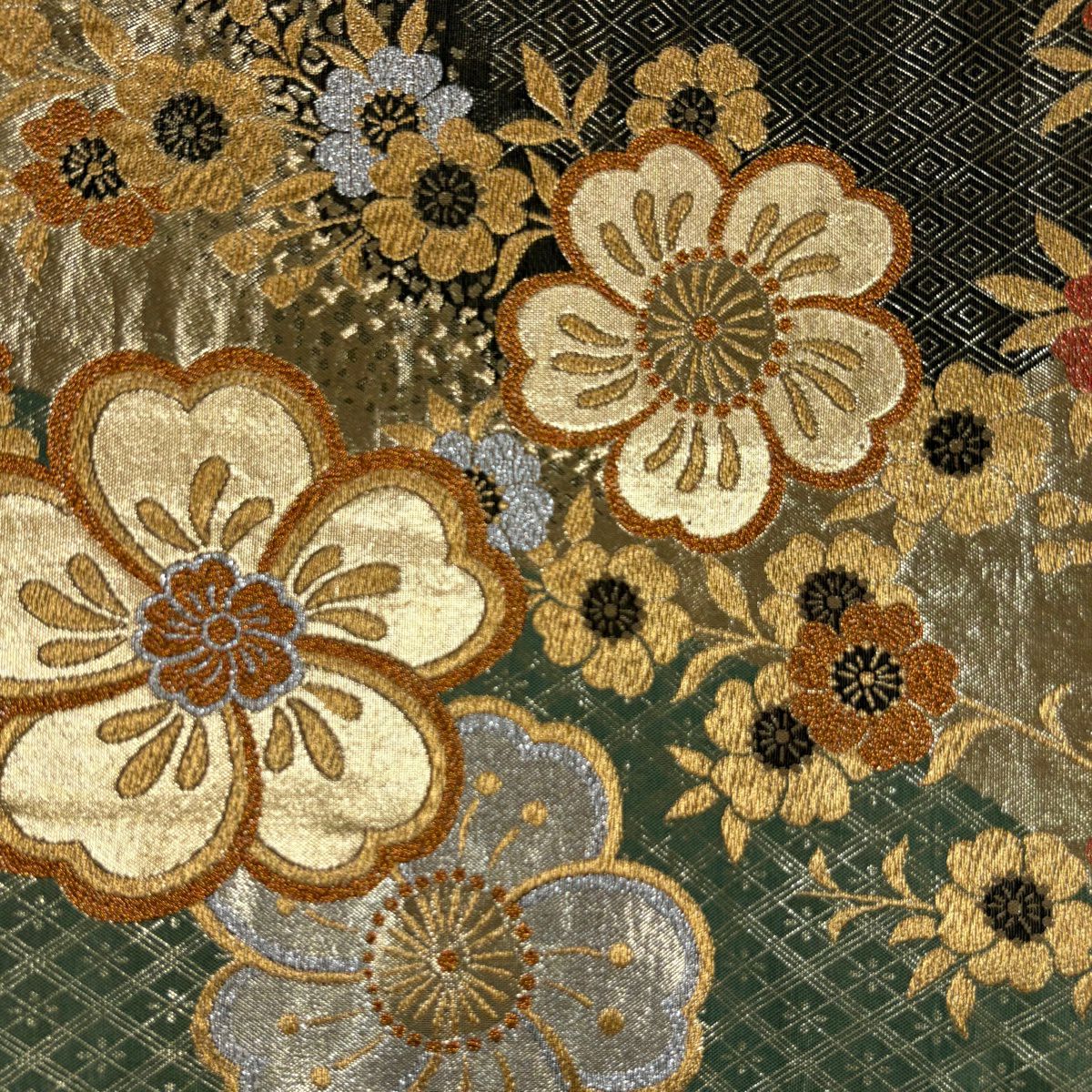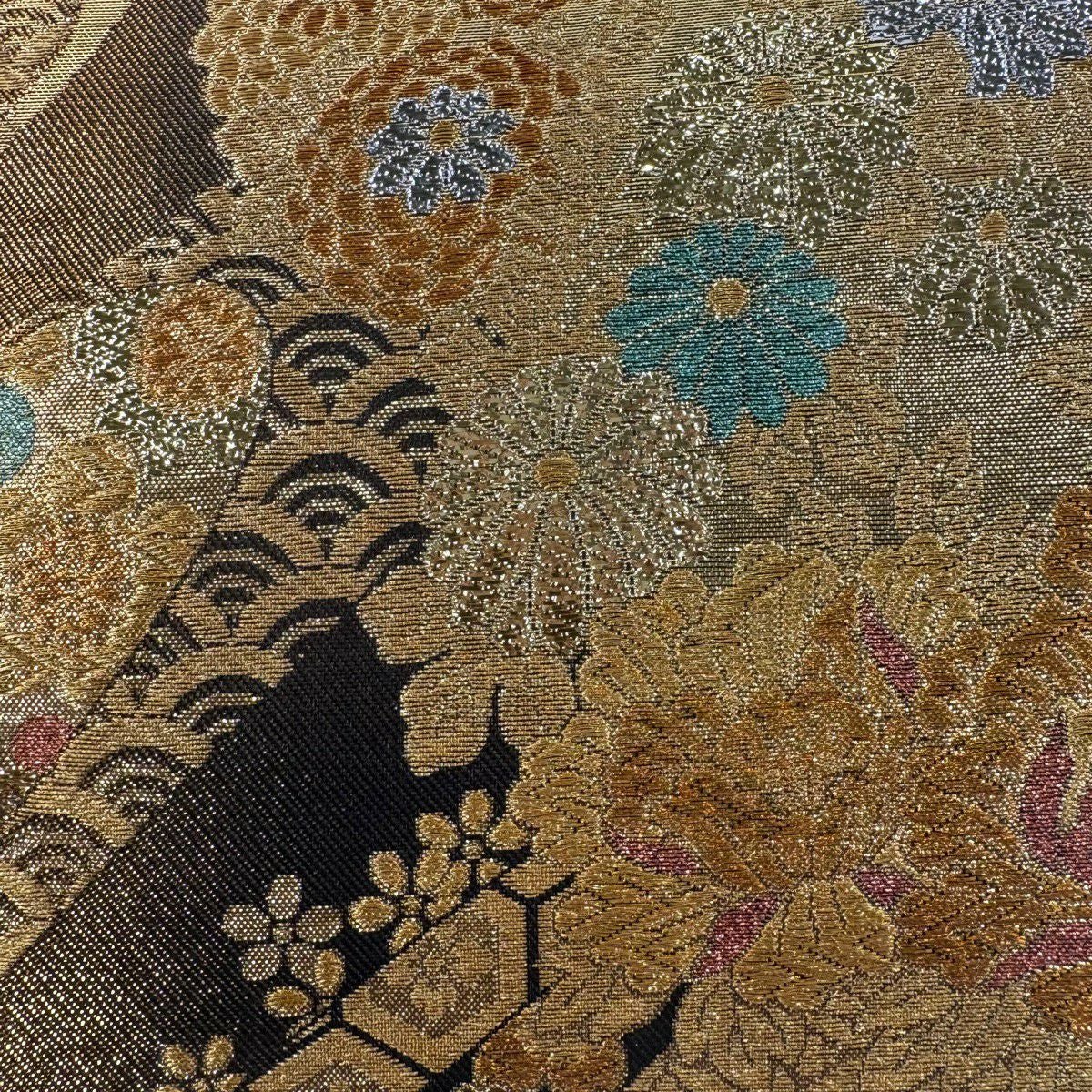 【美品】 袋帯 秀品 花 籠目 金糸 箔 金色 六通 正絹