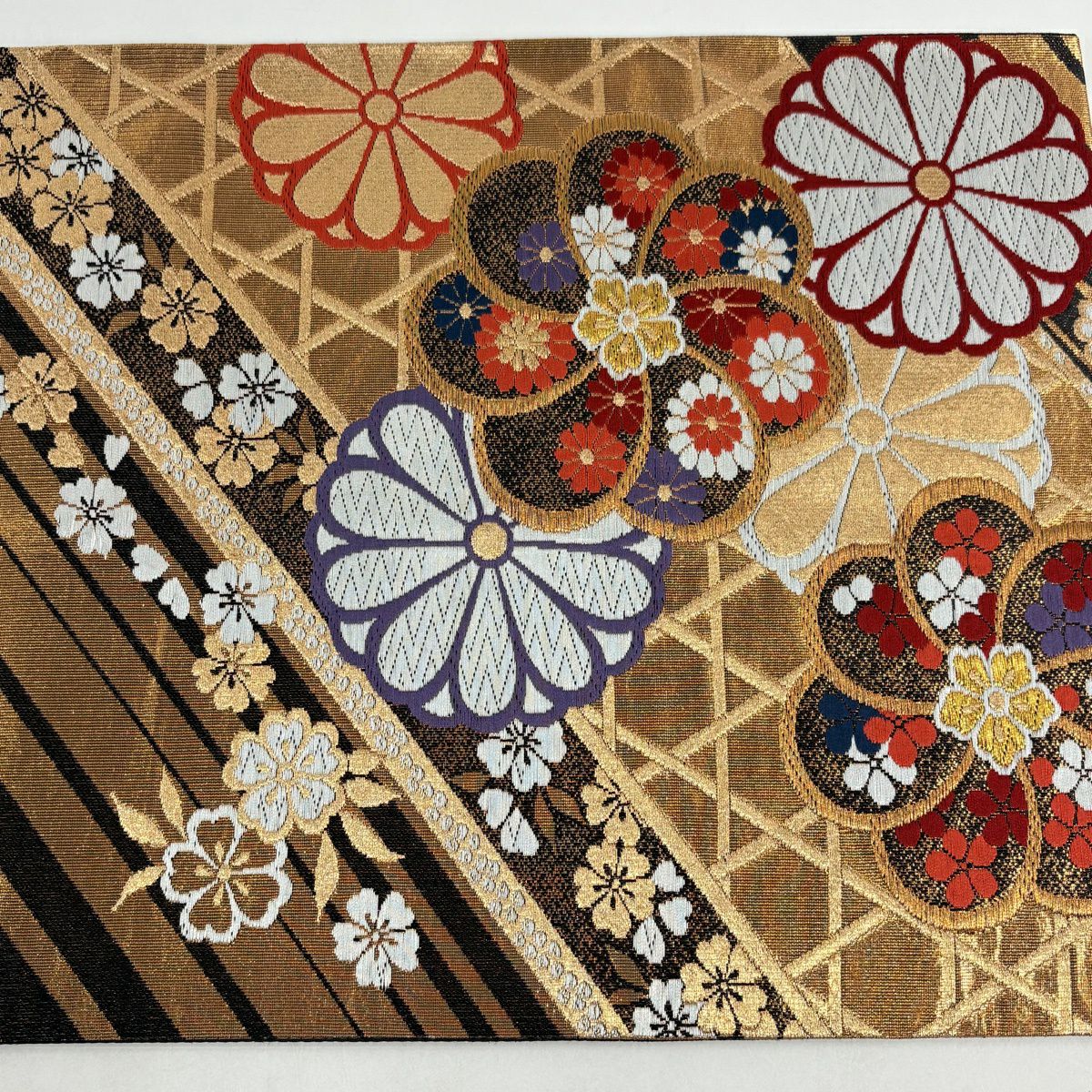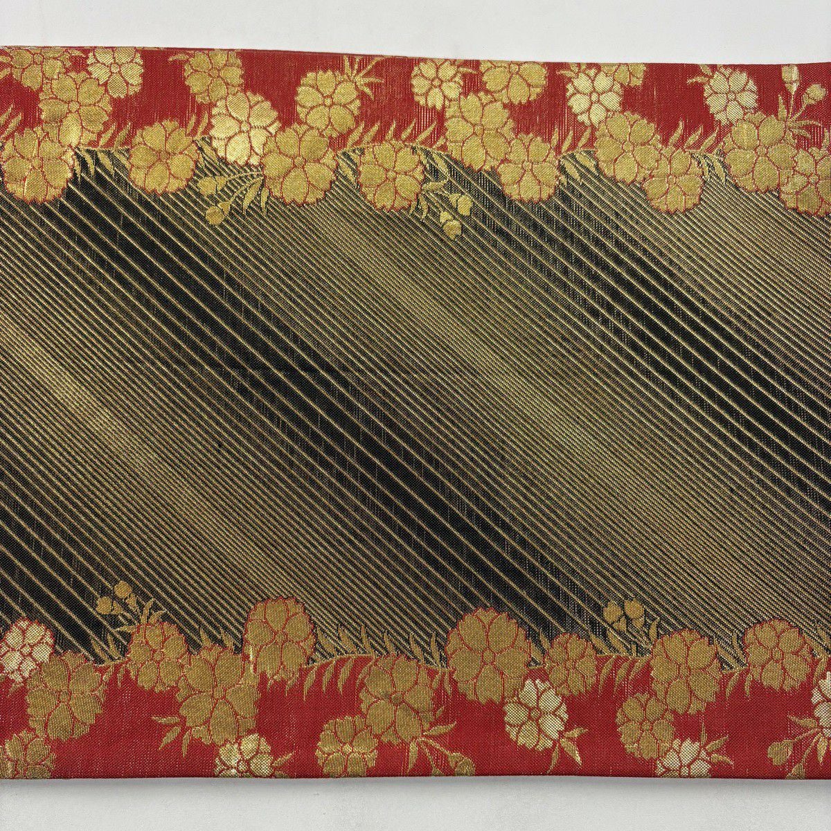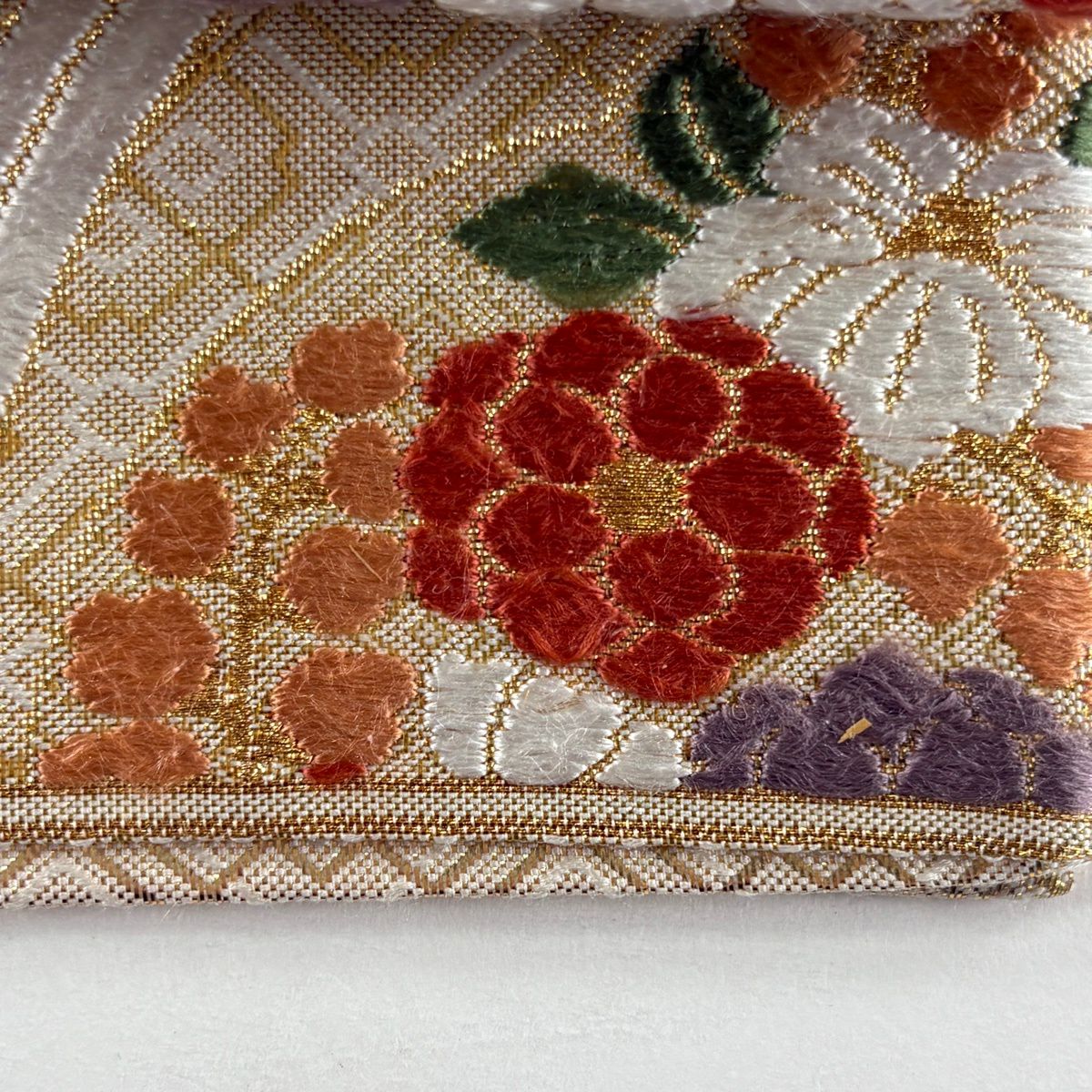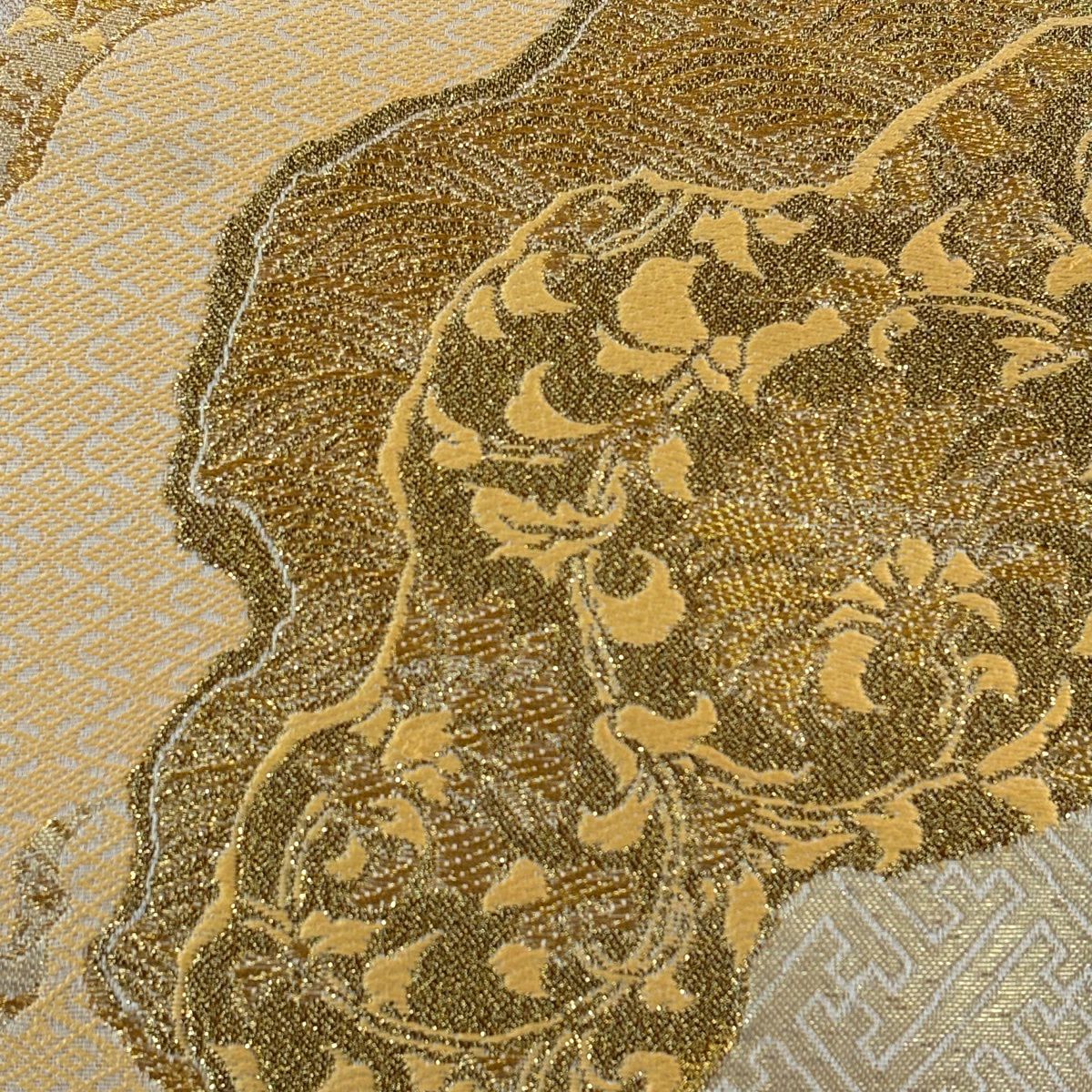 【美品】 袋帯 秀品 花 籠目 金糸 箔 金色 六通 正絹