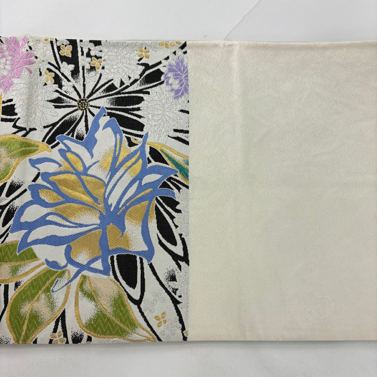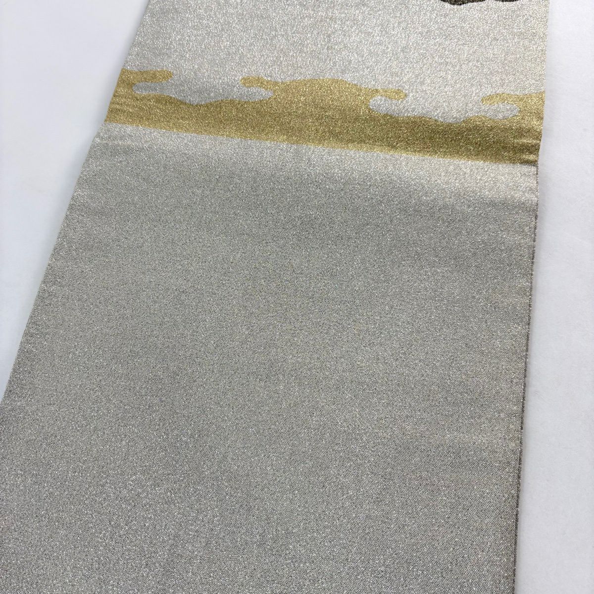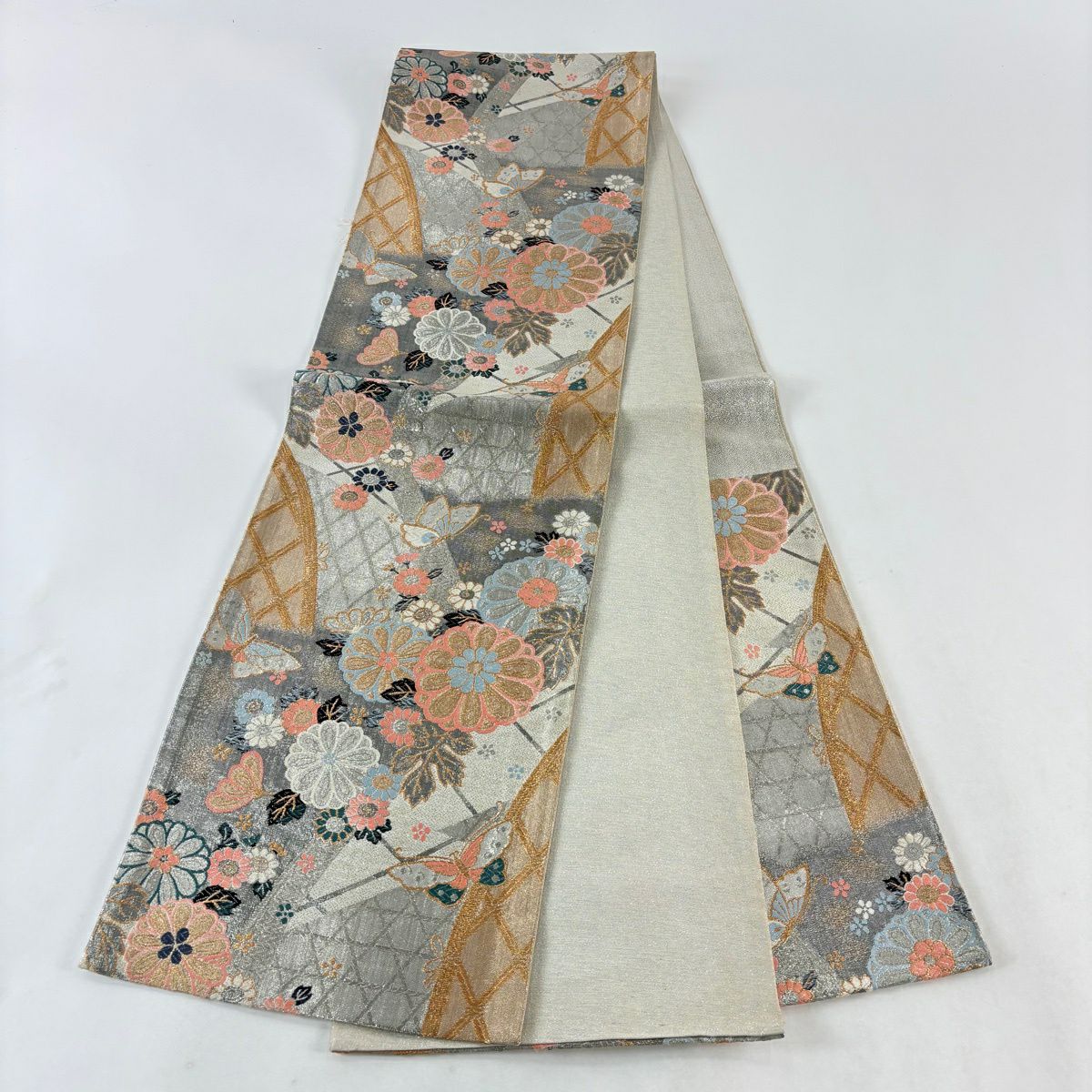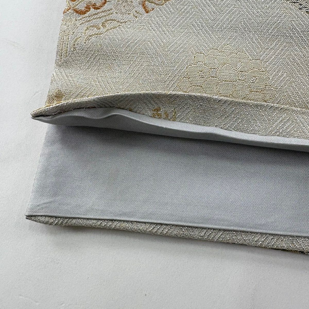 【美品】 袋帯 秀品 草花 金銀糸 箔 灰白 六通 正絹