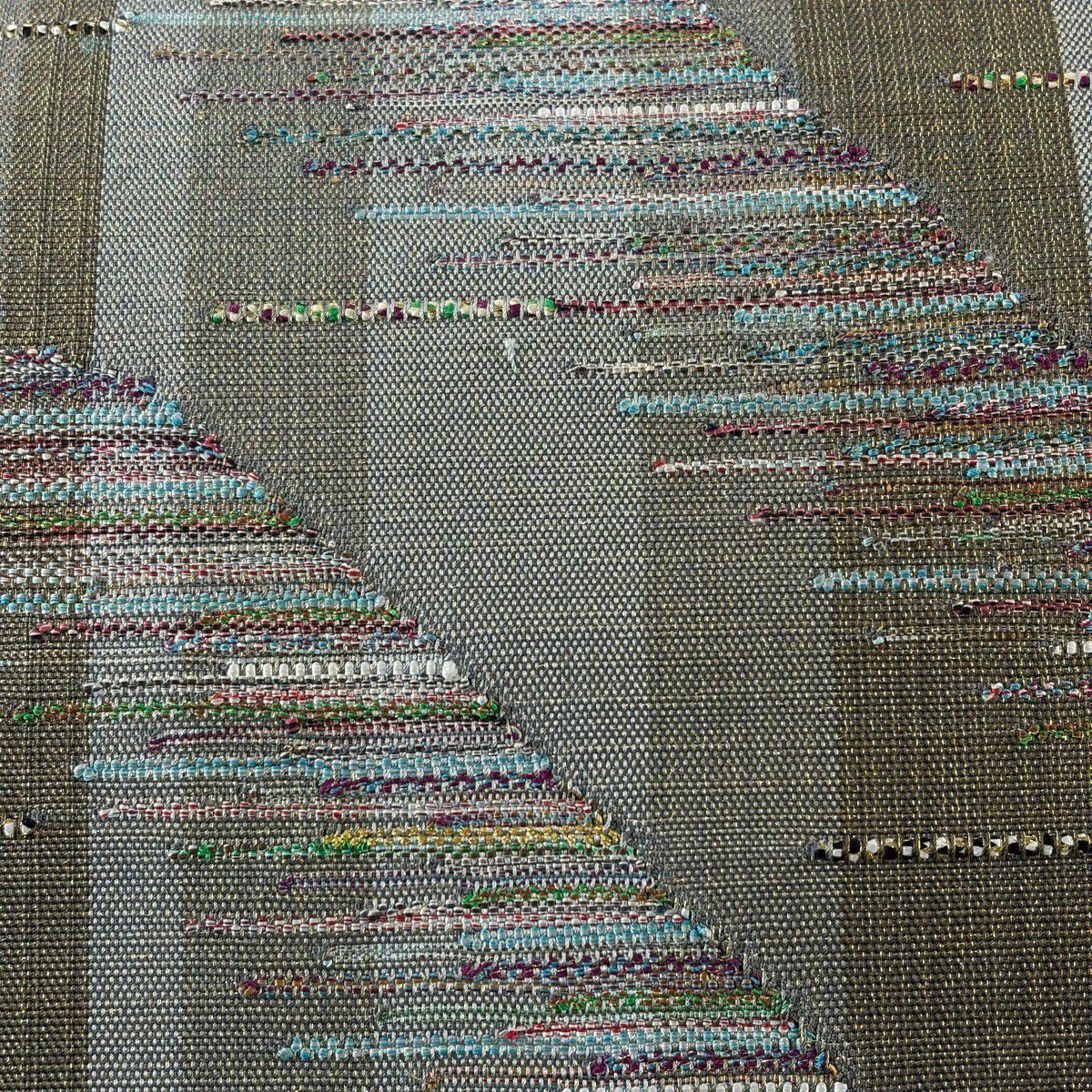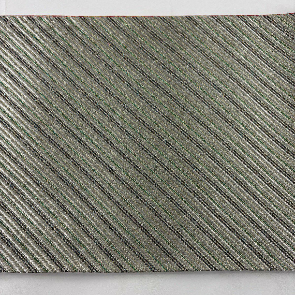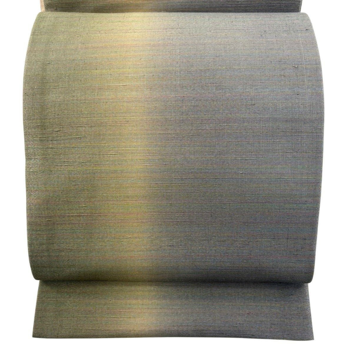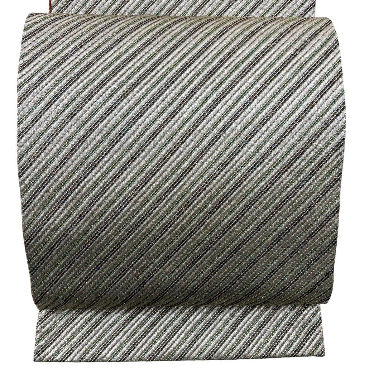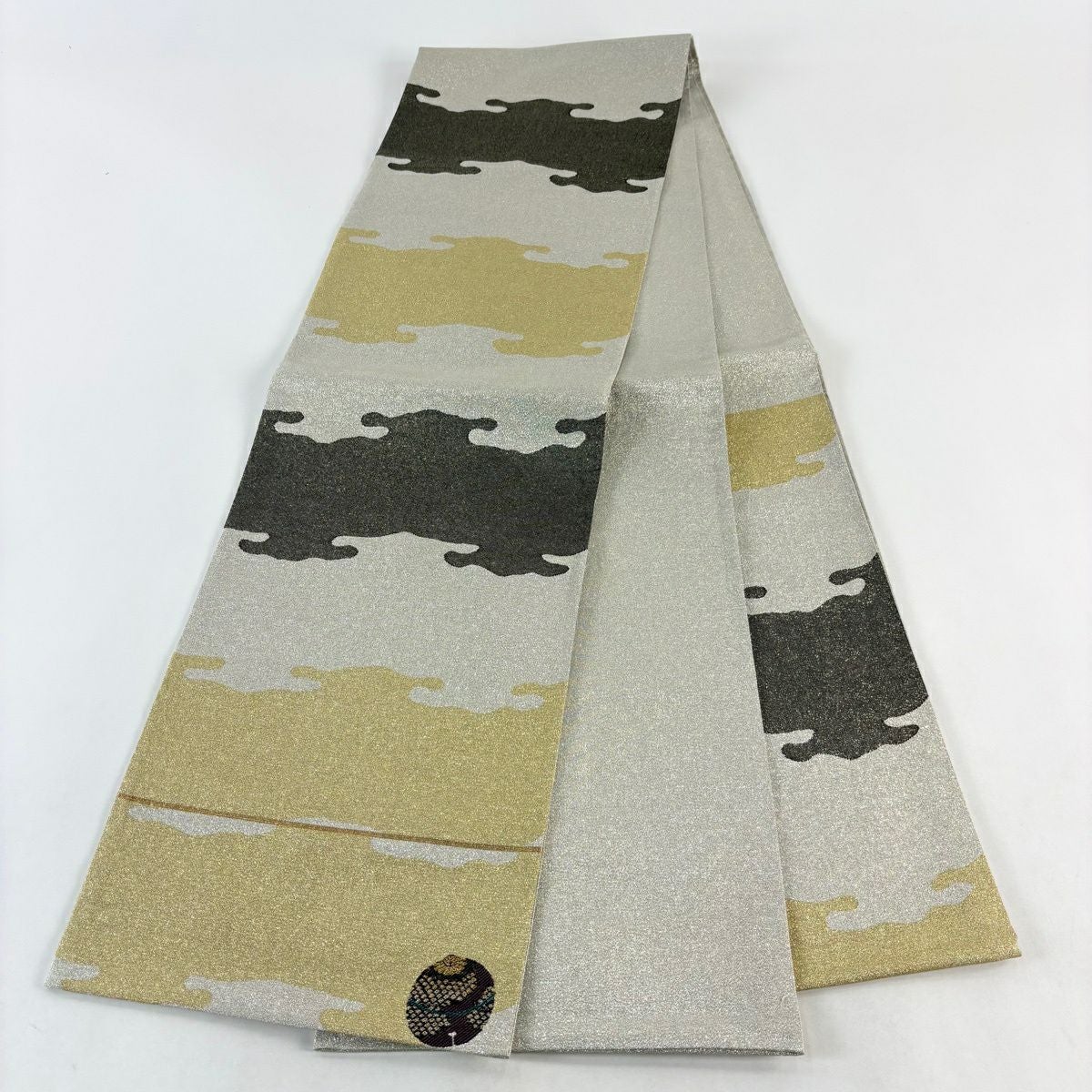 【美品】 袋帯 秀品 幾何学模様 銀糸 灰緑 全通 正絹