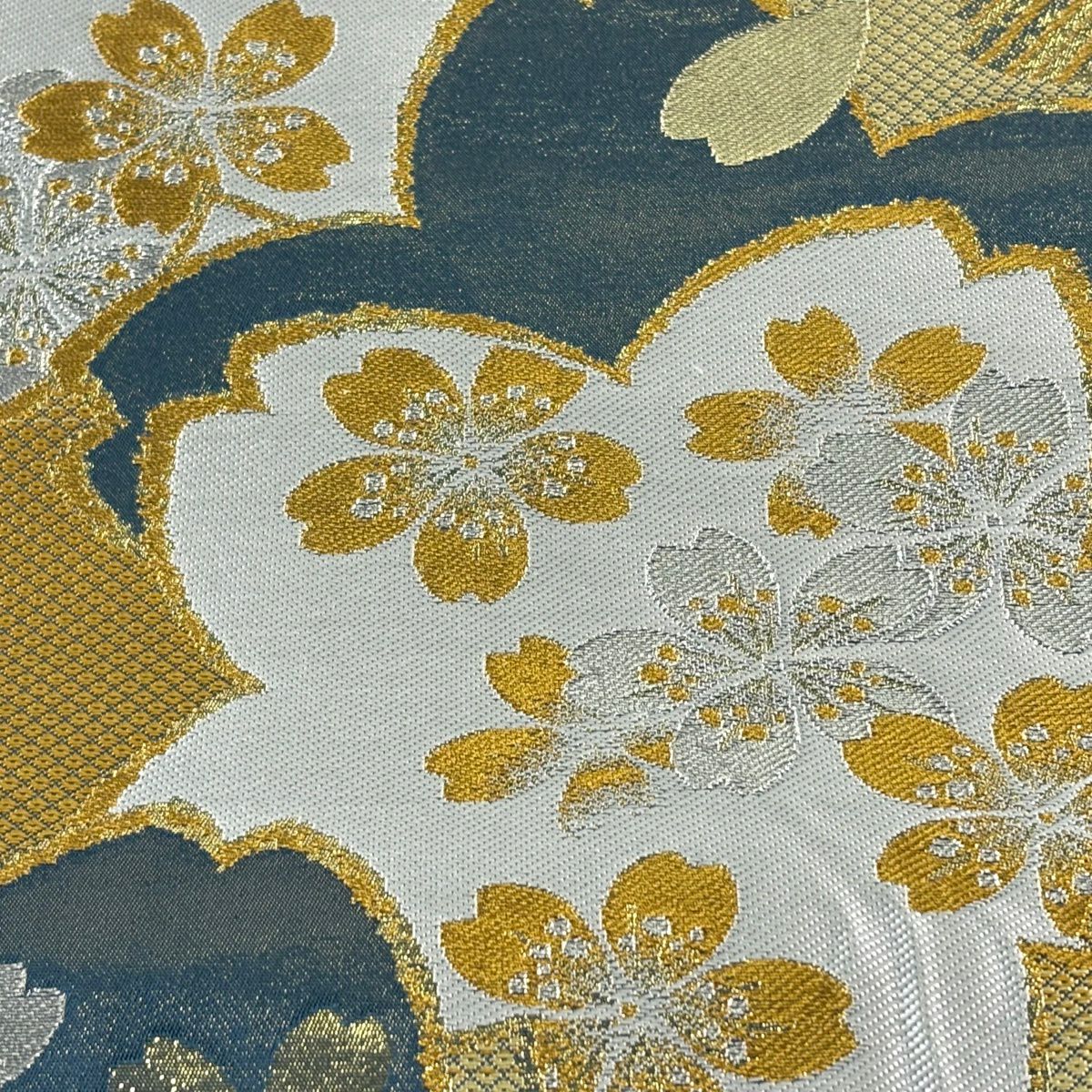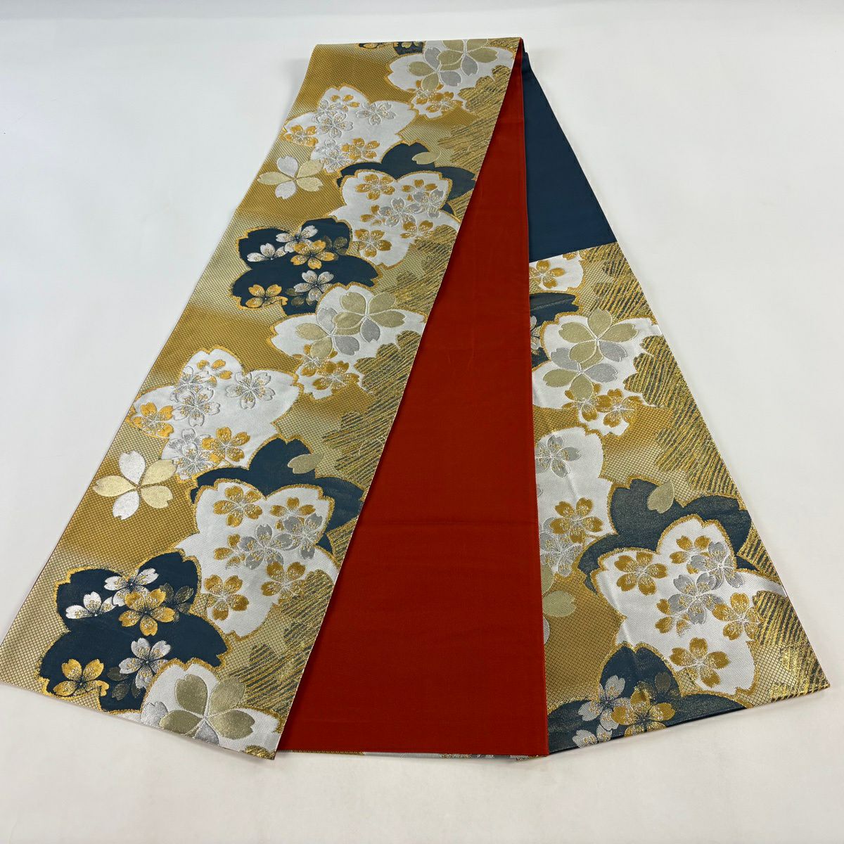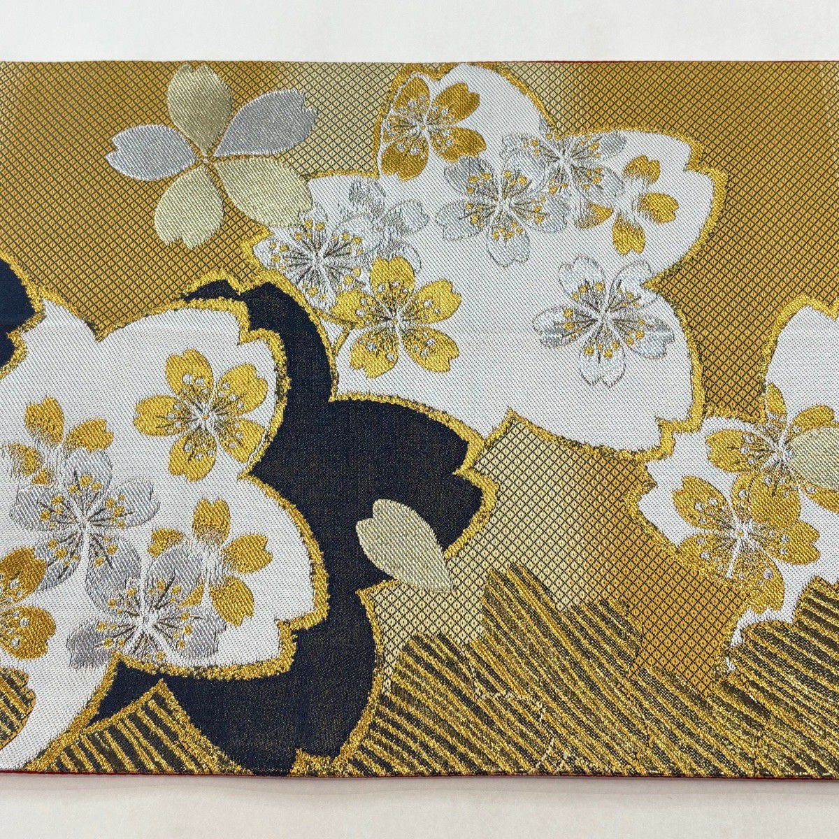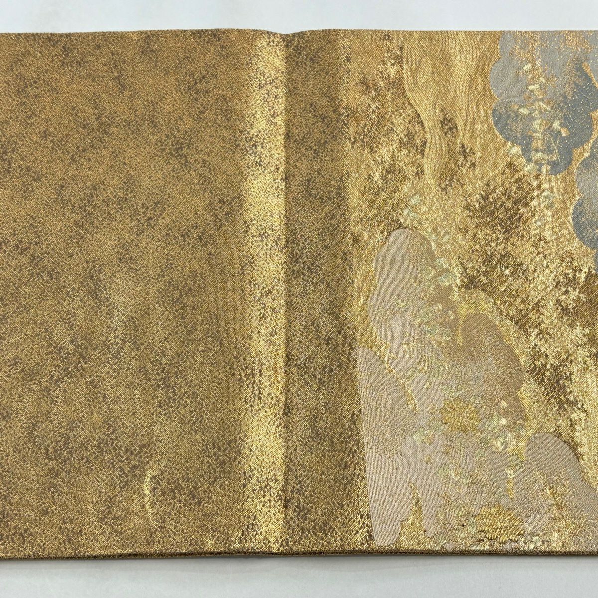 袋帯 秀品 花浪漫 桜 金銀糸 箔 薄黄土色 六通 正絹